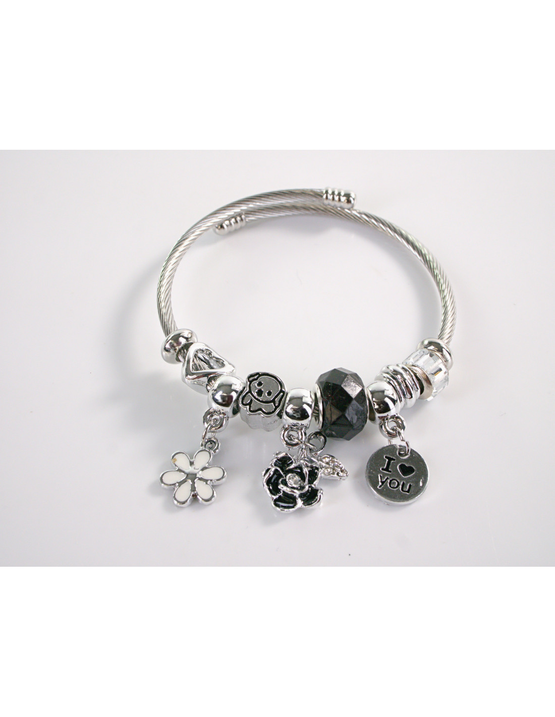 BRANSOLETKA CHARMS Z ZAWIESZKAMI SREBRNA KWIATKI BOHO LOLITA AKCESORIA