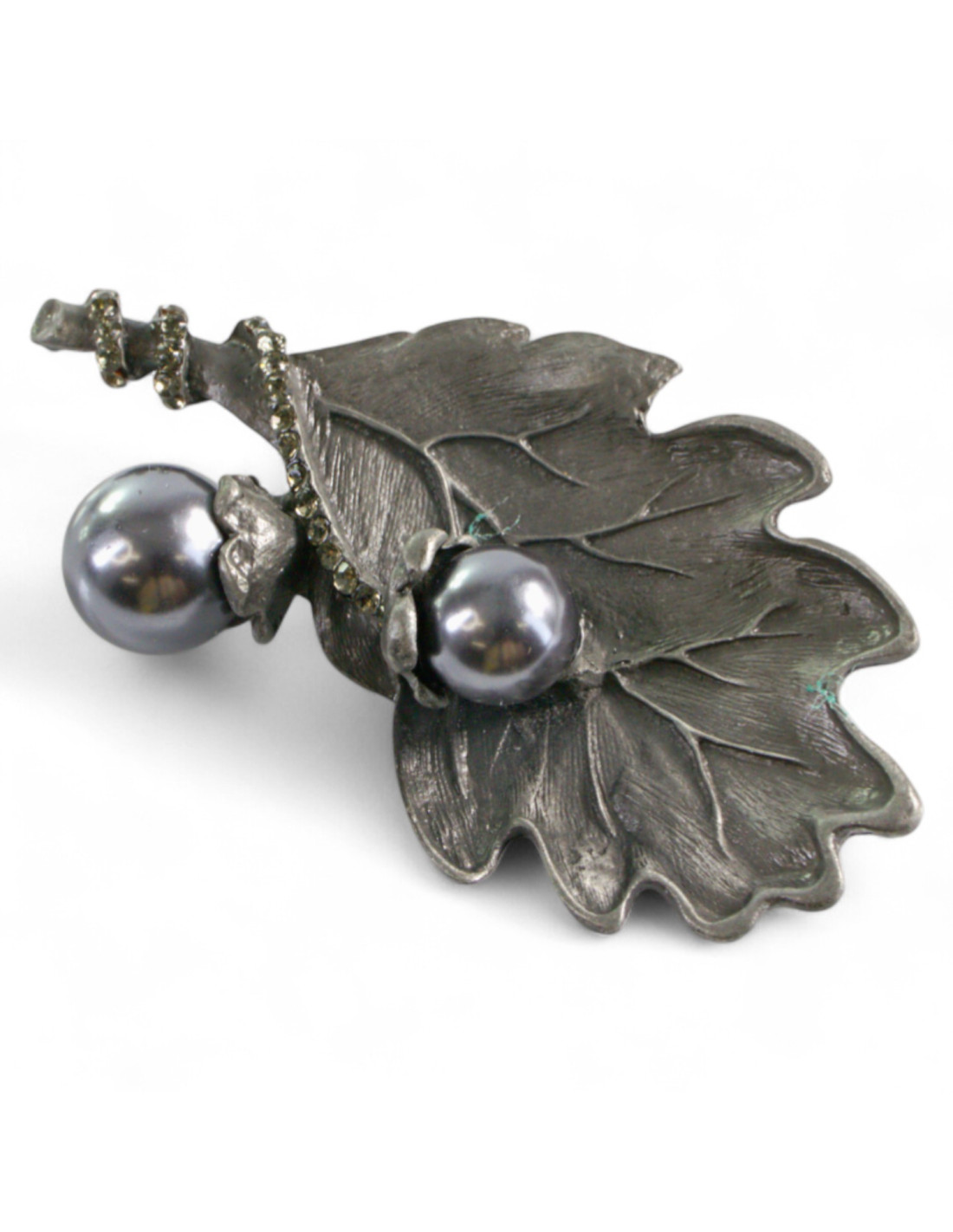BROSZKA BROSZA GRAFITOWY LIŚĆ DĘBU Z PERŁĄ LOLITA AKCESORIA