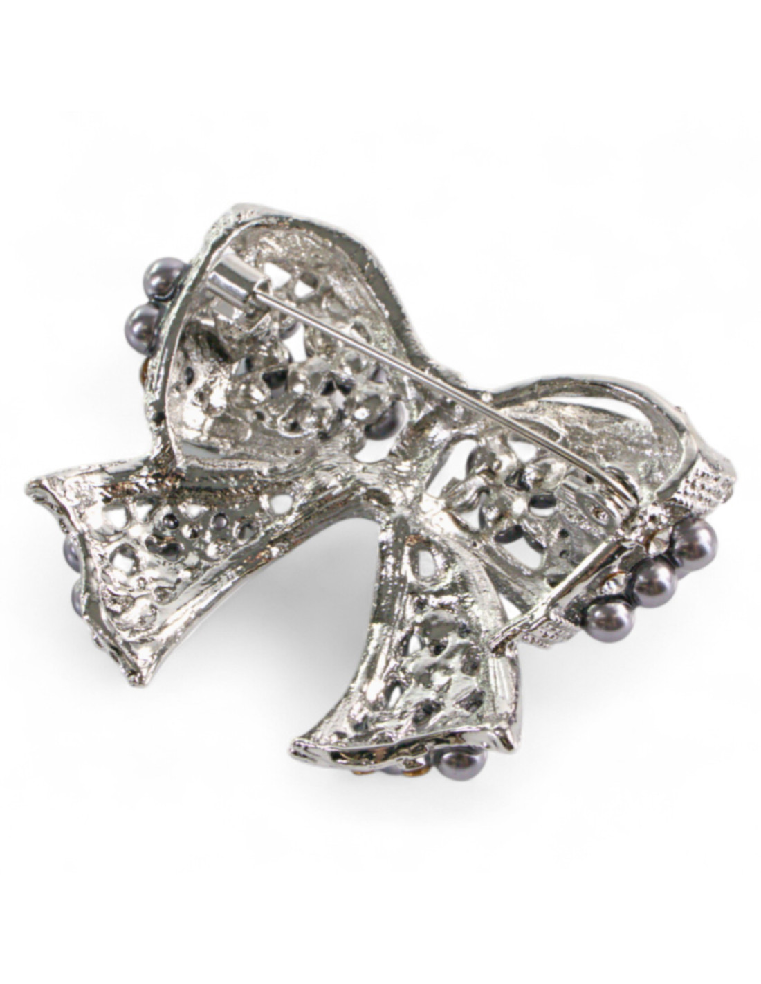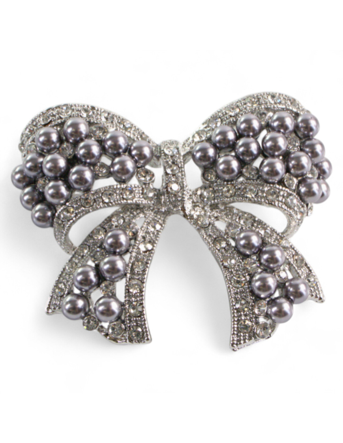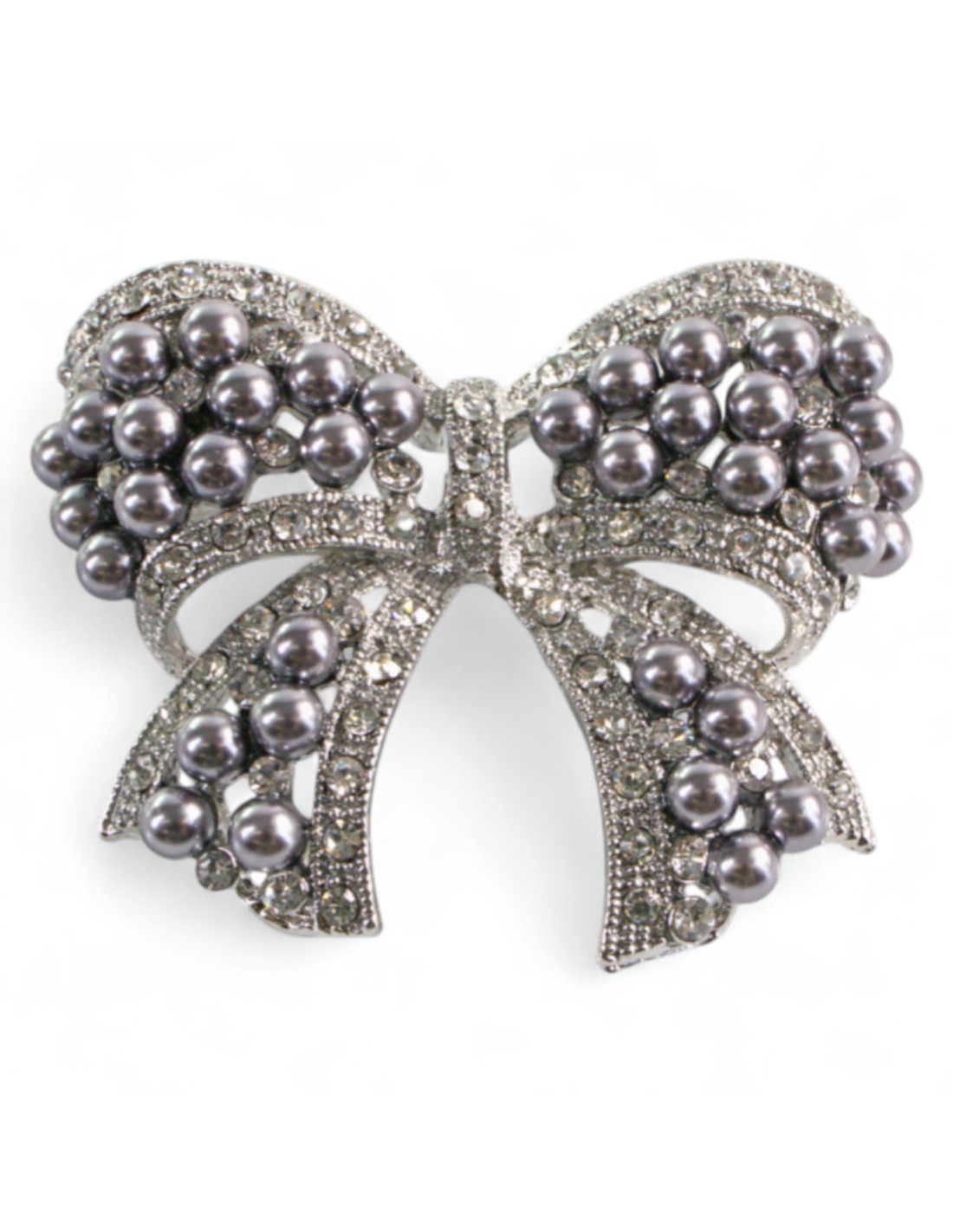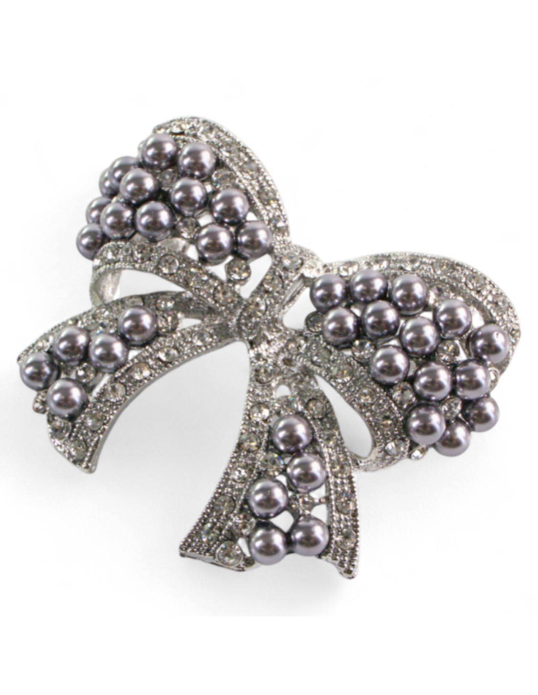 BROSZKA BROSZA KOKARDA Z PERŁAMI SZARE PEREŁKI LOLITA AKCESORIA
