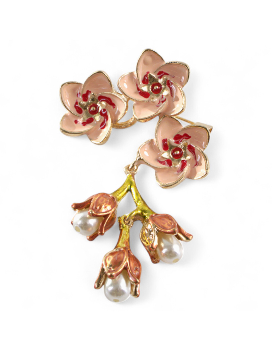 BROSZKA BROSZA EMALIOWANE KWIATY KWIATEK Z PERŁAMI LOLITA AKCESORIA