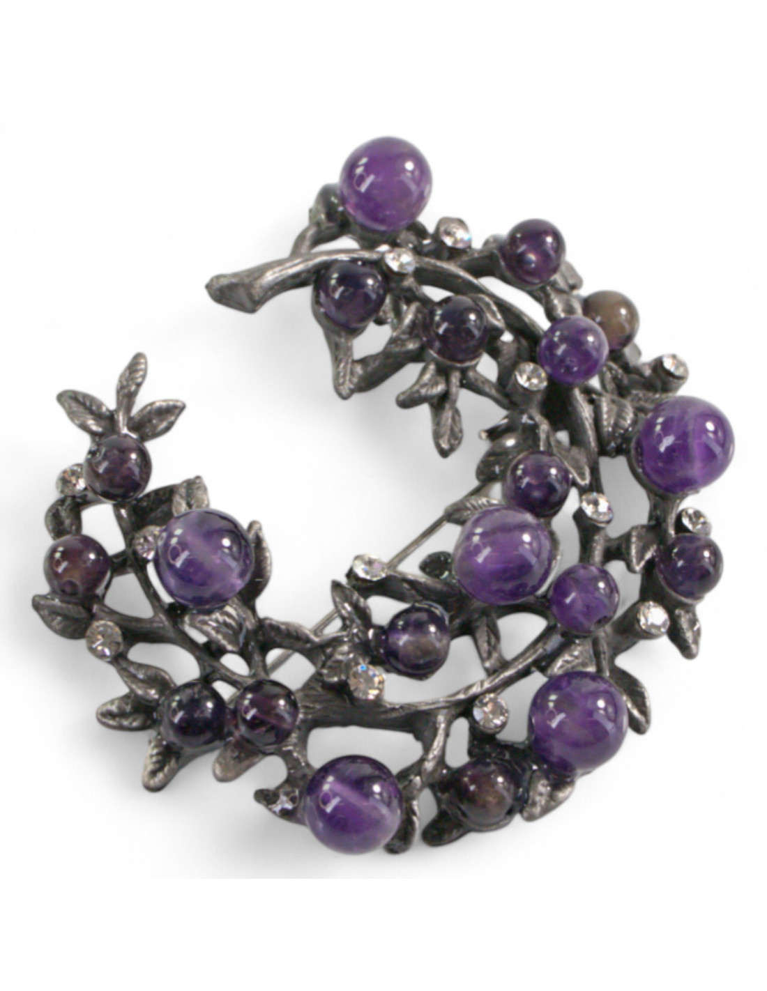 BROSZKA BROSZA GALERYJNA GAŁĄZKA Z FIOLETOWYMI KORALIKAMI LOLITA AKCESORIA