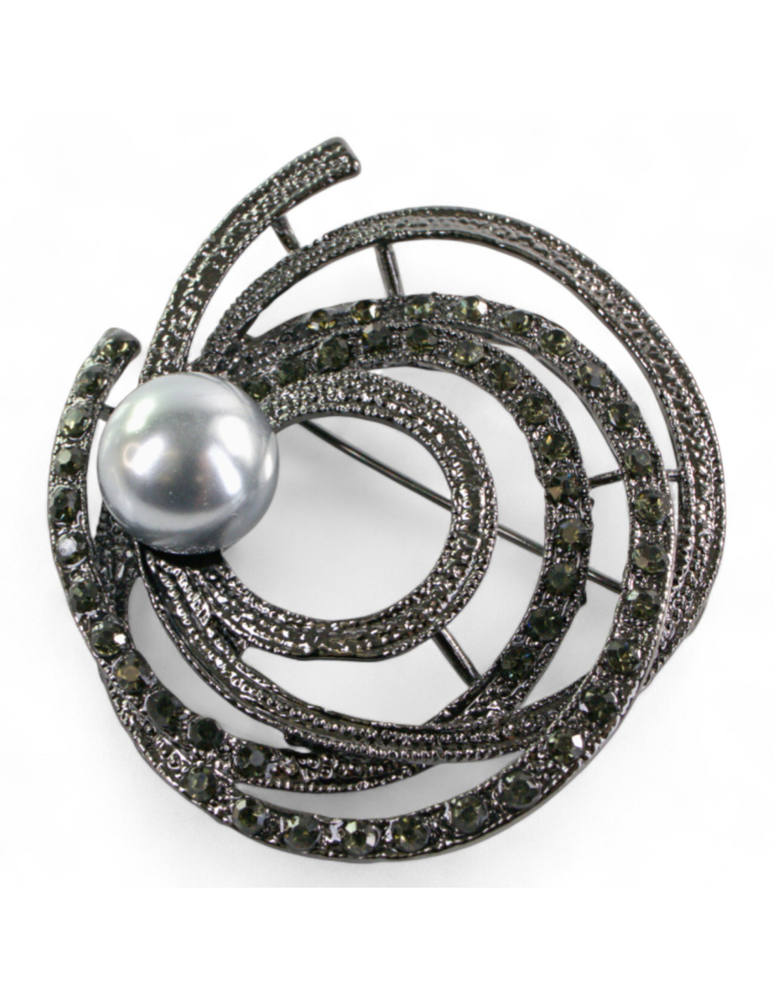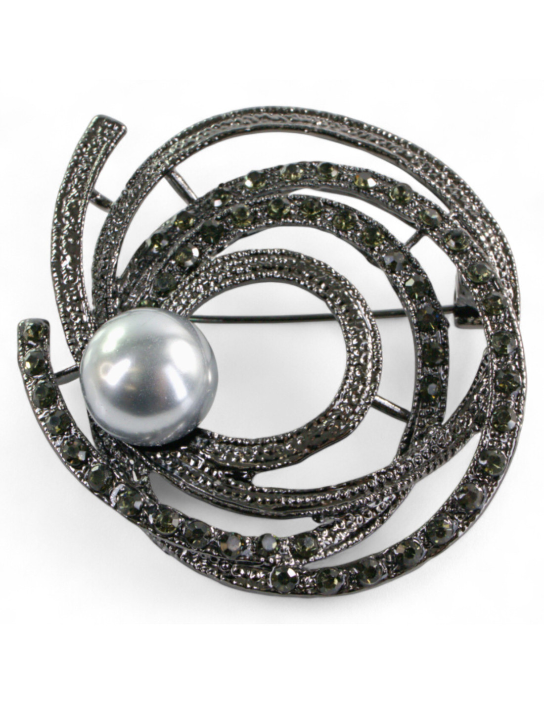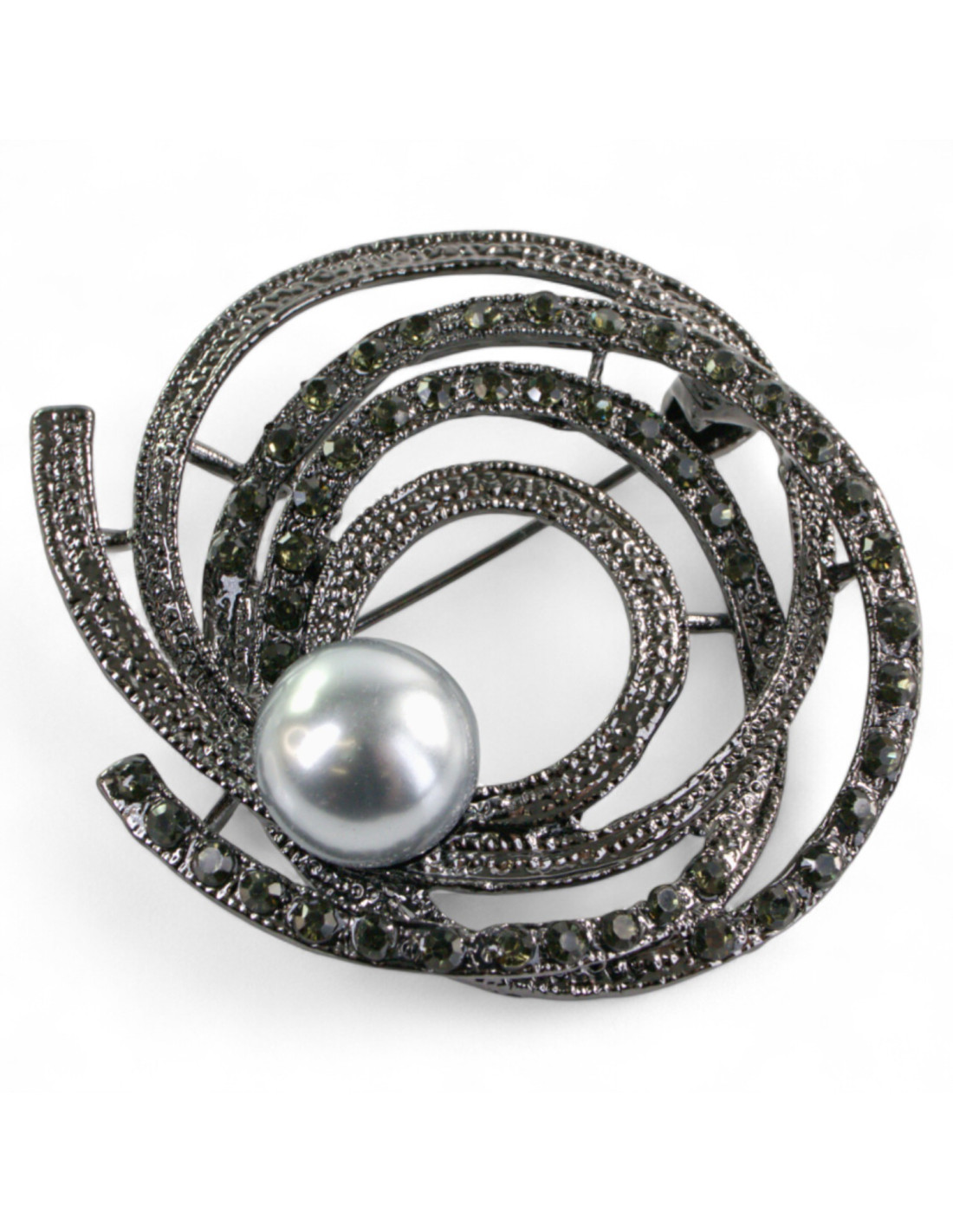 BROSZKA BROSZA SREBRONO -GRAFITOWY ZWIAJAS Z PERŁĄ LOLITA AKCESORIA