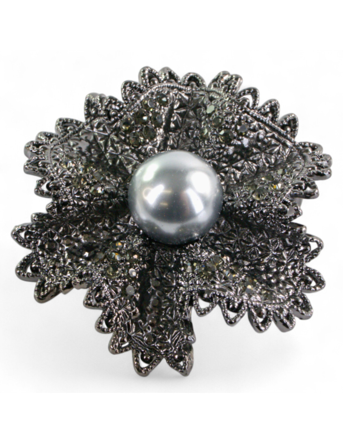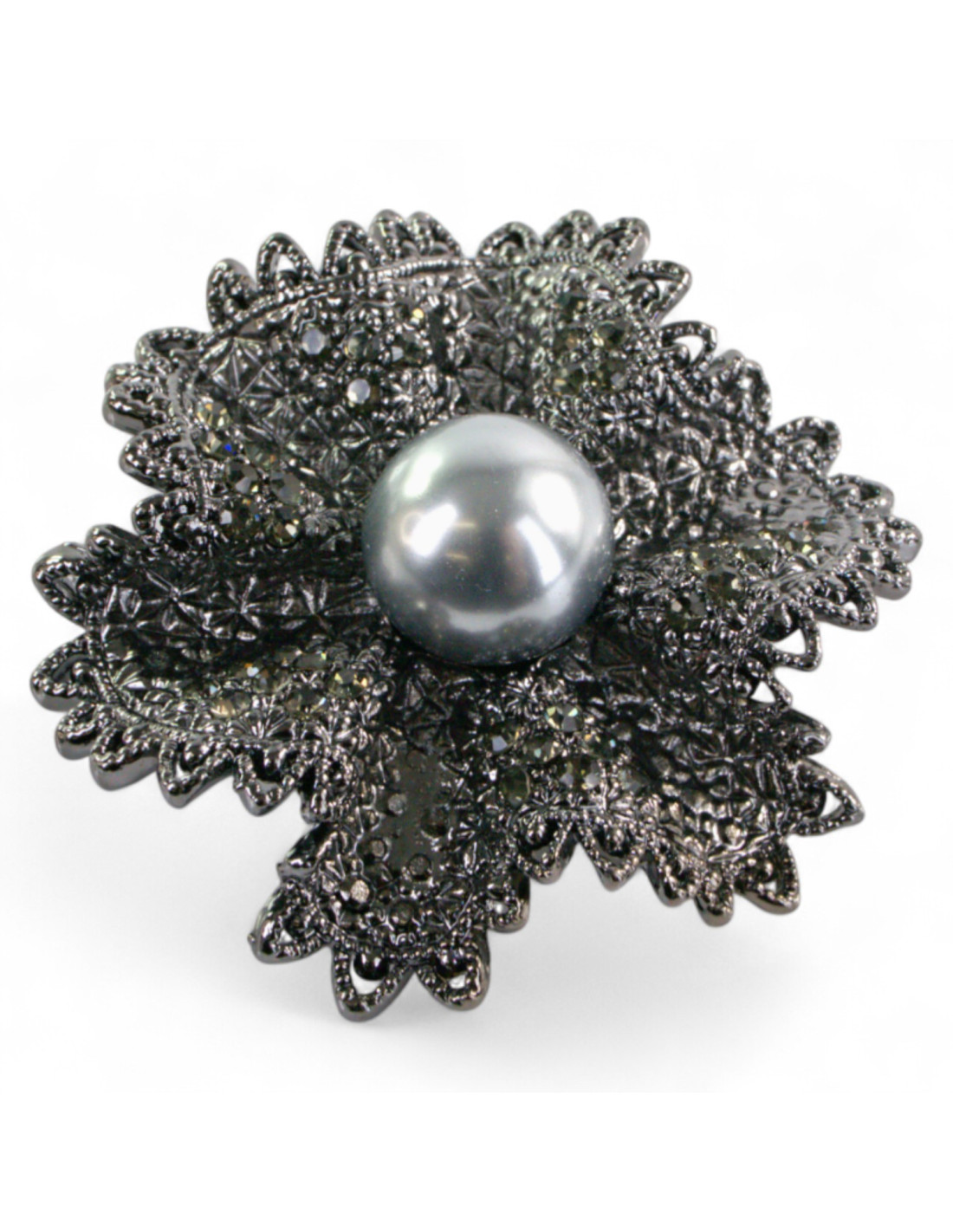 BROSZKA BROSZA GRAFITOWY WIKTORIAŃSKI KWIAT Z PERŁĄ LOLITA AKCESORIA