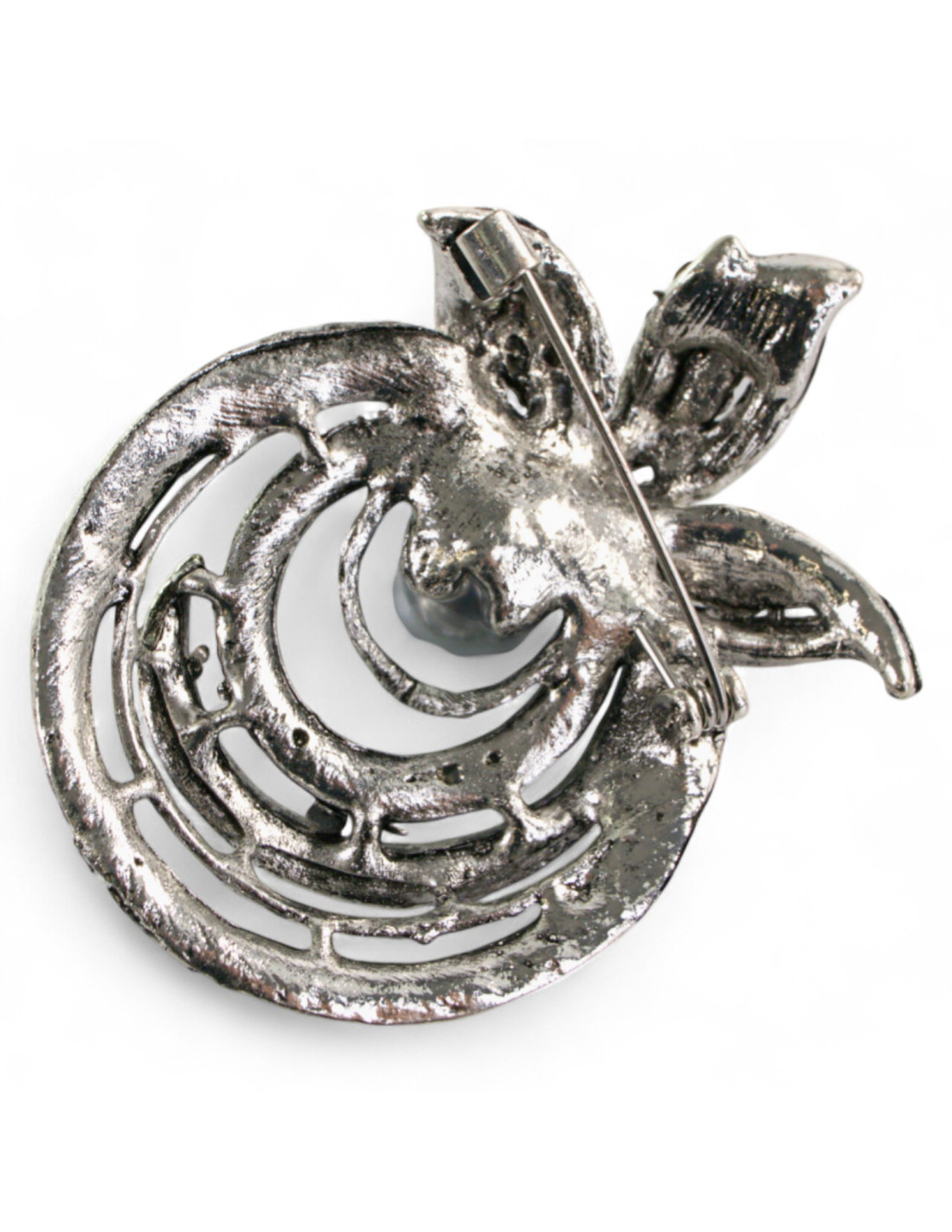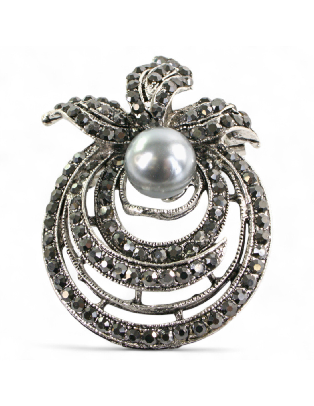 BROSZKA BROSZA SREBRONO -GRAFITOWY ZWIAJAS Z PERŁĄ LOLITA AKCESORIA