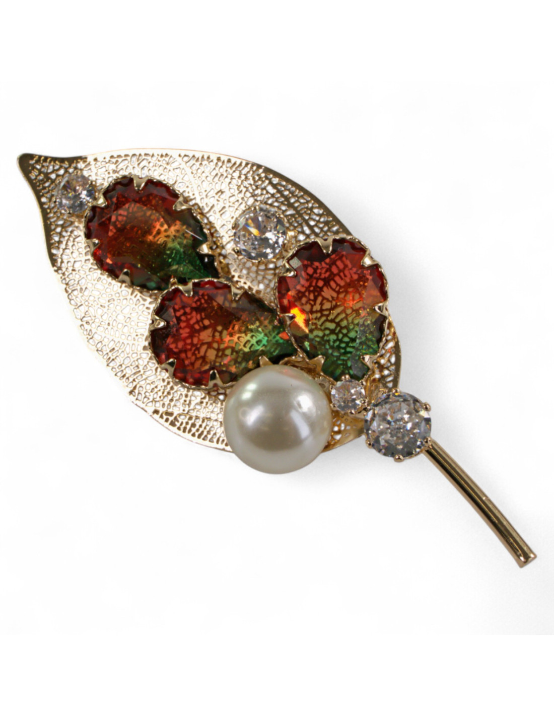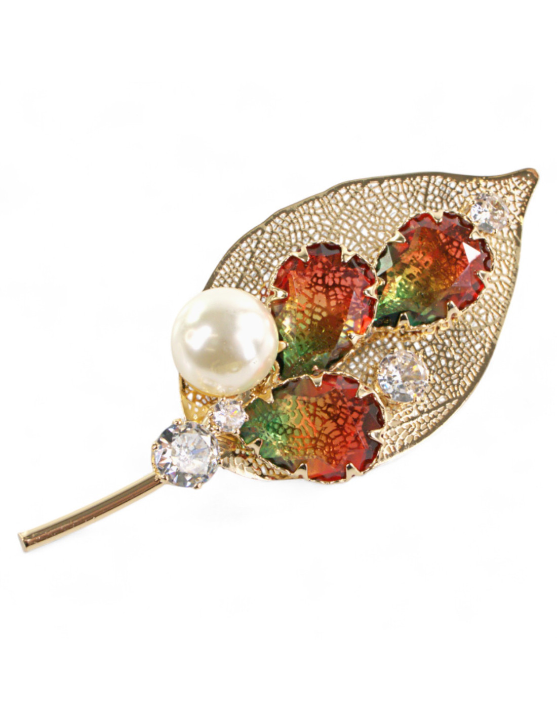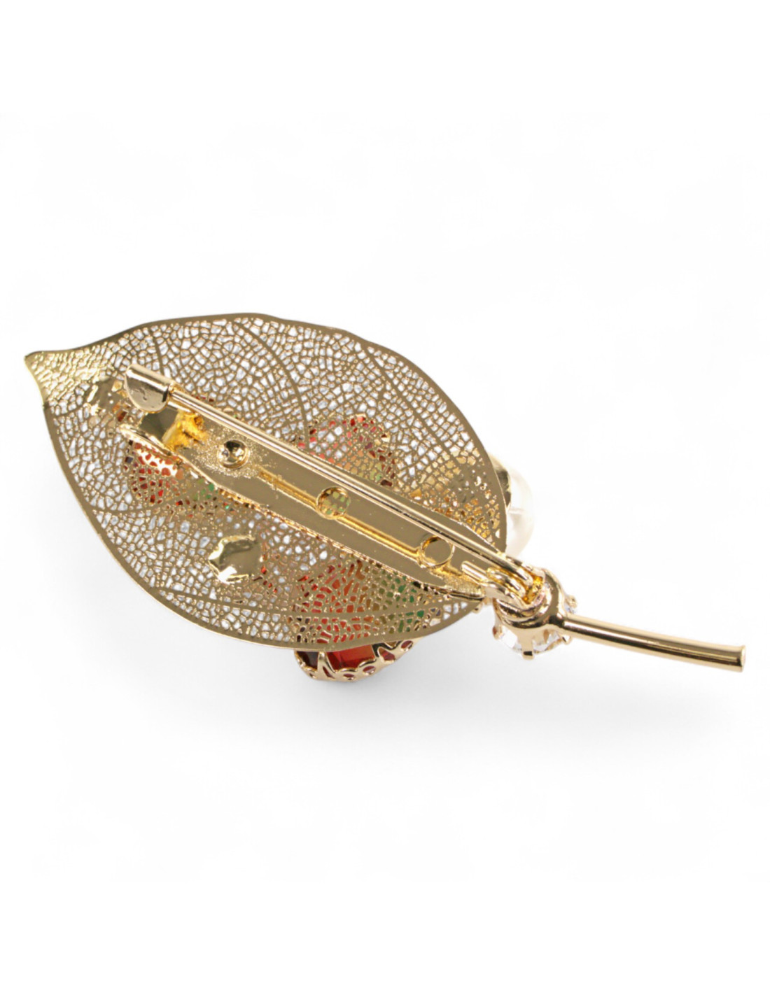 BROSZKA BROSZA ZŁOTY LIŚĆ Z KOLOROWYMI KAMIENIEM LOLITA AKCESORIA