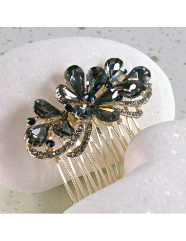 GRZEBIEŃ wsuwany do włosów wtykowy ozdobny diamenty Lolita Akcesoria GRAFIT