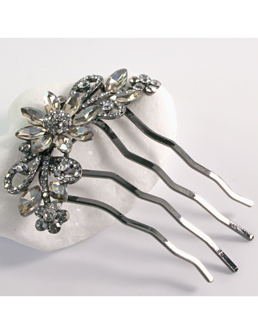 GRZEBIEŃ wsuwany do włosów wtykowy ozdobny KWIATY Lolita Akcesoria GRAFIT