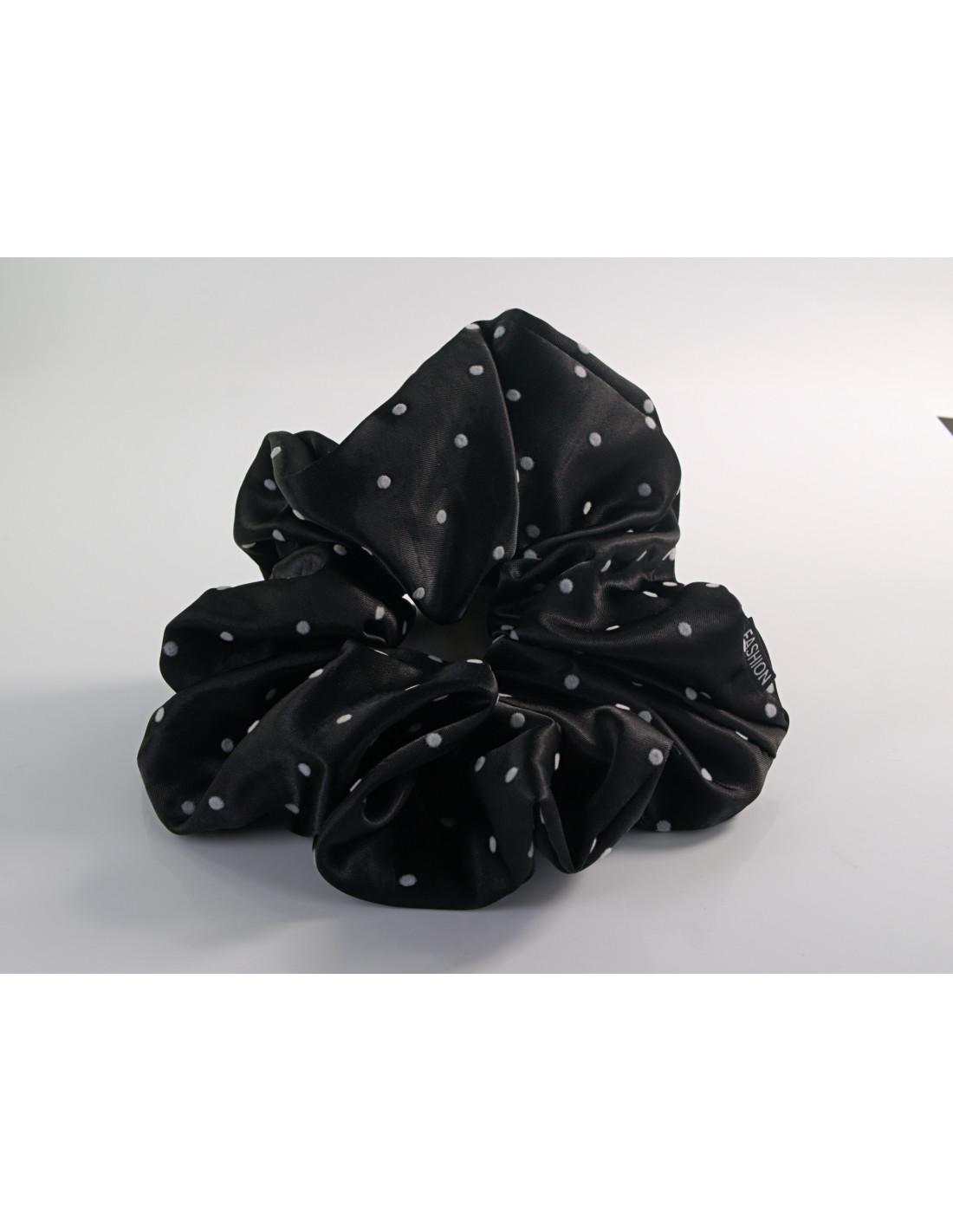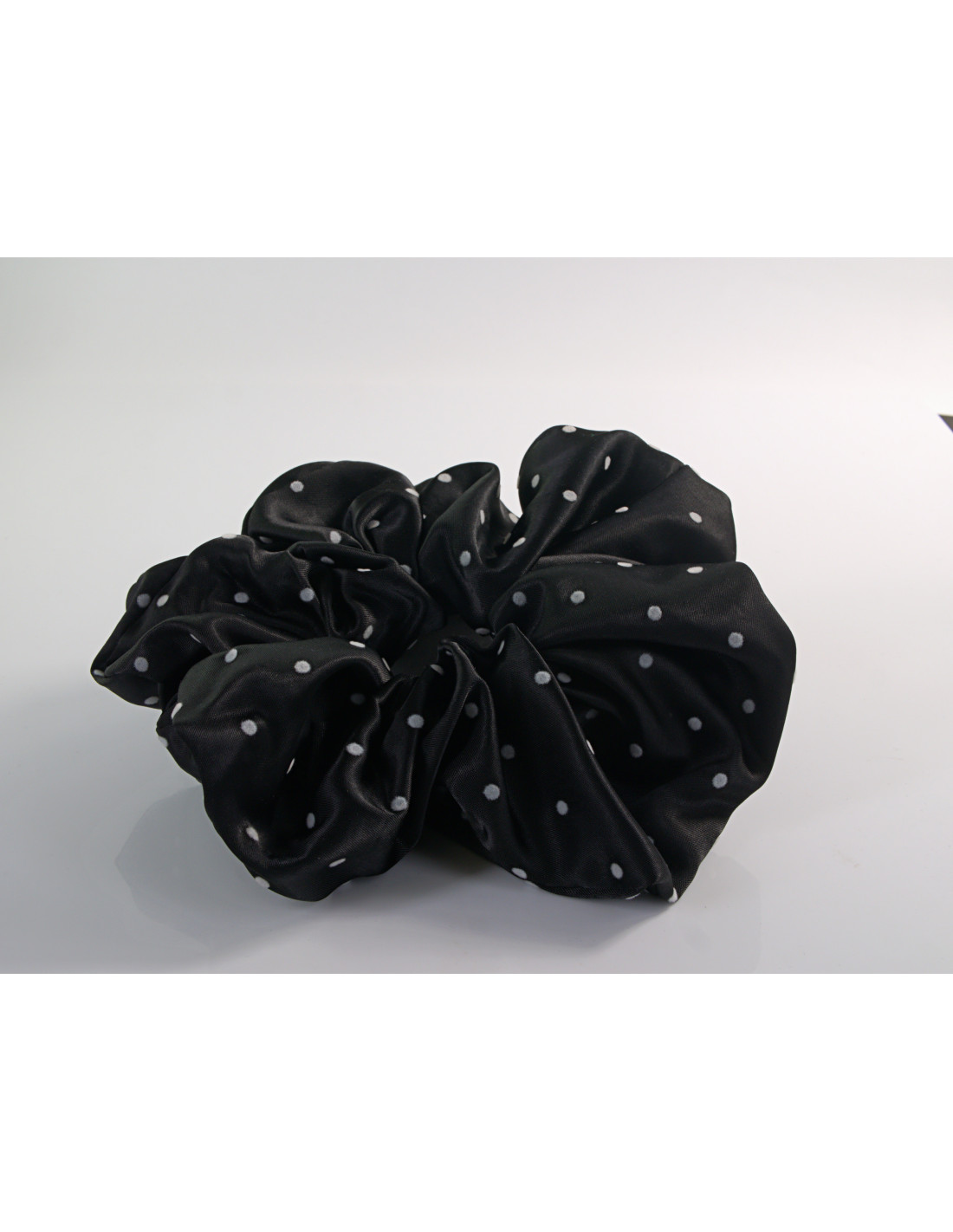 GUMKA DUŻA SCRUNCHIE SATYNOWA MEGA XXXL SATYNA ŚR.18 CM CZARNY KROPKI