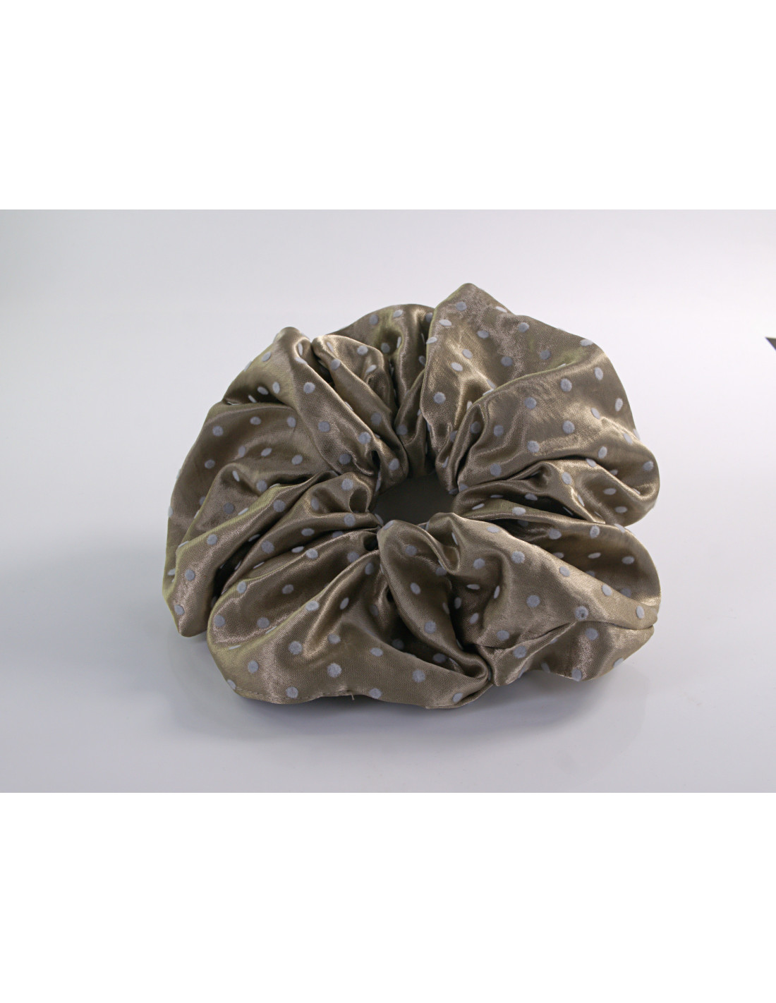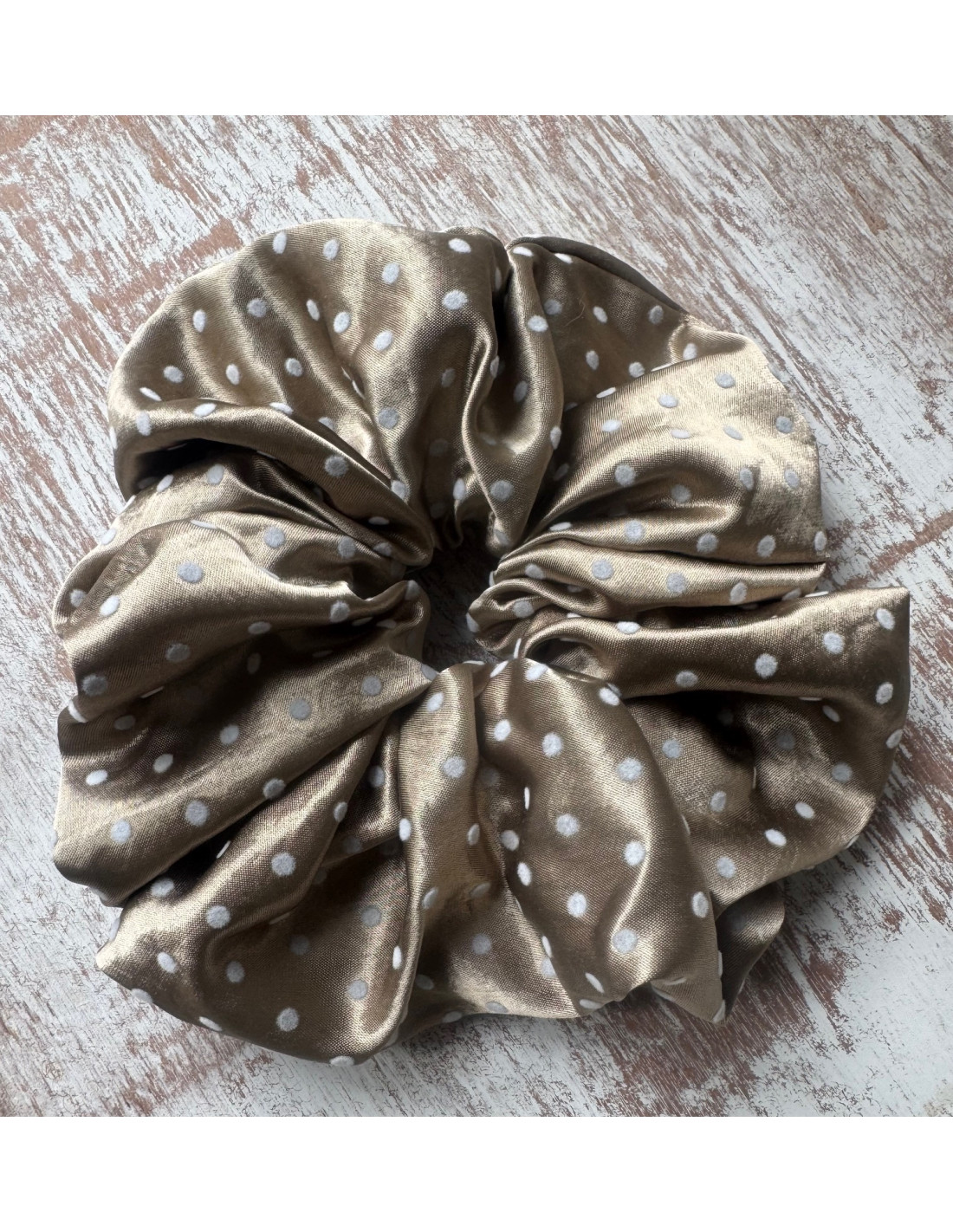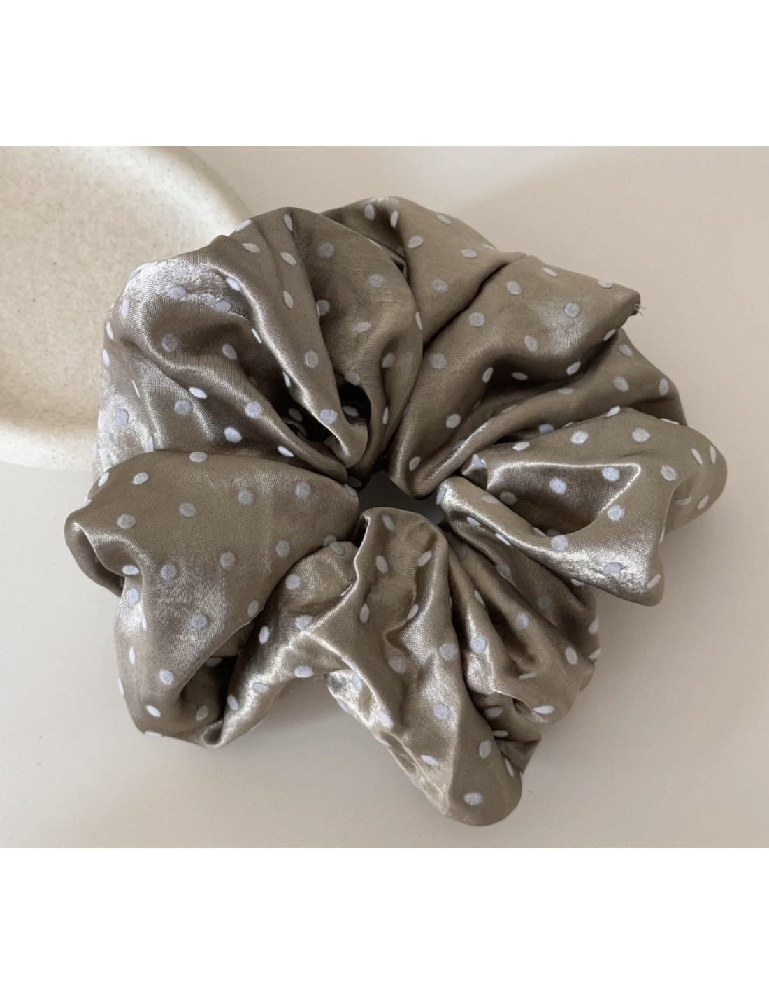 GUMKA DUŻA SCRUNCHIE SATYNOWA MEGA XXXL SATYNA ŚR.18 CM BRĄZOWY KROPKI