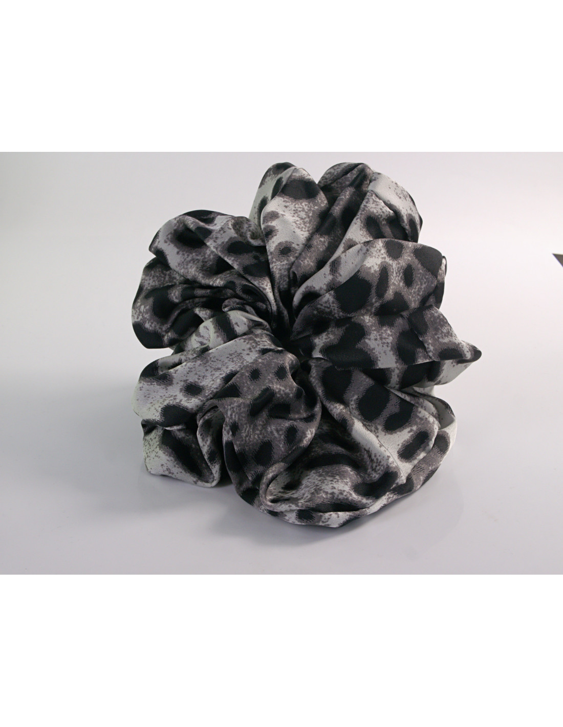 GUMKA DUŻA SCRUNCHIE W PANTERKĘ MEGA XXXL ŚR. 18 CM CZARNY W CĘTKI
