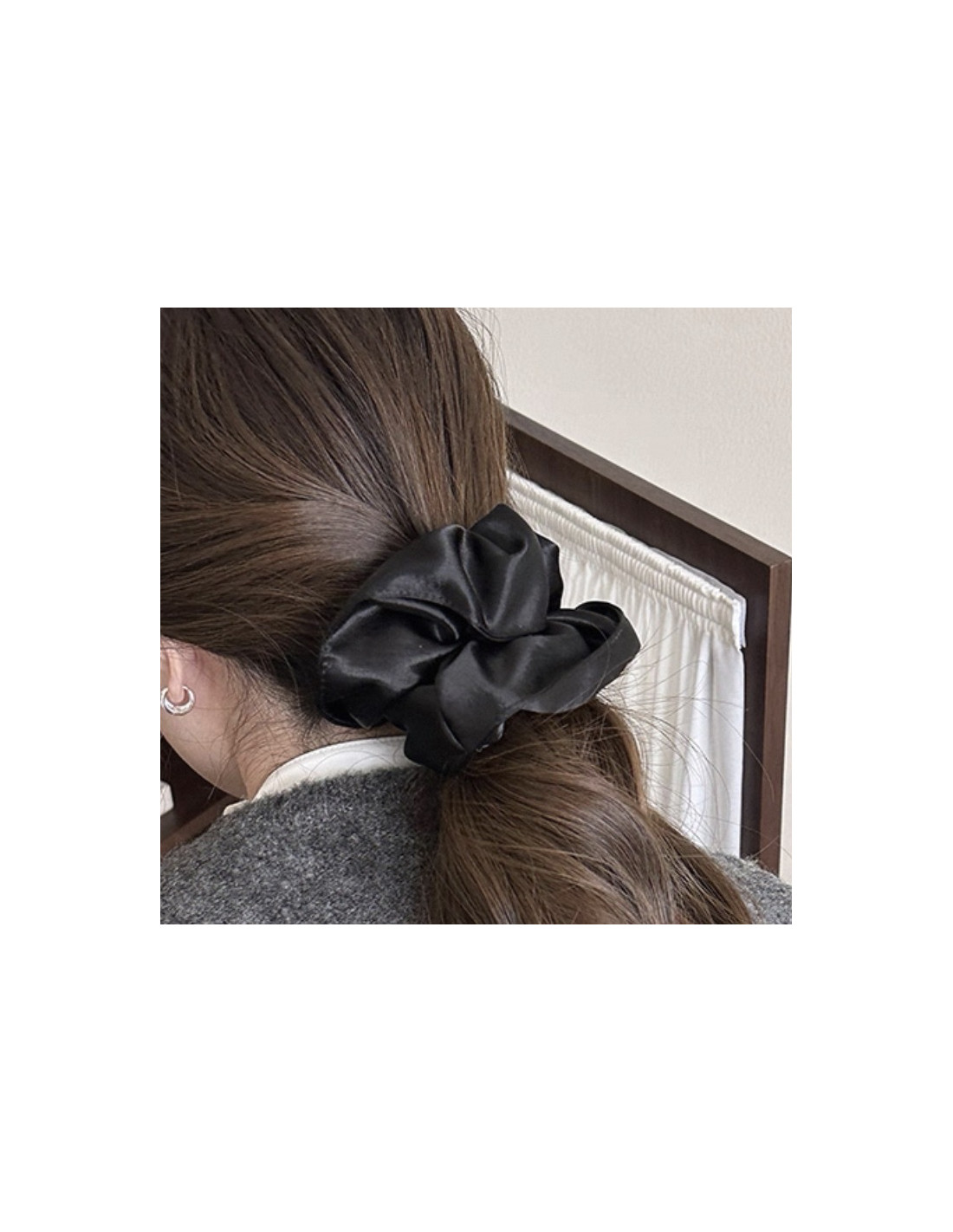GUMKA DUŻA SCRUNCHIE XL SATYNA ŚR. 14 CM CZARNY