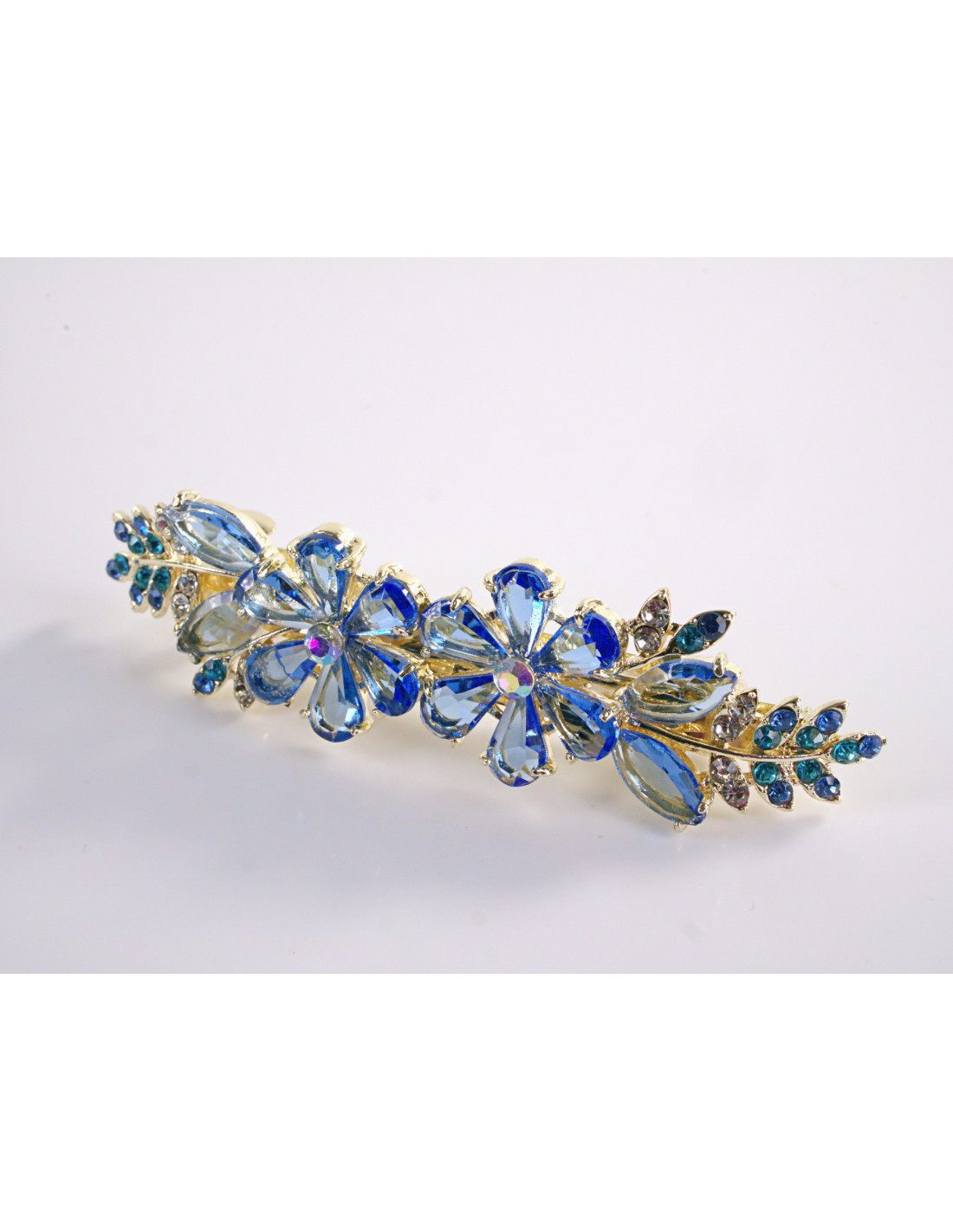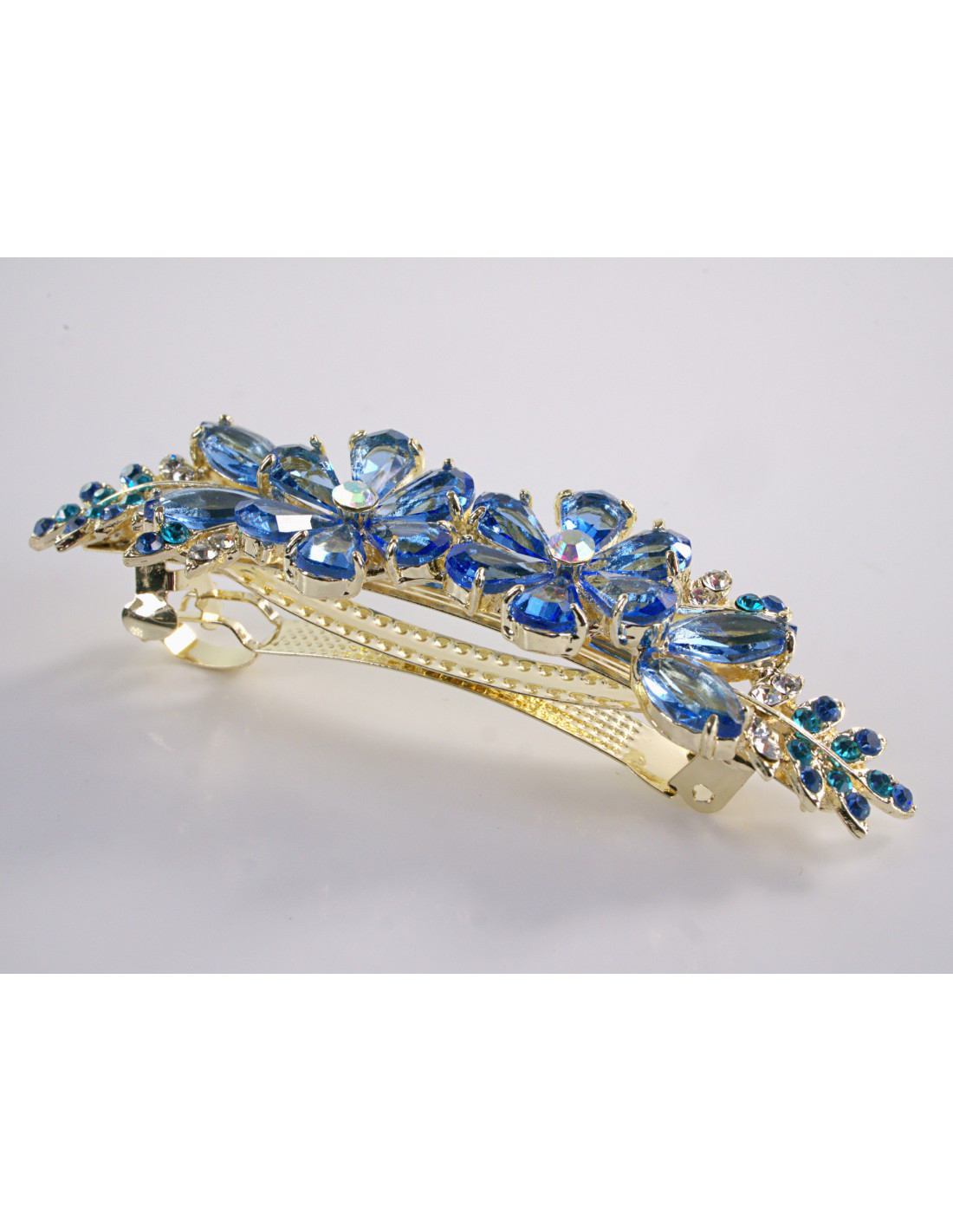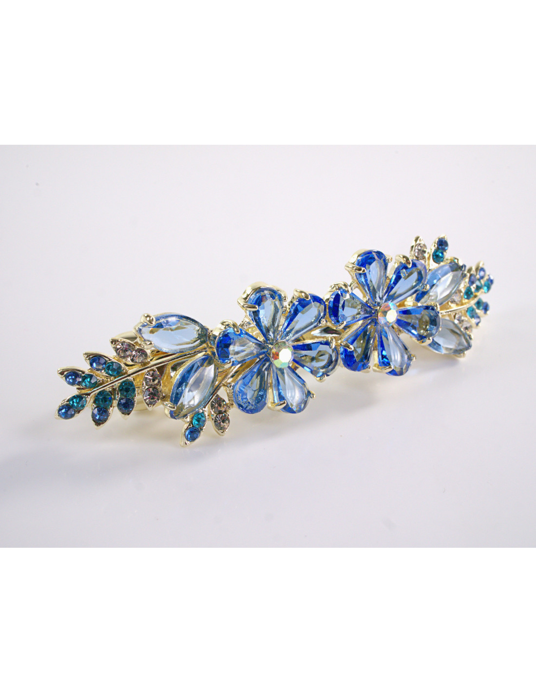 KLAMRA FRANCUSKA DO WŁOSÓW KWIATY Z KAMIENIAMI LOLITA AKCESORIA NIEBIESKI
