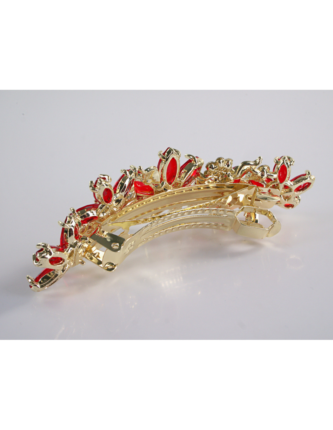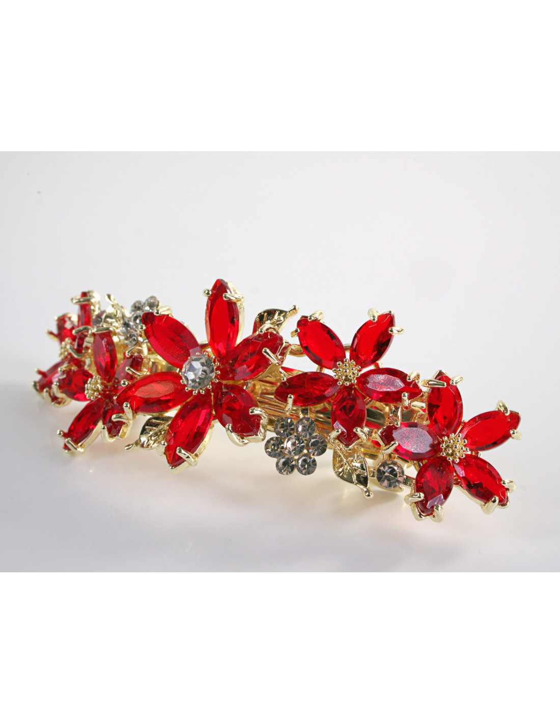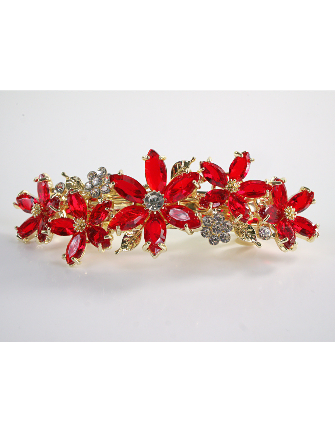 KLAMRA FRANCUSKA DO WŁOSÓW KWIATY Z KAMIENIAMI LOLITA AKCESORIA CZERWONY