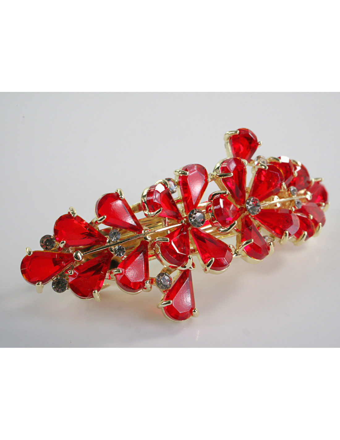 KLAMRA FRANCUSKA DO WŁOSÓW KWIATY Z KAMIENIAMI LOLITA AKCESORIA CZERWONY