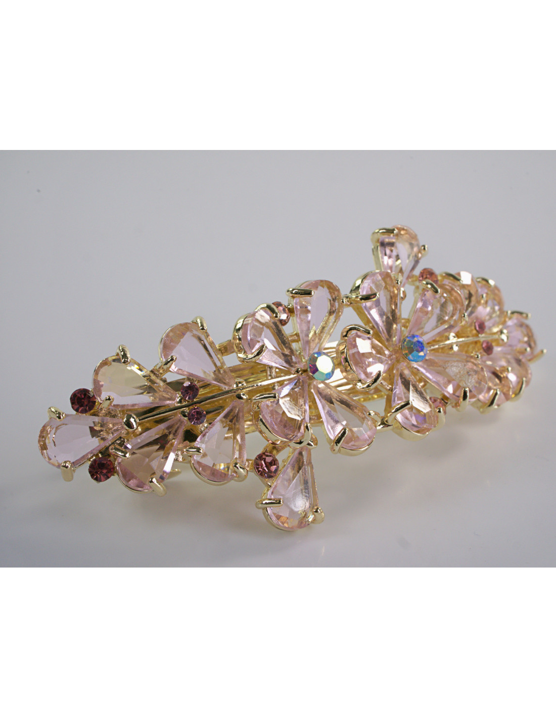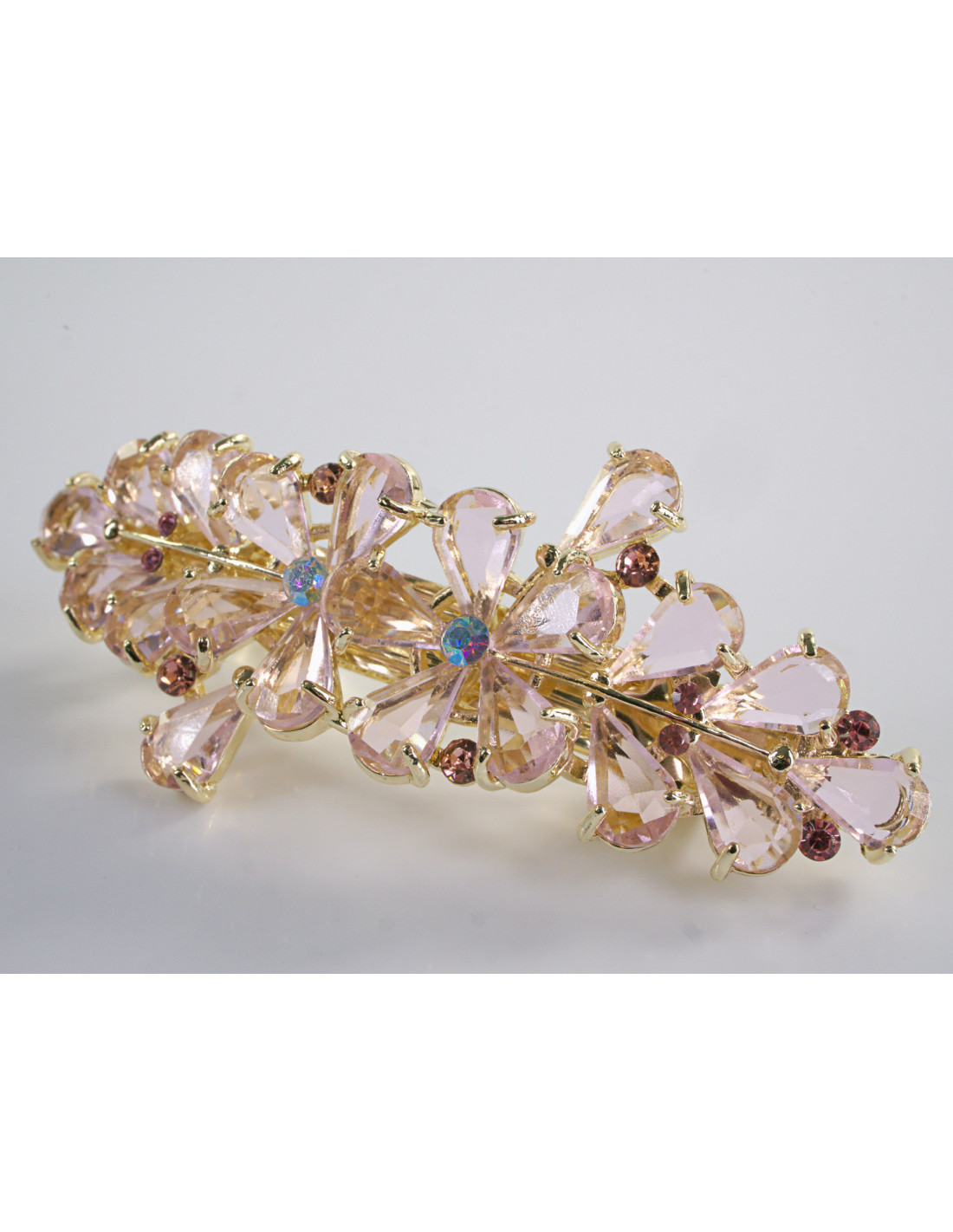 KLAMRA FRANCUSKA DO WŁOSÓW KWIATY Z KAMIENIAMI LOLITA AKCESORIA RÓŻOWY