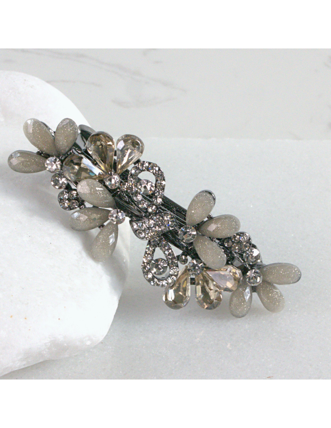 Klamra francuska kwiatki kryształki z kokarda Lolita akcesoria