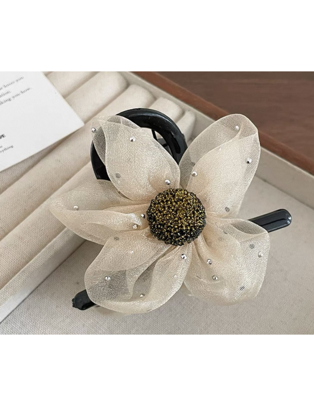 Klamra Wieczorowa Połyskujący ECRU Kwiatek Lolita Akcesoria