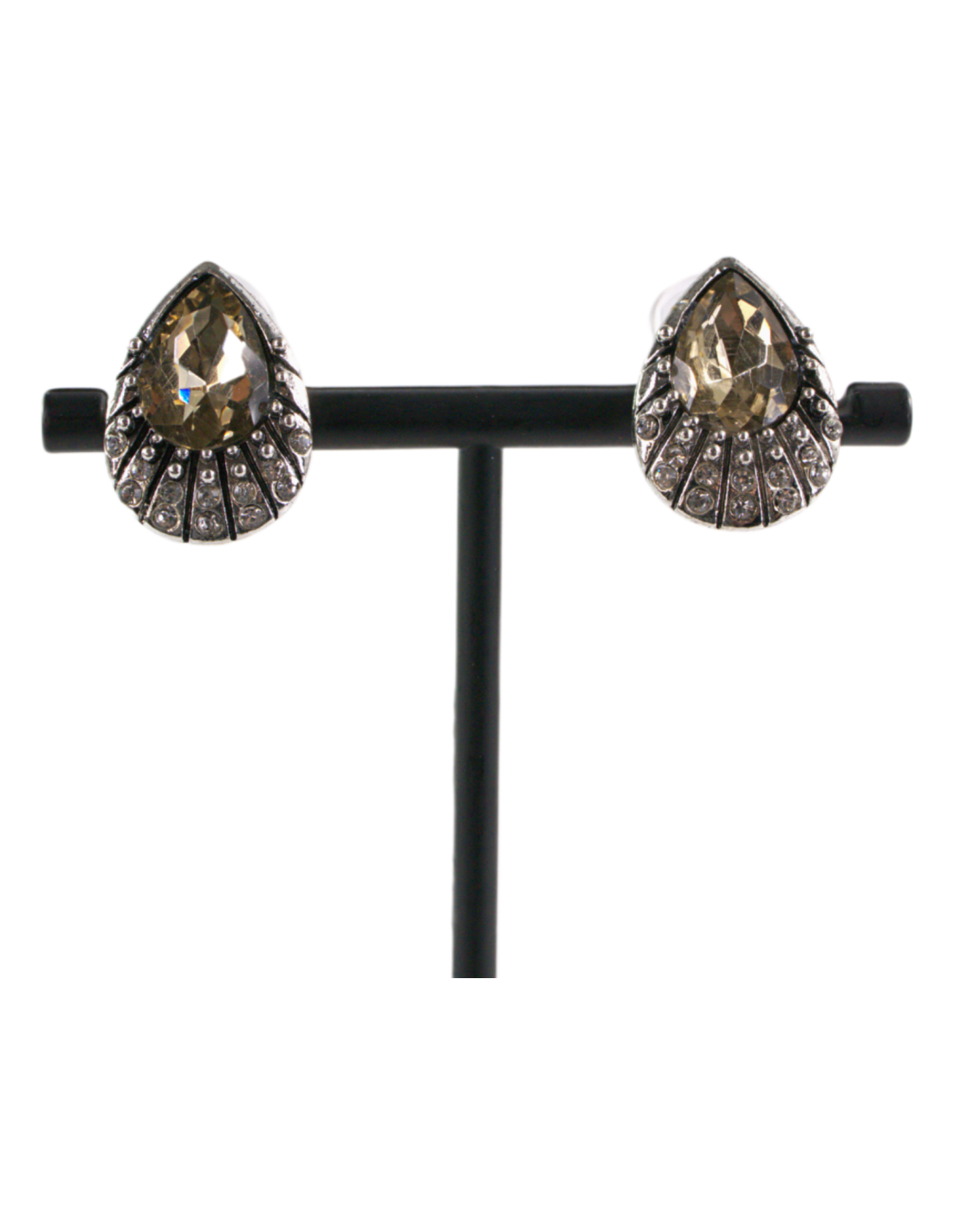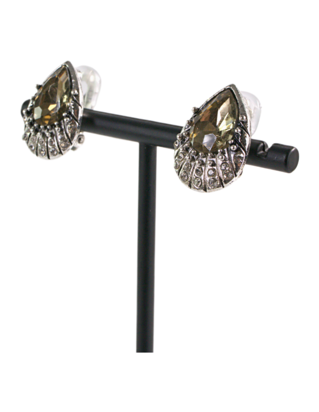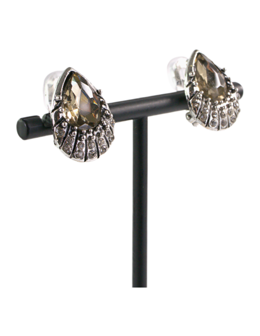 Klipsy do Uszu Srebrne łezki z BEŻOWYM kamieniem Lolita Akcesoria
