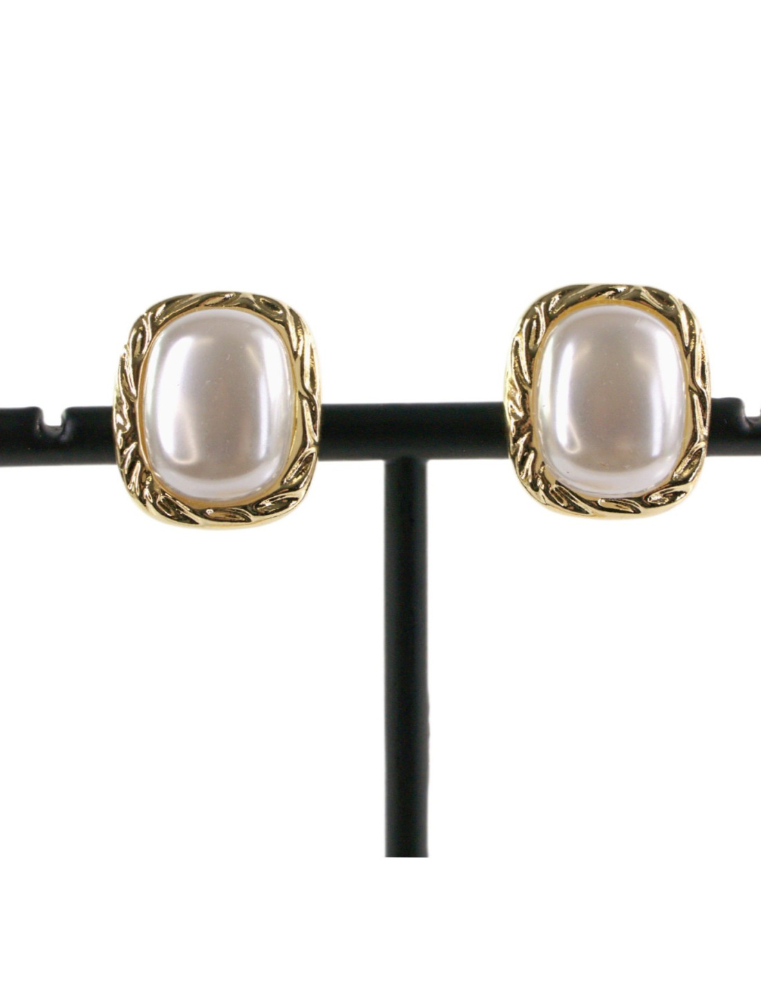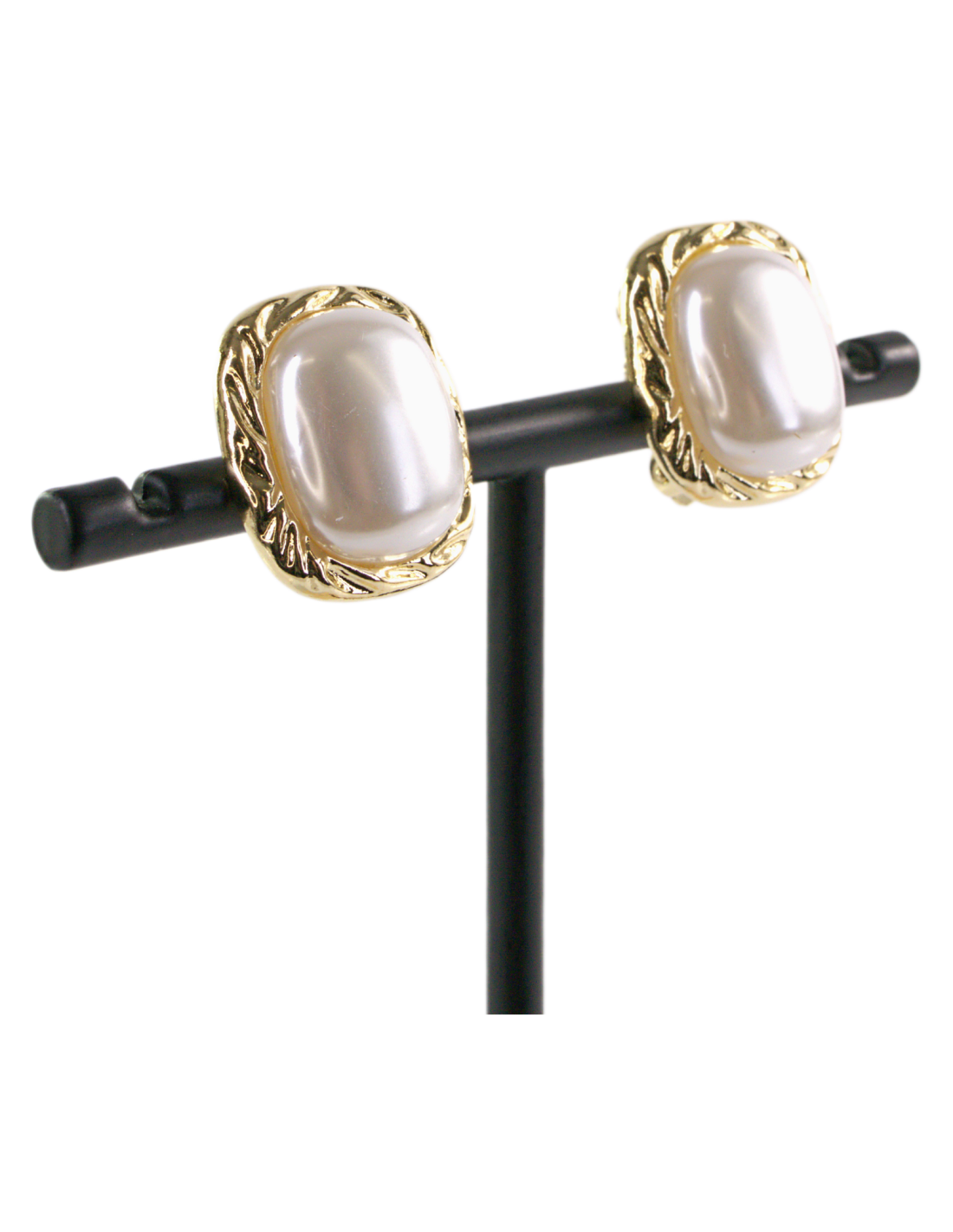 Klipsy do Uszu PERŁOWE PROSTOKĄTY W ZŁOTEJ RAMIE Lolita Akcesoria
