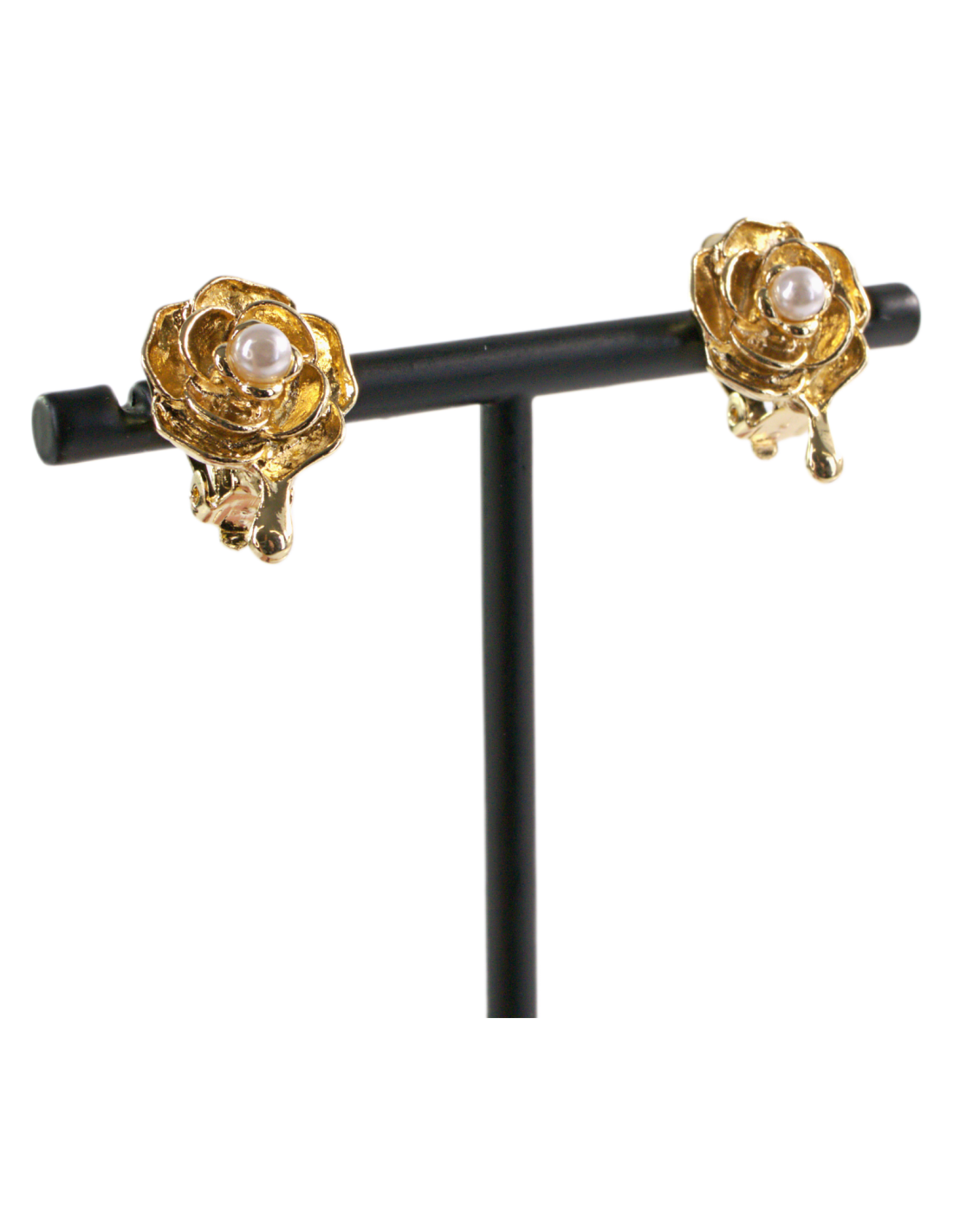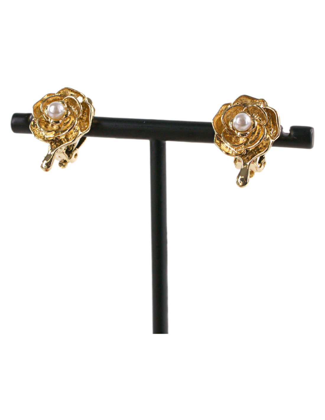 Klipsy do Uszu ZŁOTE RÓŻE Z PEREŁKĄ Lolita Akcesoria