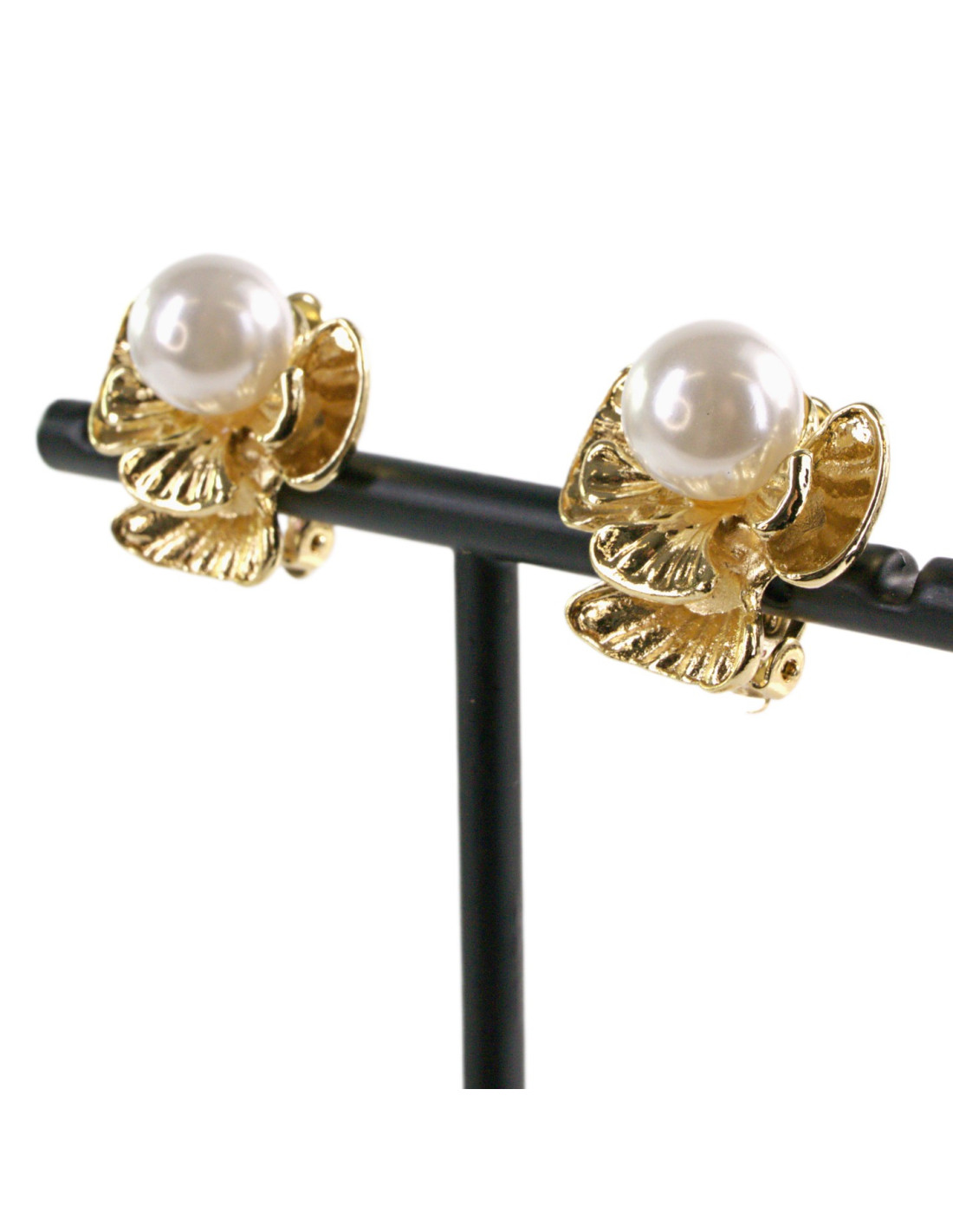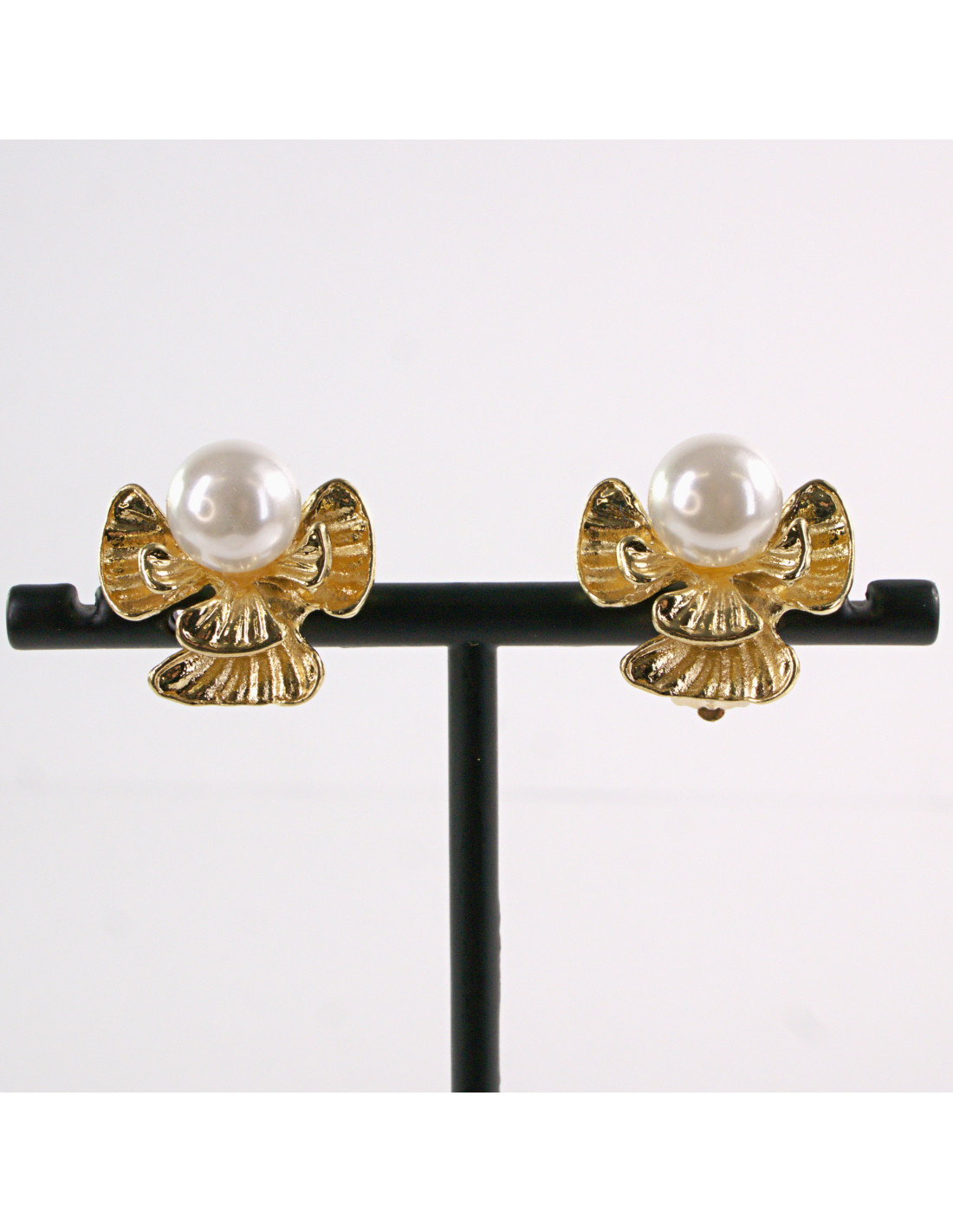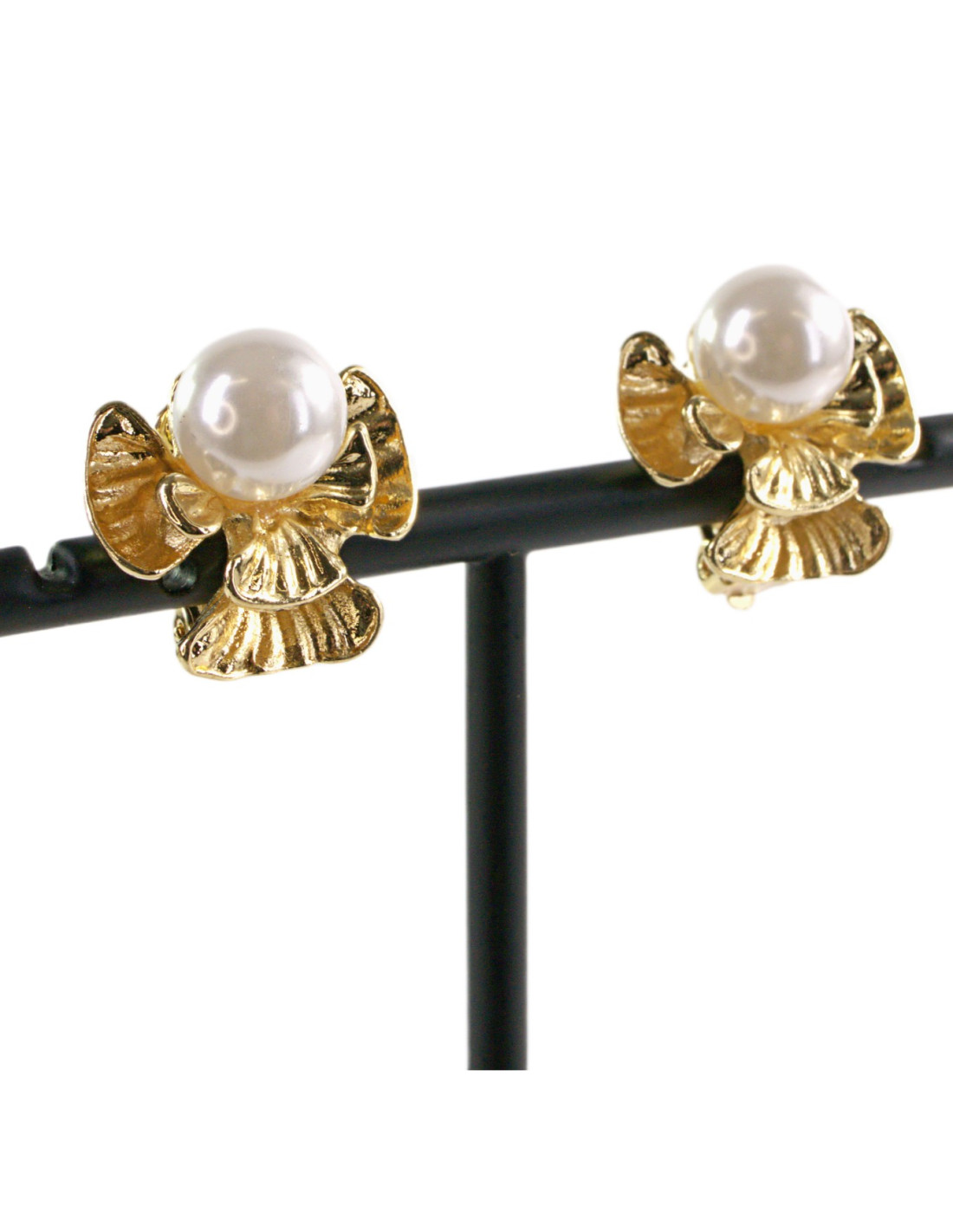 Klipsy do Uszu ZŁOTE ANIOŁKI Z PEREŁĄ KOKARDKI Z PERŁĄ Lolita Akcesoria