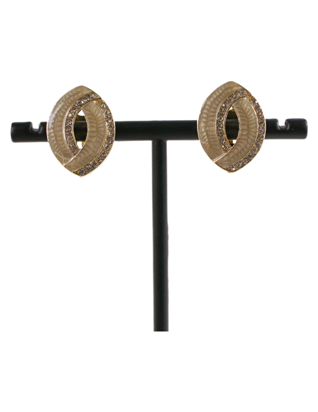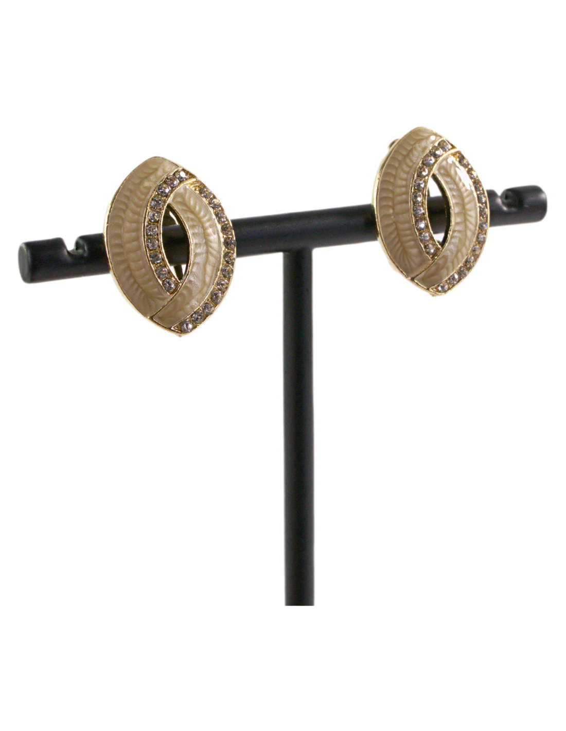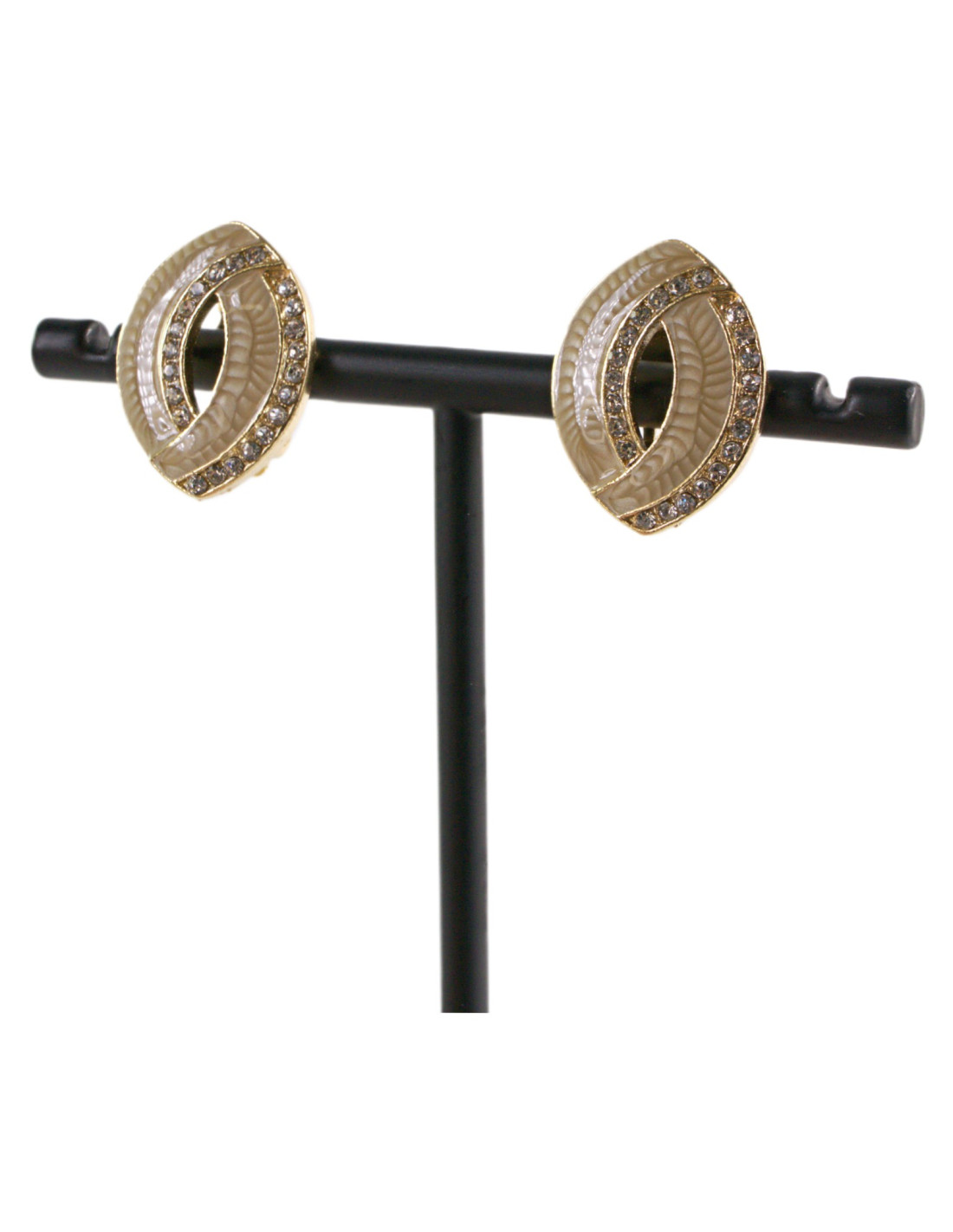 Klipsy do Uszu BEŻOWE ELIPSY Z CYRKONIAMI Lolita Akcesoria