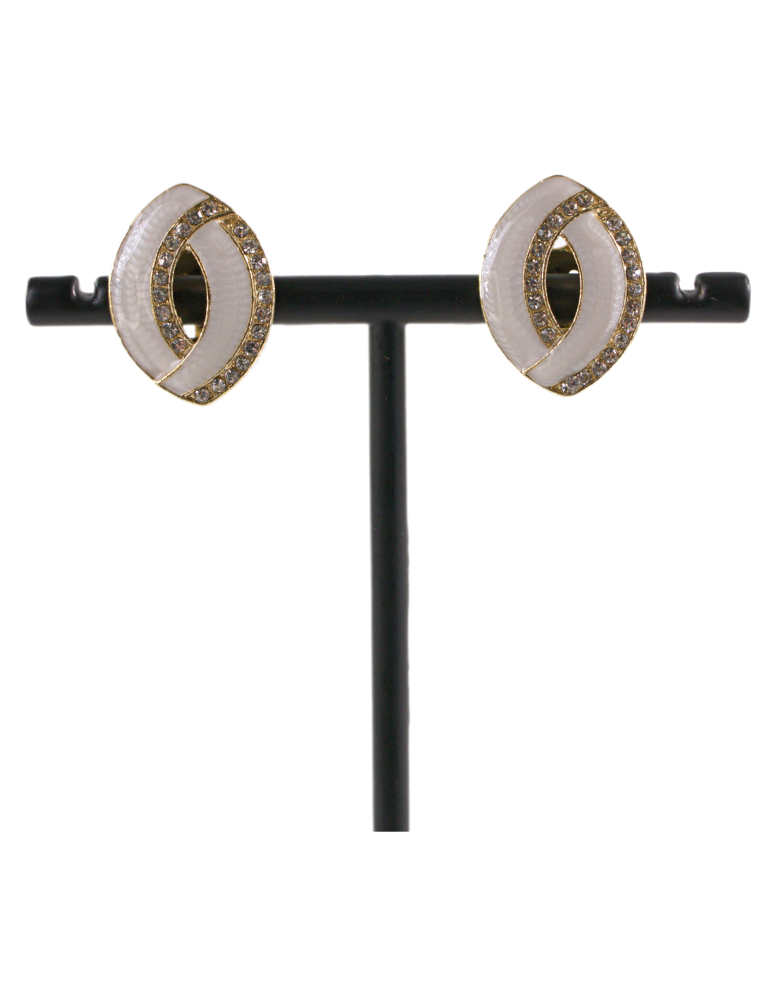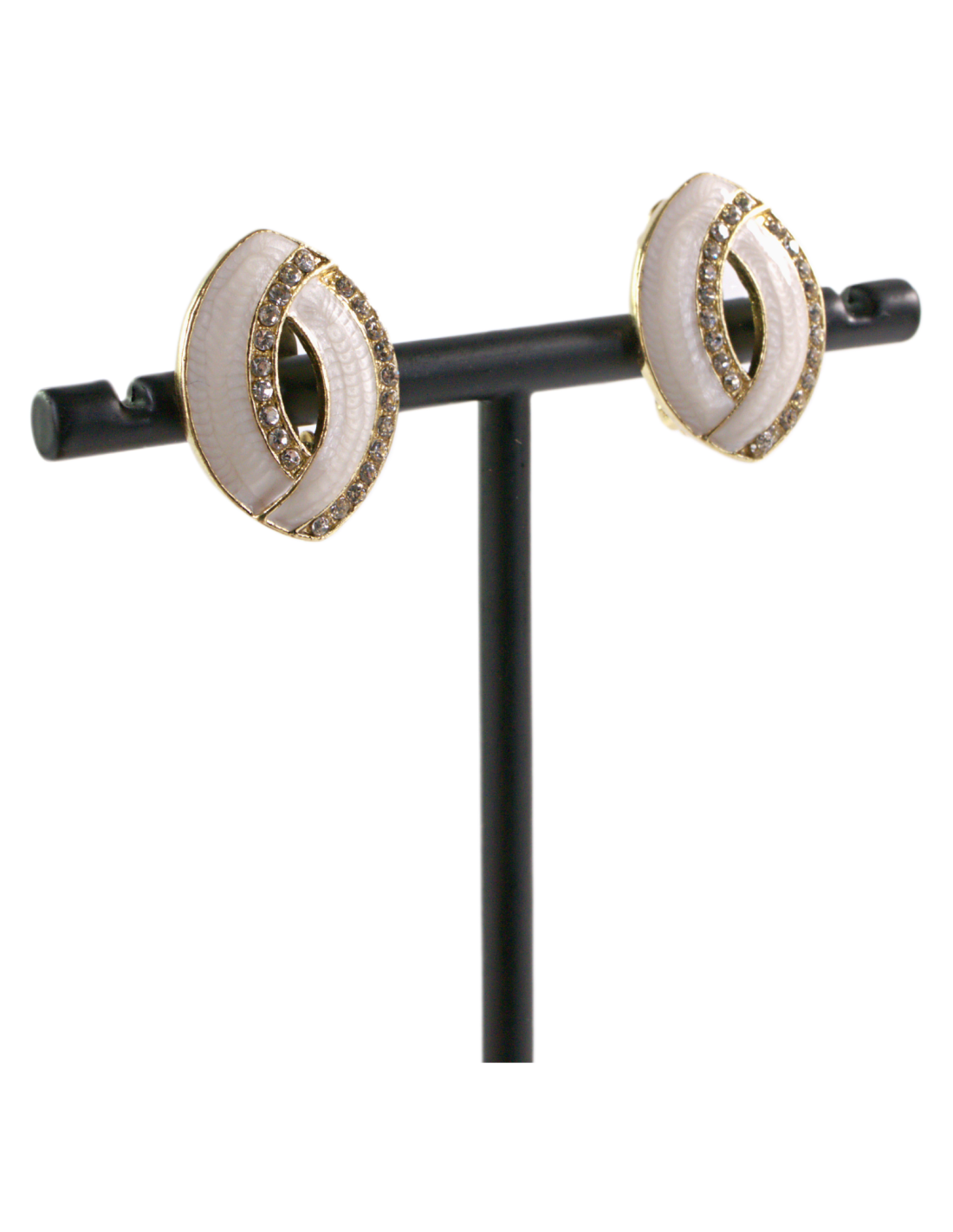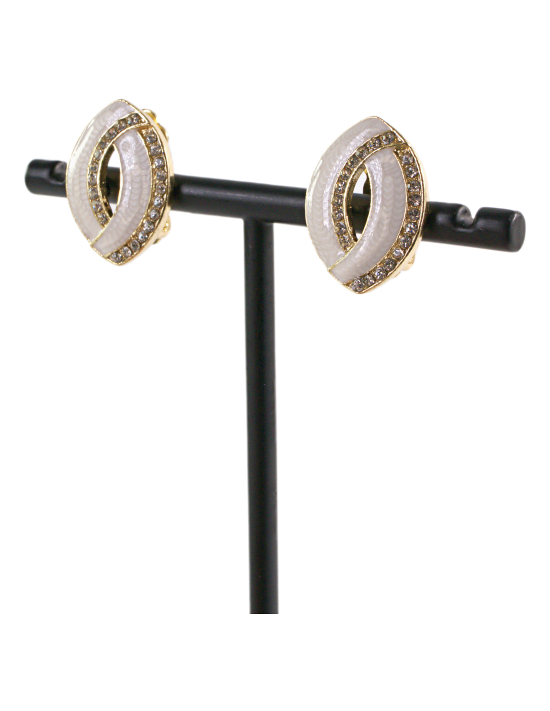 Klipsy do Uszu KREMOWE ECRU ELIPSY Z CYRKONIAMI Lolita Akcesoria