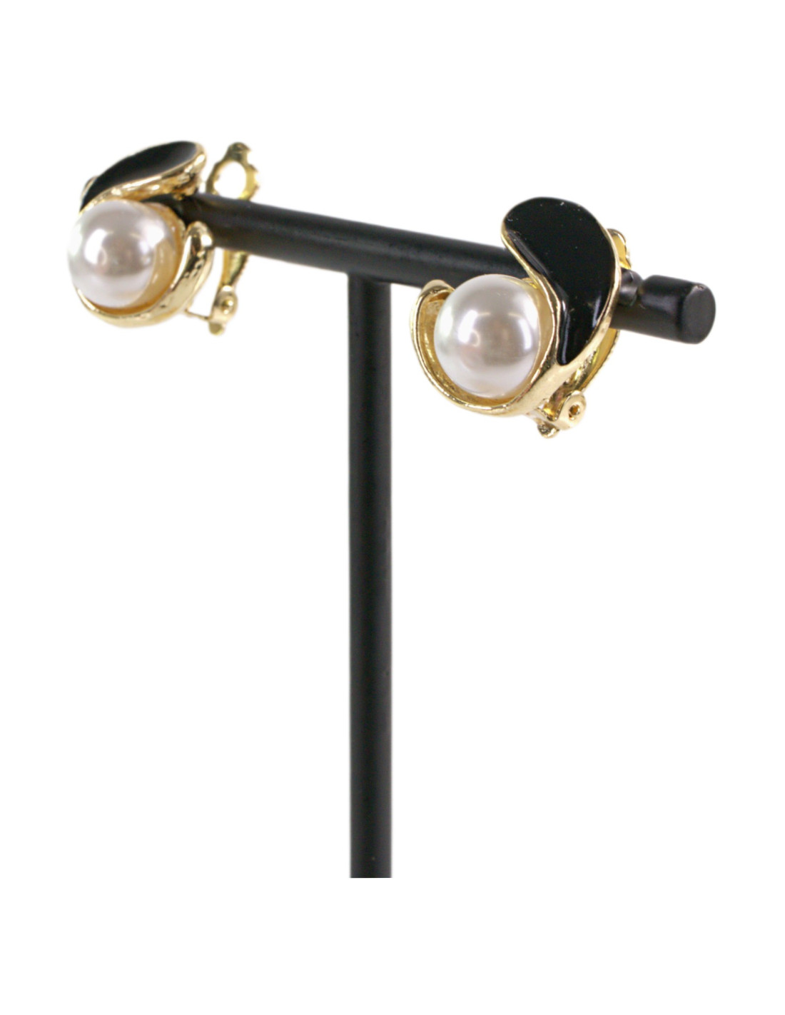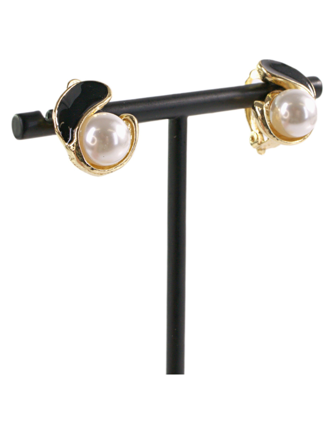 Klipsy do Uszu CZARNY ZAWIJAS Z PERŁĄ Lolita Akcesoria