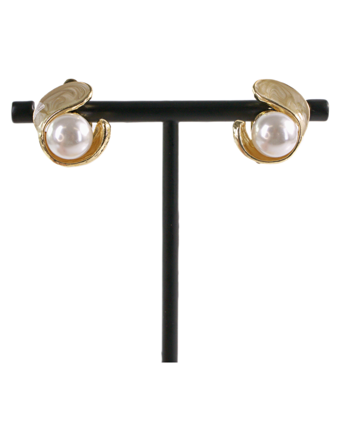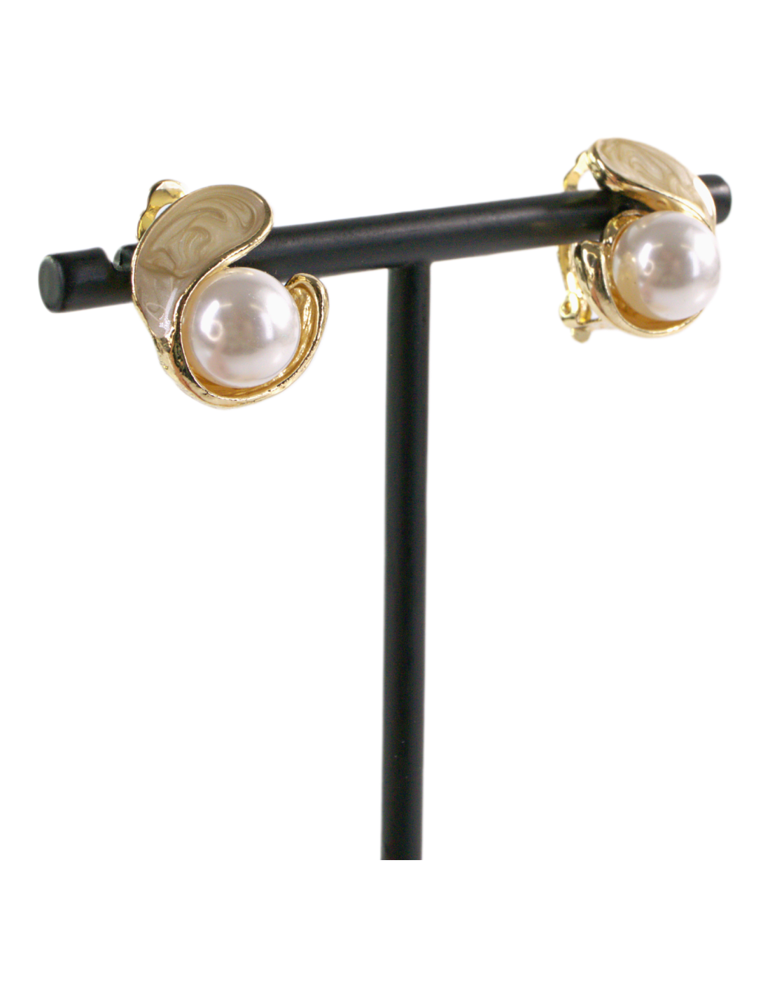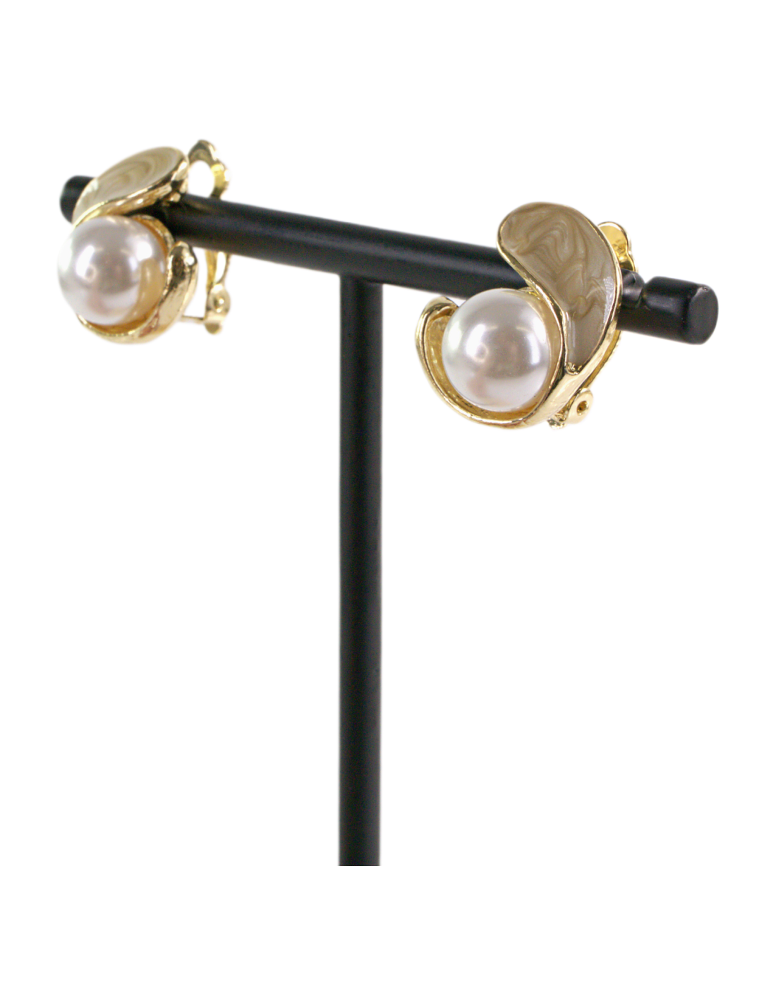 Klipsy do Uszu BEŻOWY ZAWIJAS Z PERŁĄ Lolita Akcesoria