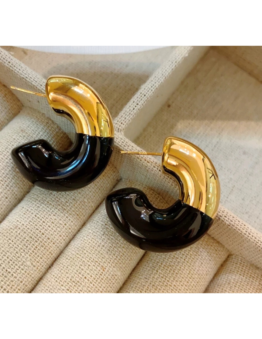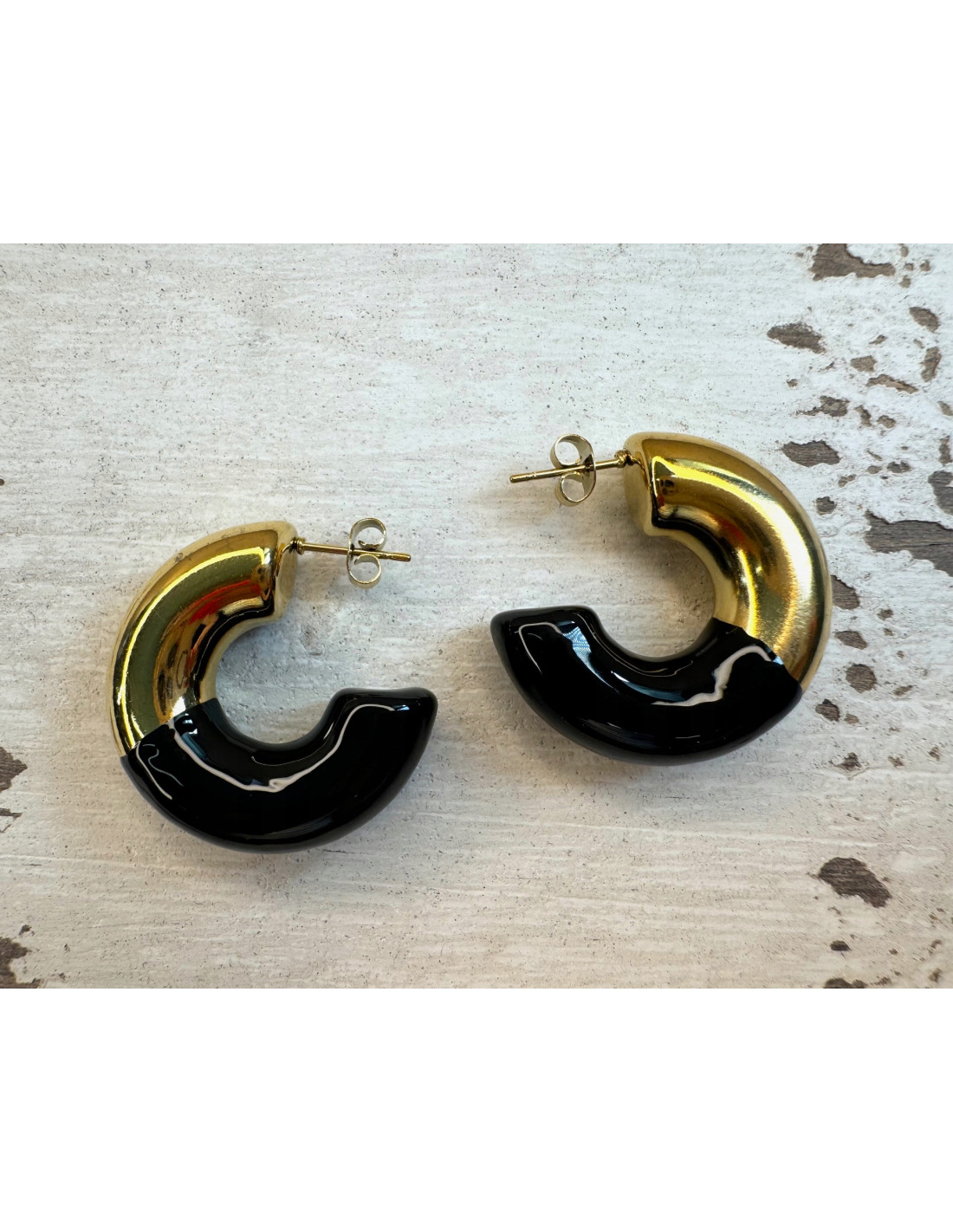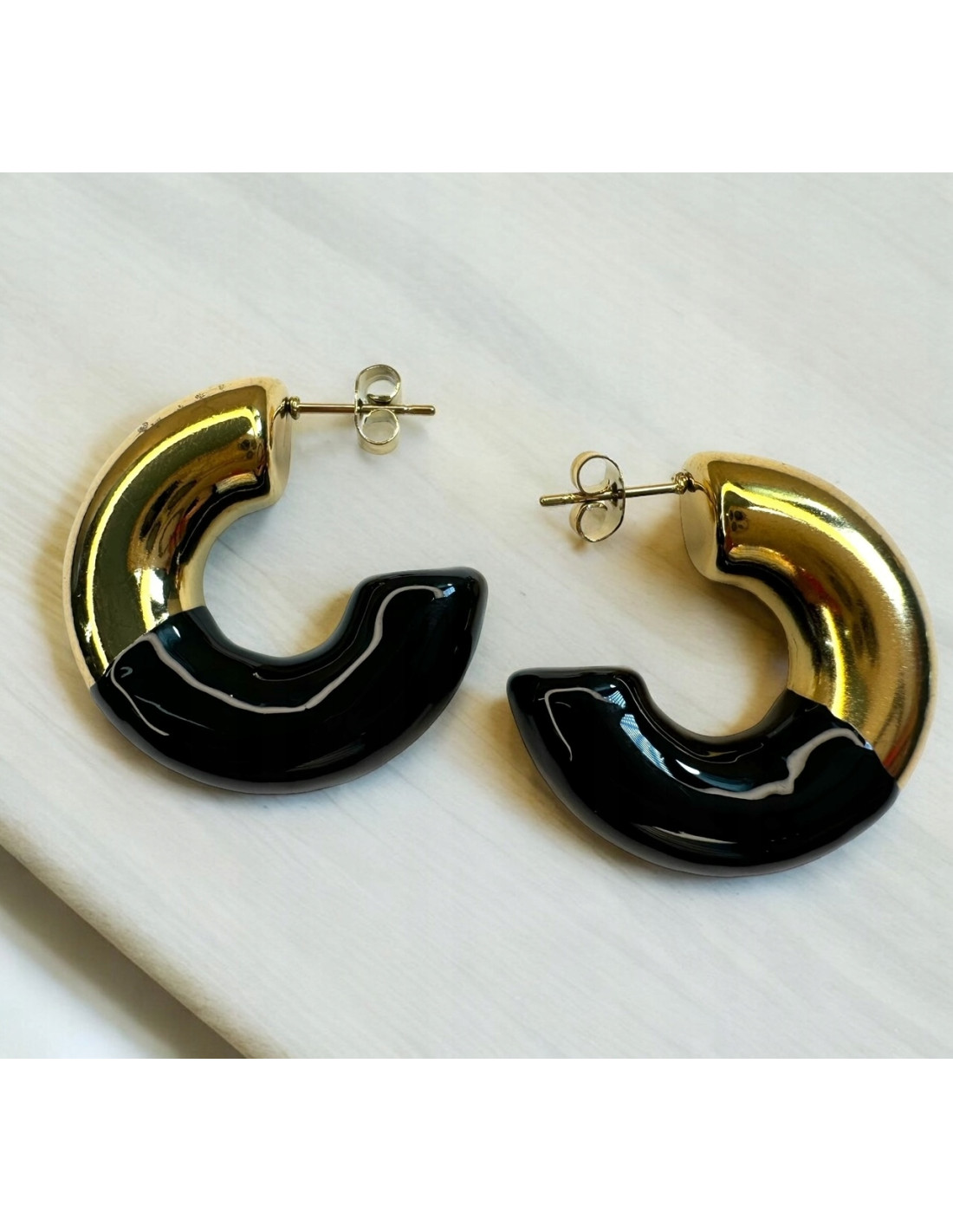 Kolczyki DMUCHANE CZARNO- ZŁOTEkoła STAL NIERDZEWNA Lolita Accessories