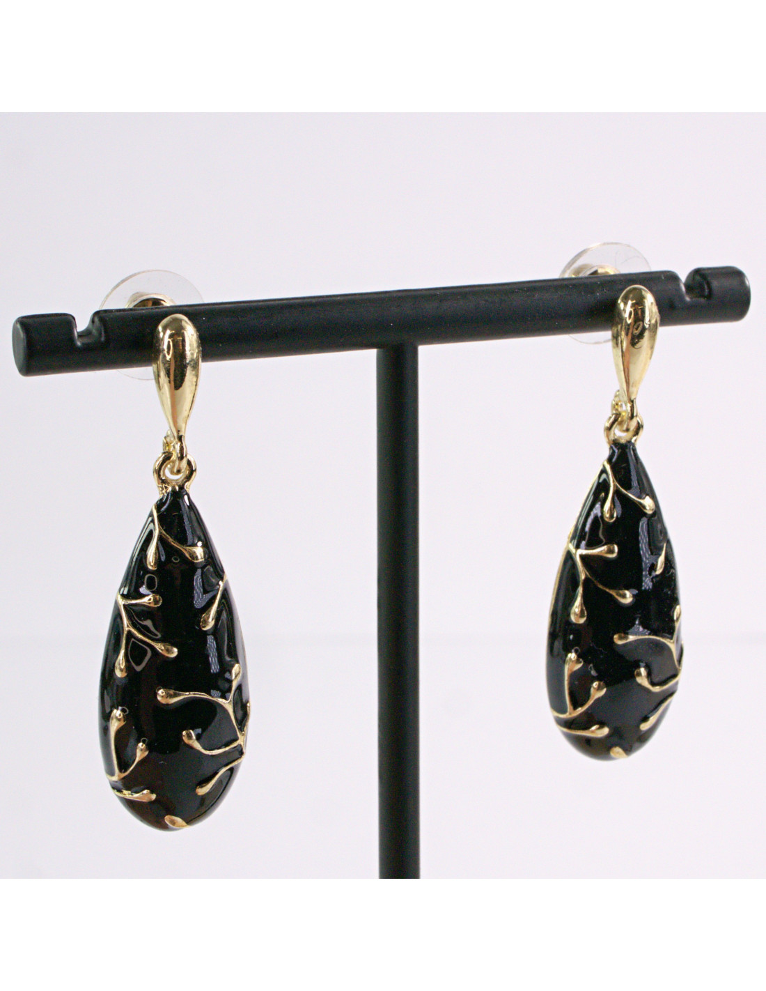 Kolczyki CZARNE WISZĄCE KROPLE ZŁOTY LOLITA AKCESORIA srebrny sztyft 925