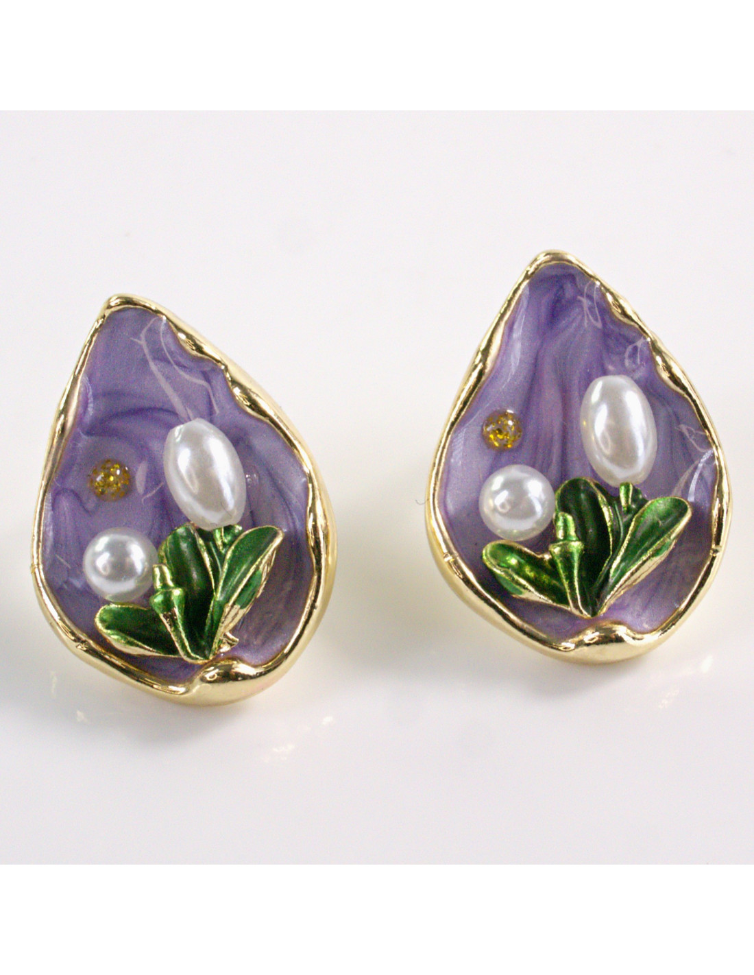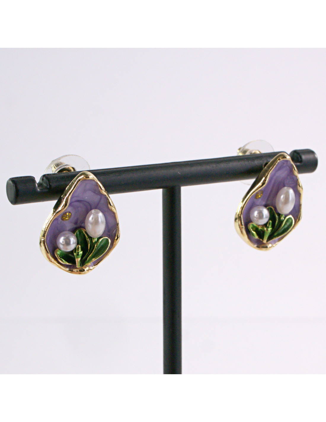 Kolczyki FIOLETOWY PORTRET KWIAT LOLITA AKCESORIA srebrny sztyft 925