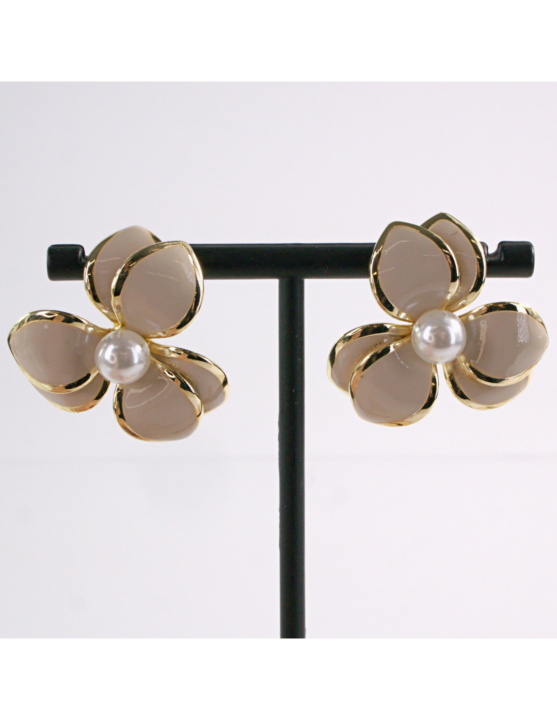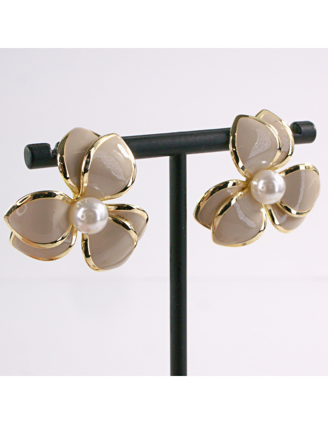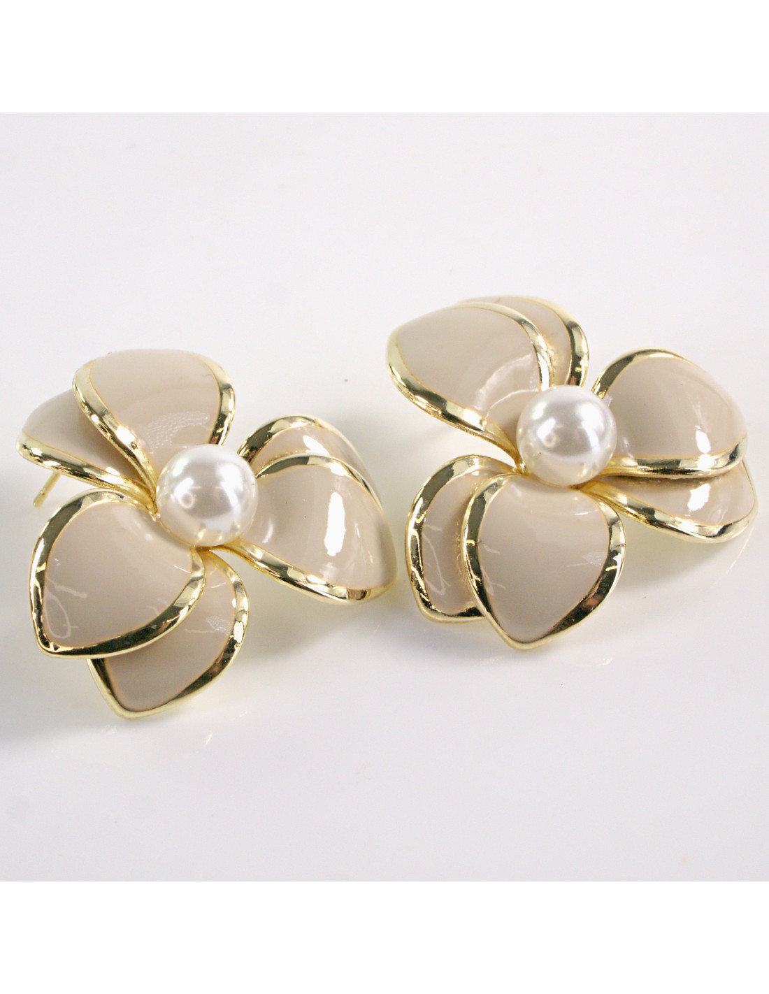 Kolczyki BEŻOWY KWIAT PERŁA KWIATEK LOLITA AKCESORIA srebrny sztyft 925