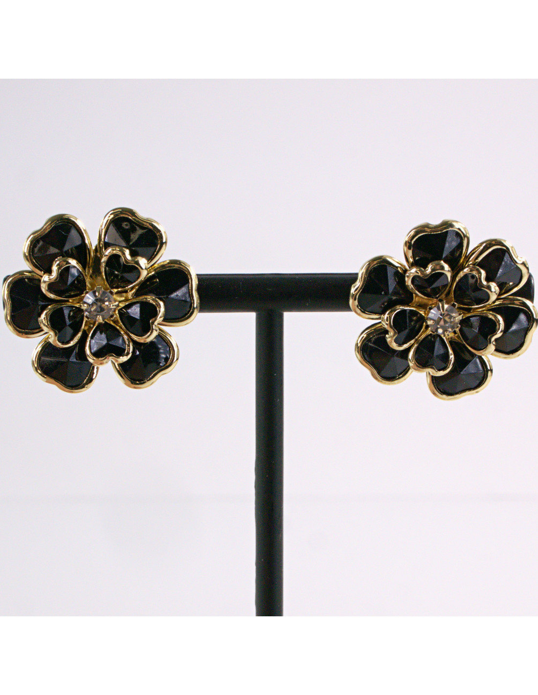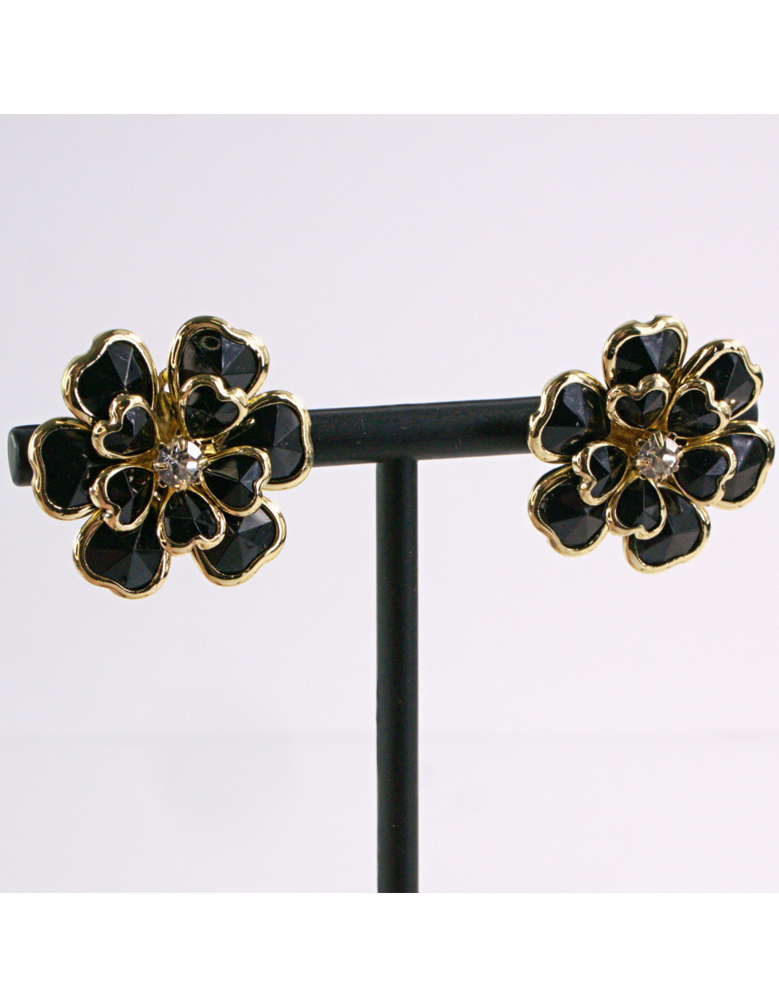 Kolczyki CZARNY KWIAT KWIATEK LOLITA AKCESORIA srebrny sztyft 925