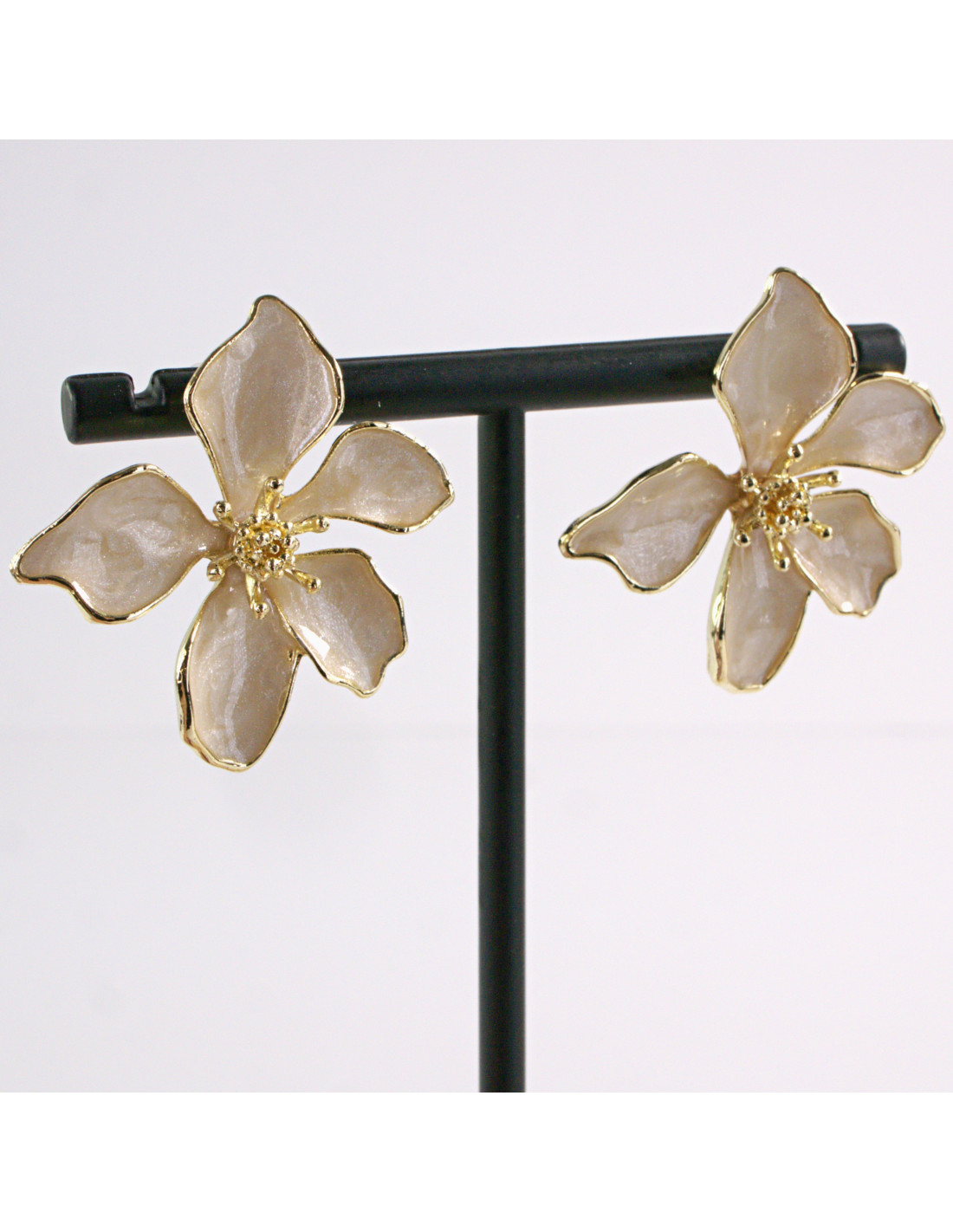 Kolczyki BEŻOWY KWIAT KWIATEK LOLITA AKCESORIA srebrny sztyft 925