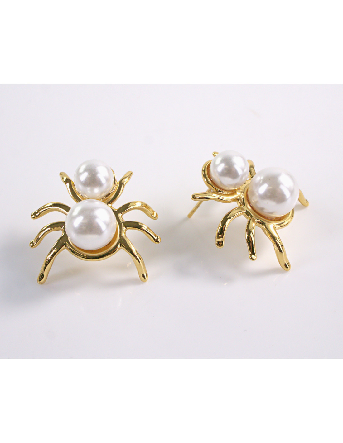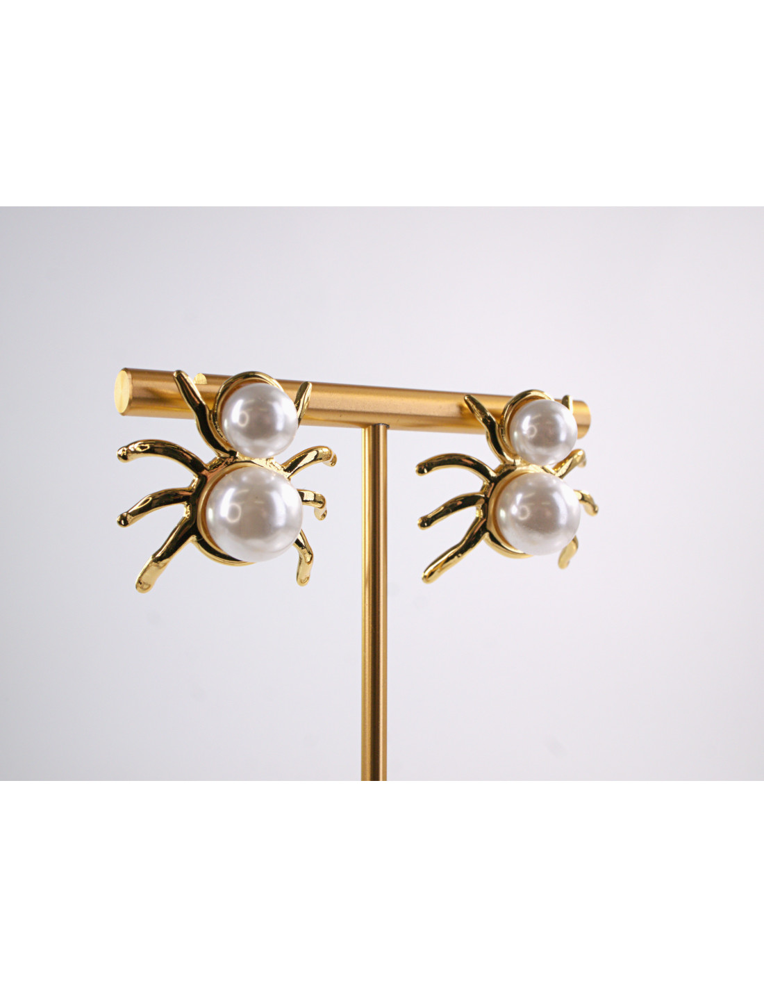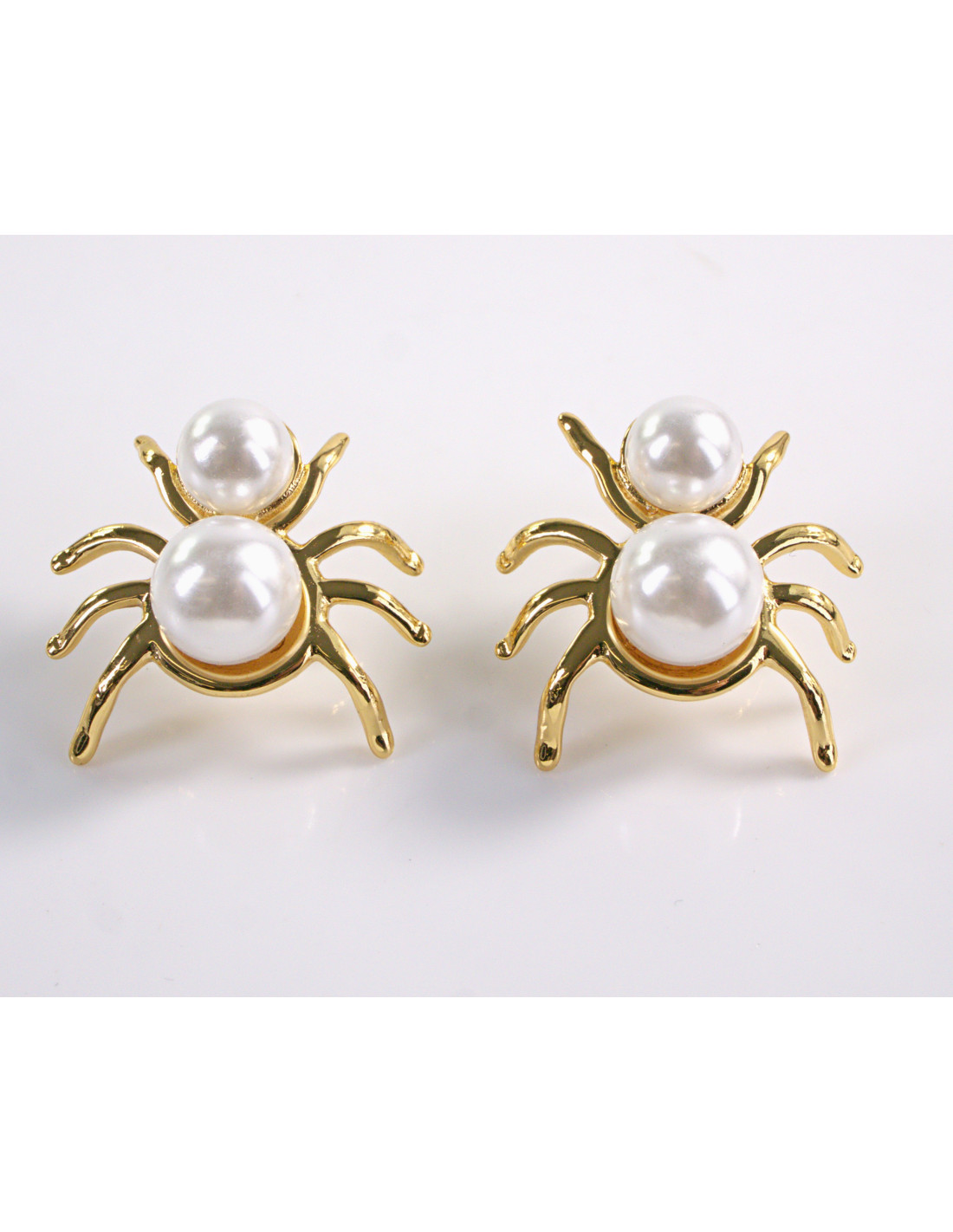Kolczyki ZŁOTY PAJĄK Z PERŁĄ STAL CHIRURGICZNA LOLITA AKCESORIA