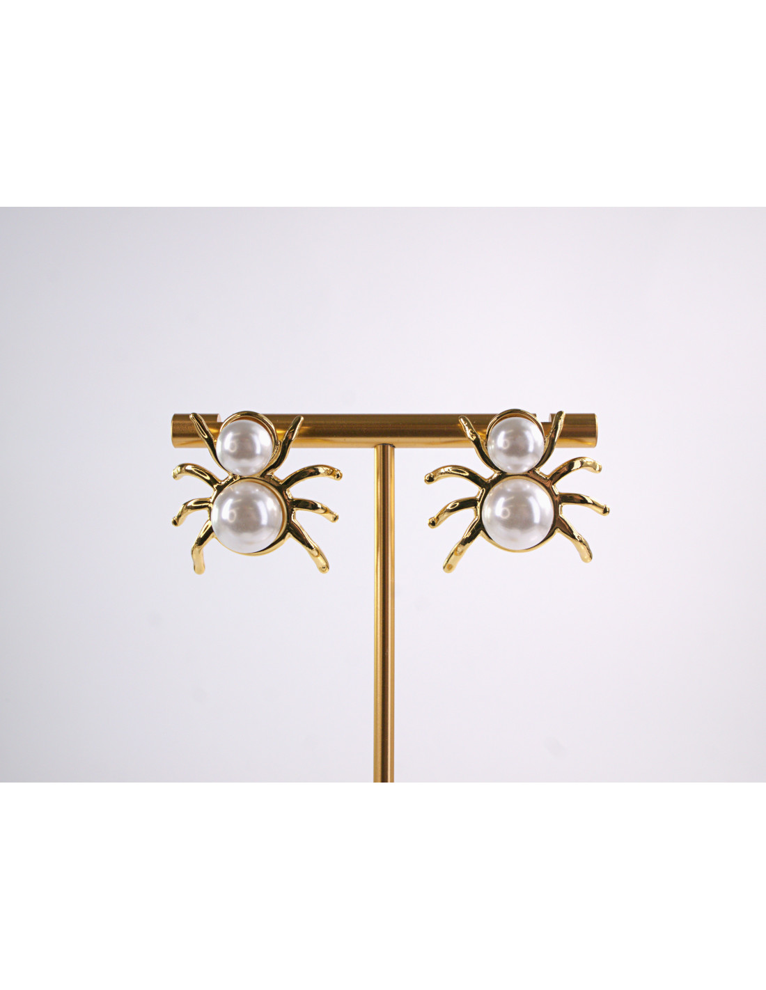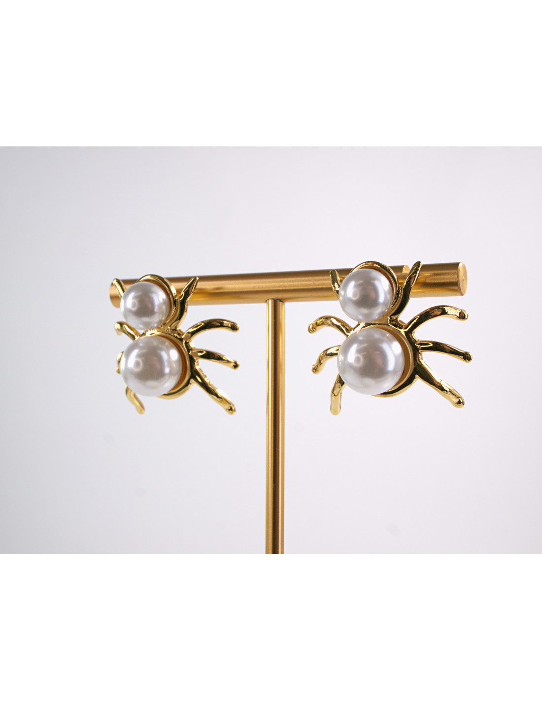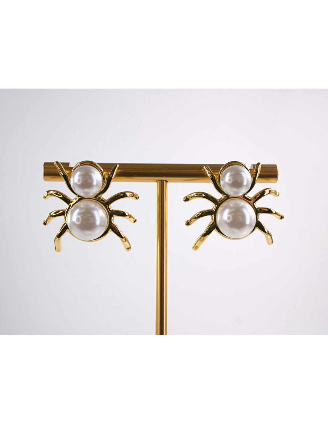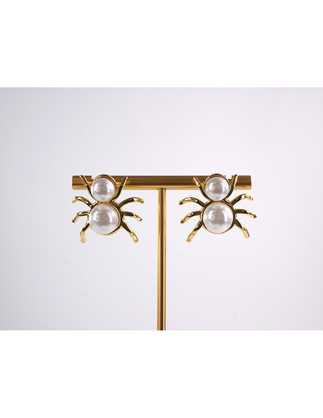 Kolczyki ZŁOTY PAJĄK Z PERŁĄ STAL CHIRURGICZNA LOLITA AKCESORIA