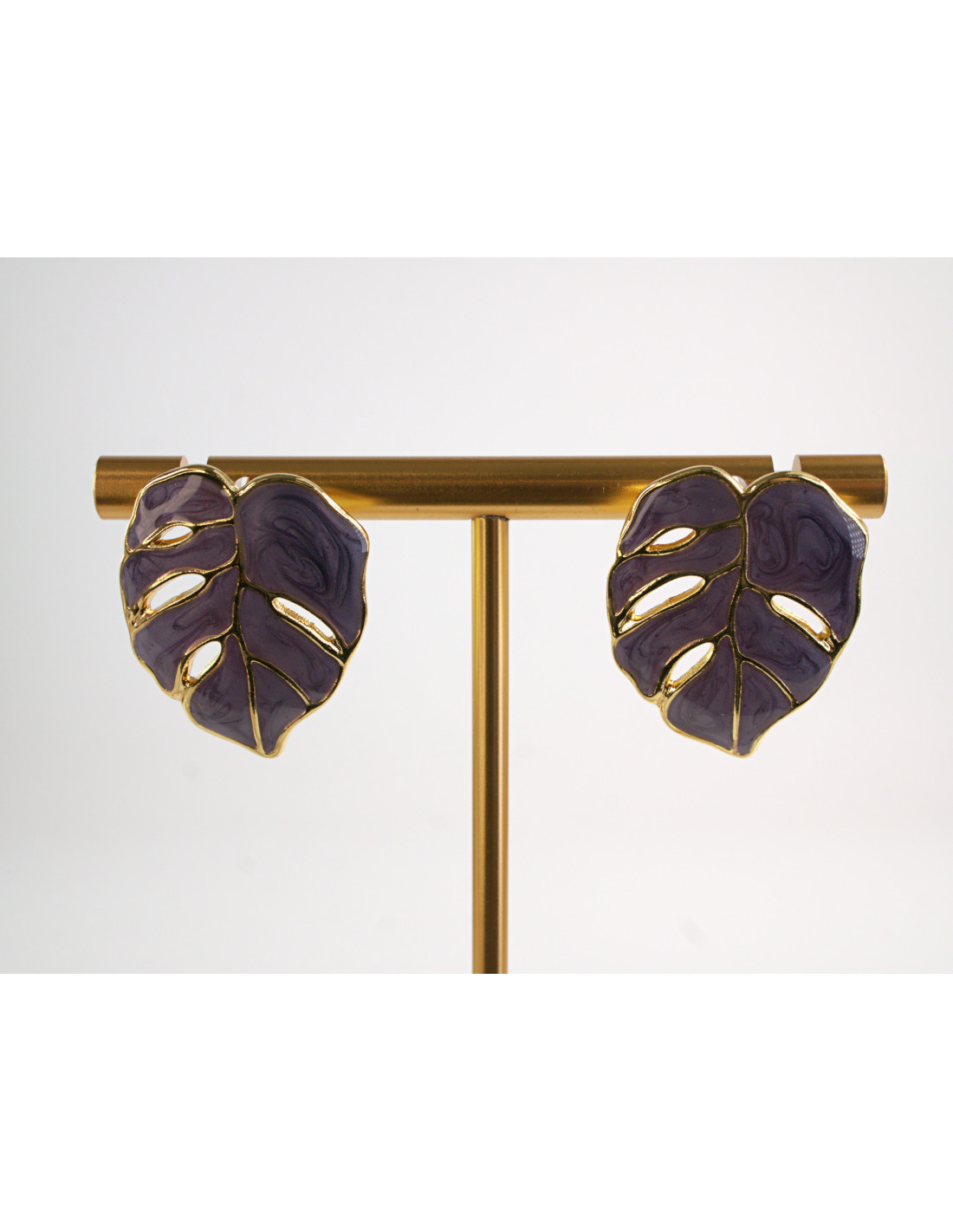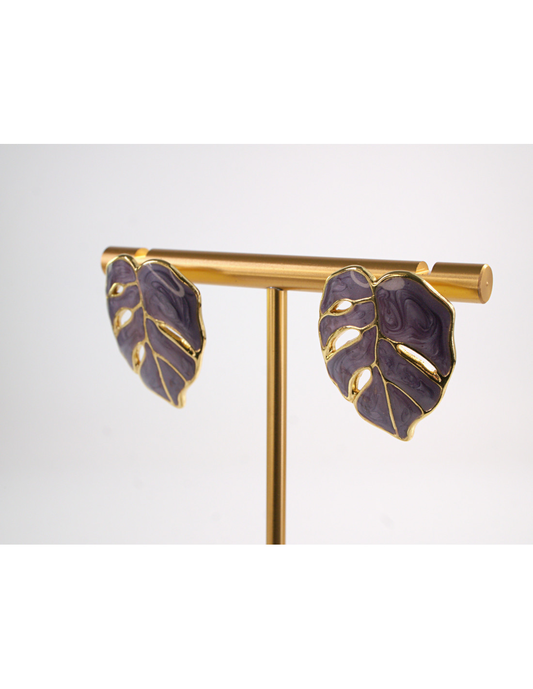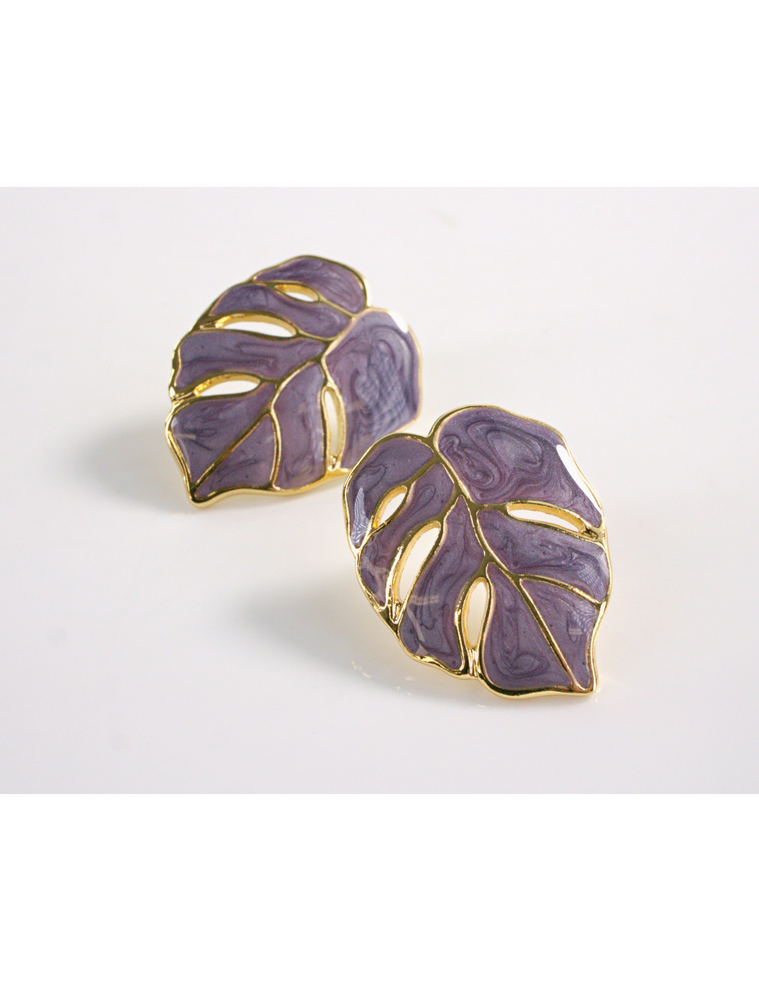 Kolczyki LIŚĆ FIOLETOWY LIŚĆ MONSTERA STAL CHIRURGICZNA LOLITA AKCESORIA