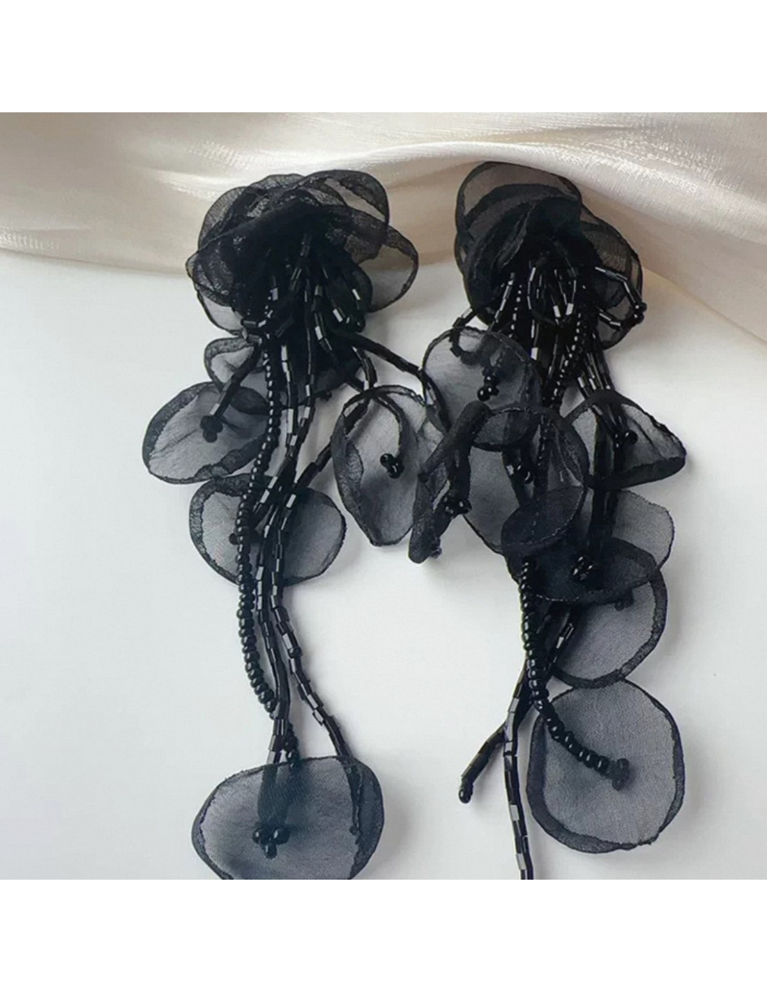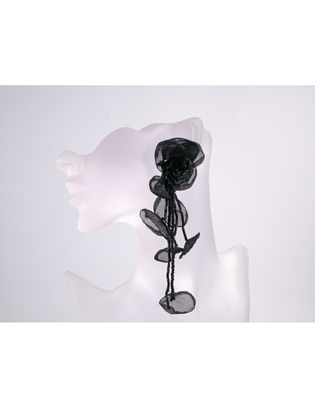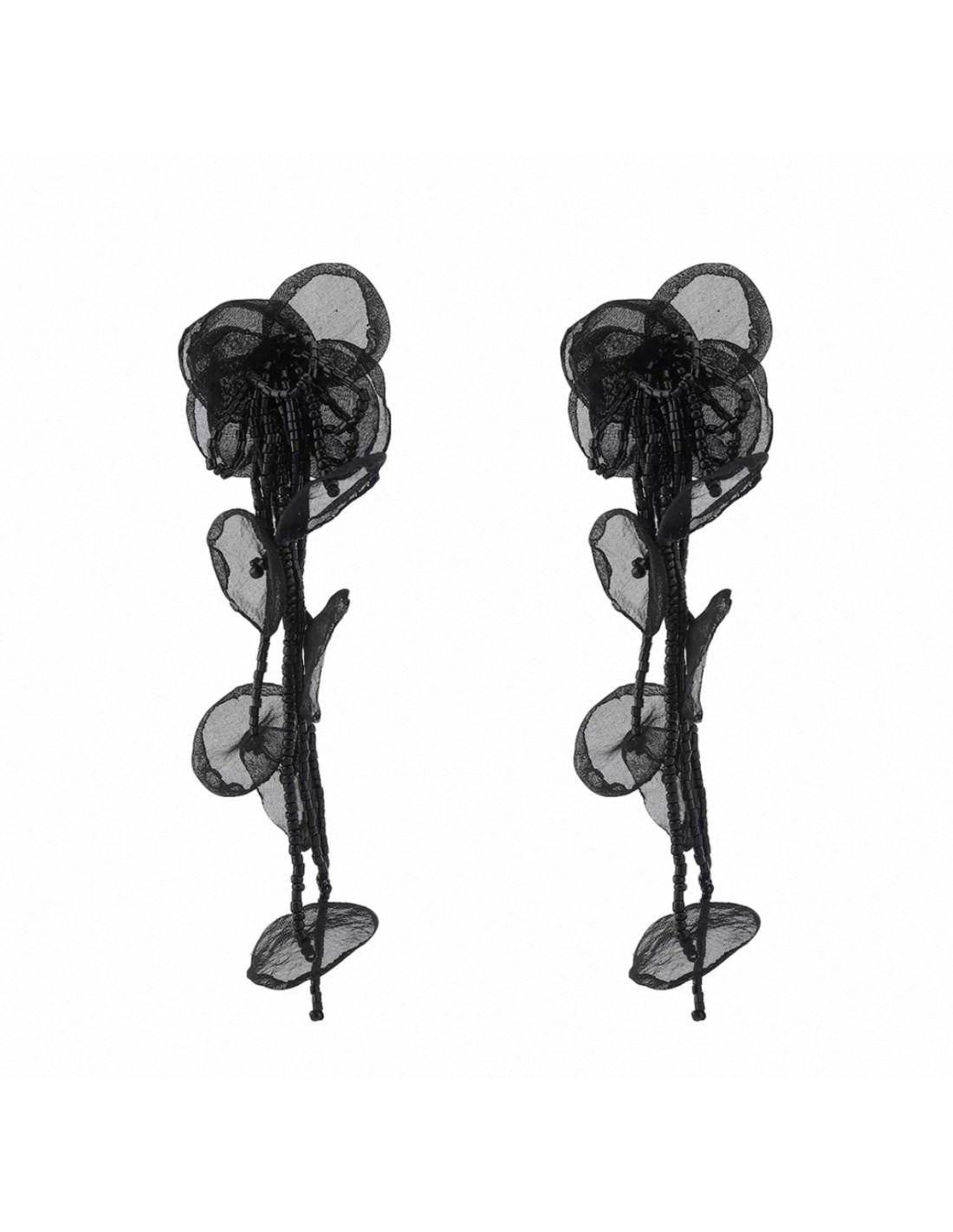 Kolczyki KWIATY DŁUGIE WIECZOROWE CZARNE MAXI LOLITA AKCESORIA sztyft 925