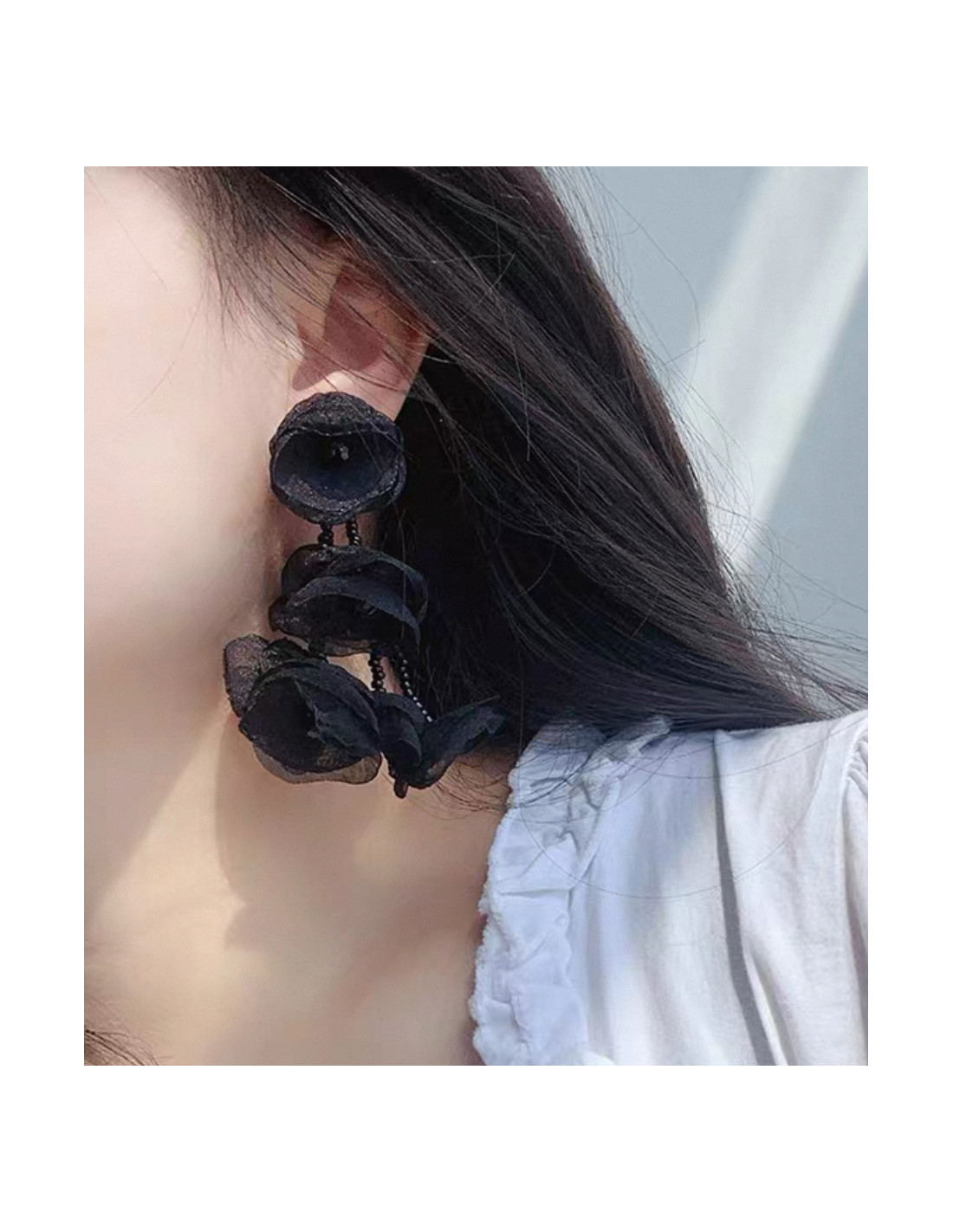 Kolczyki KWIATY WIECZOROWE CZARNE MAXI LOLITA AKCESORIA sztyft 925
