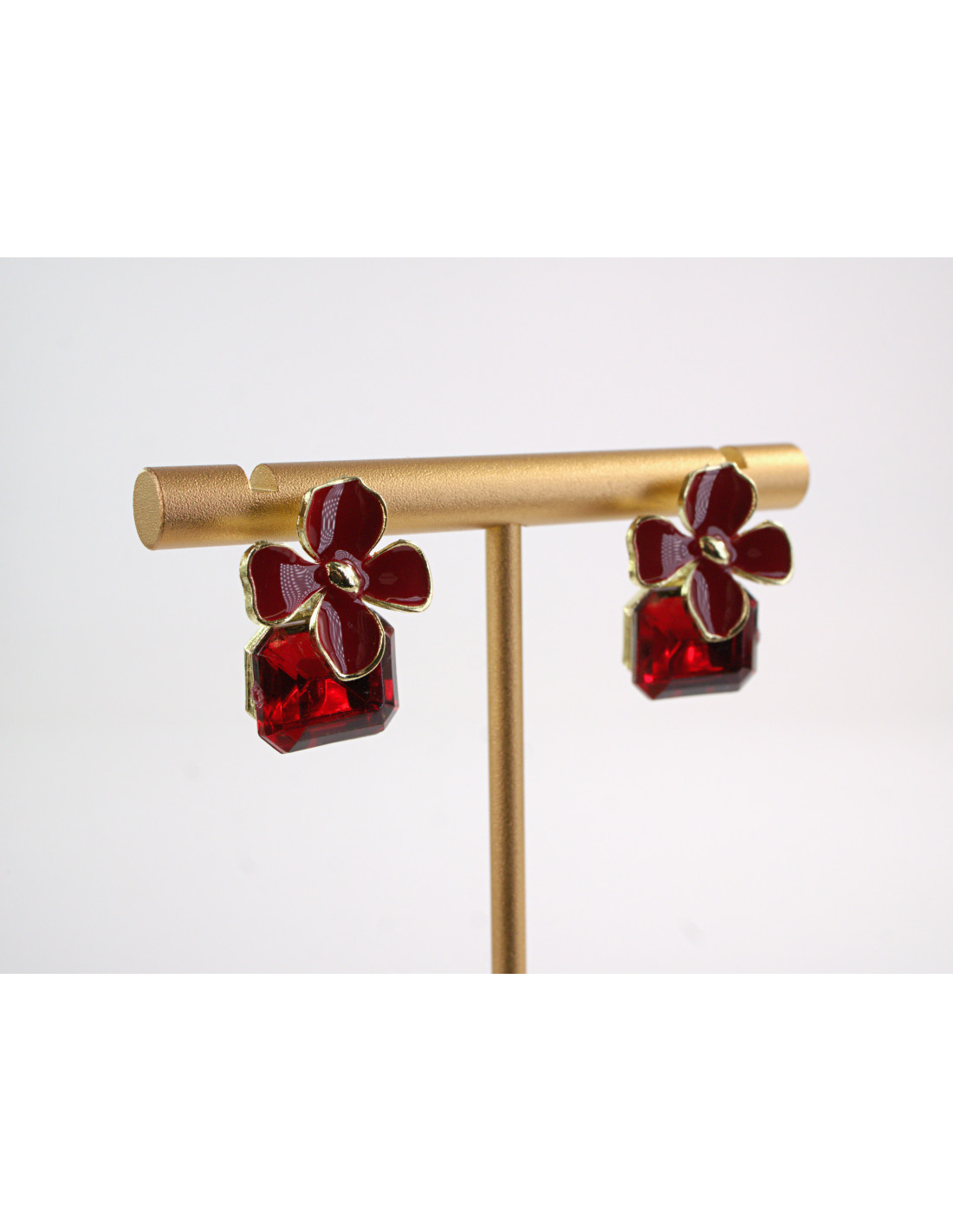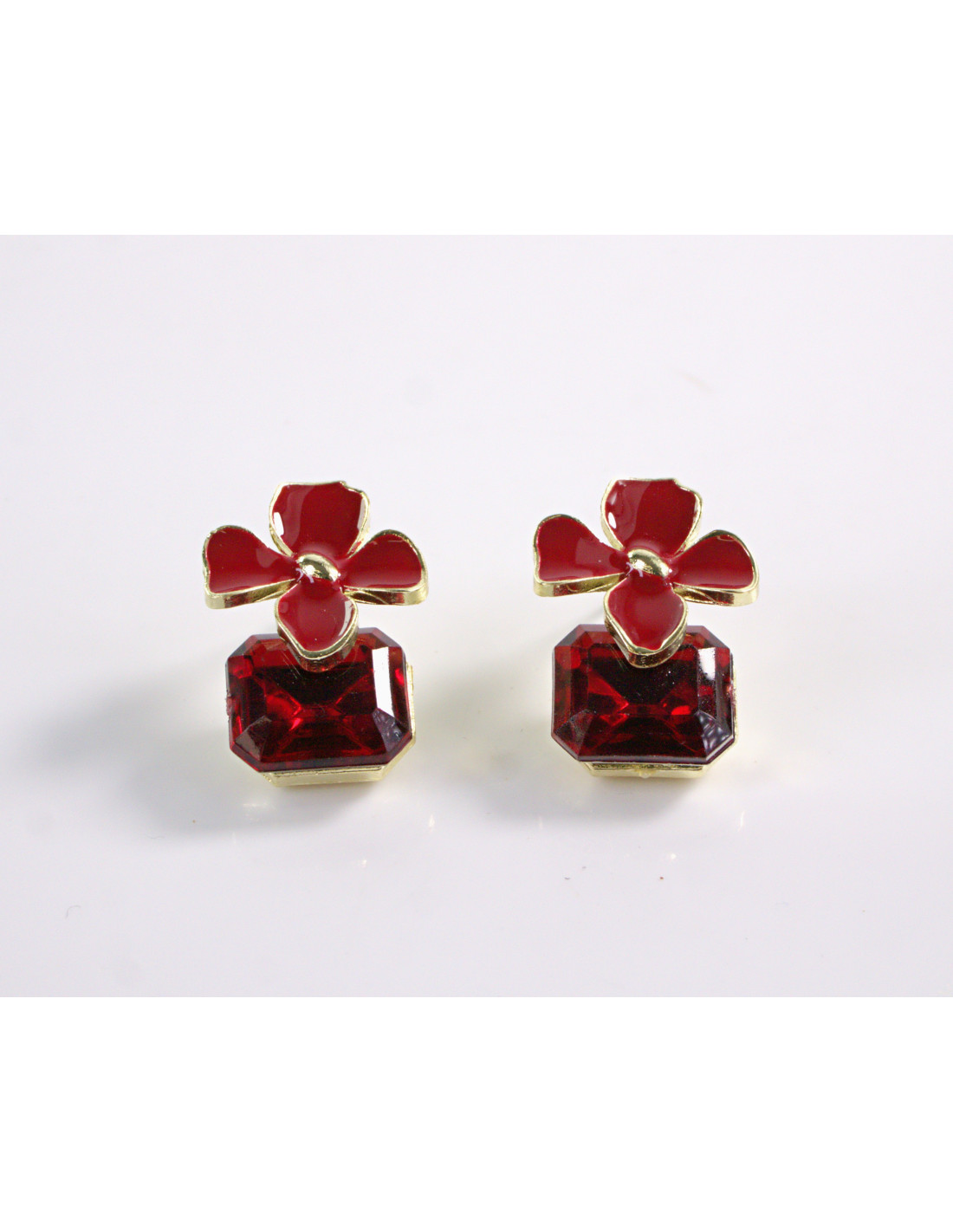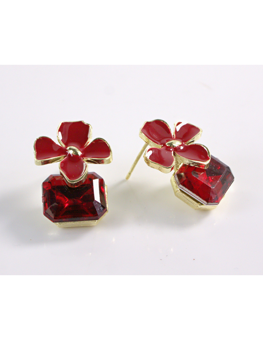 Kolczyki CZERWONE KWIATKI Z KAMIENIEM LOLITA AKCESORIA srebrny sztyft 925