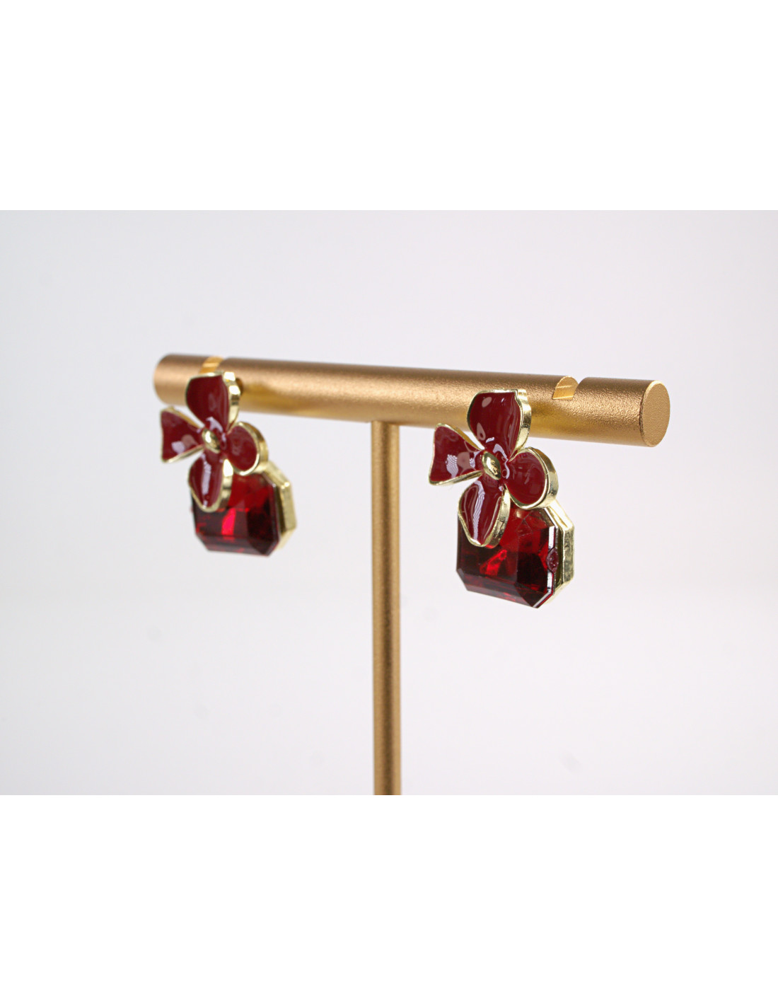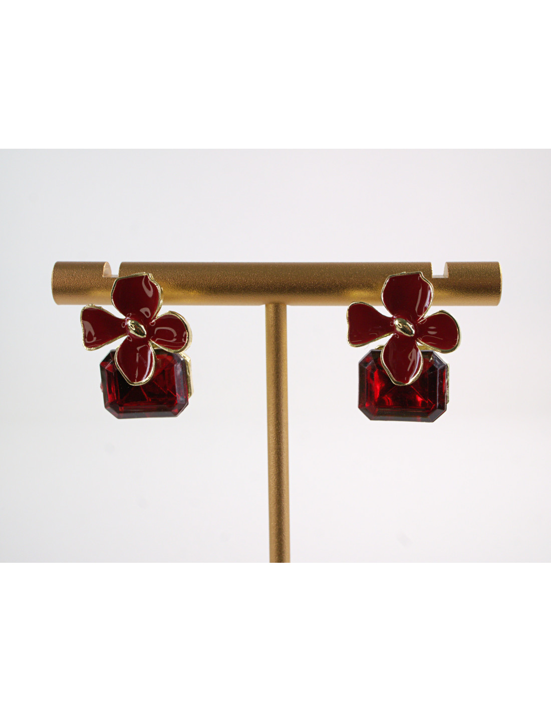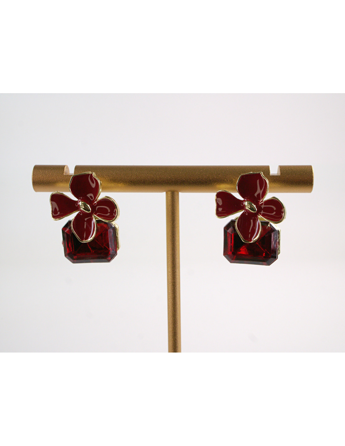 Kolczyki CZERWONE KWIATKI Z KAMIENIEM LOLITA AKCESORIA srebrny sztyft 925