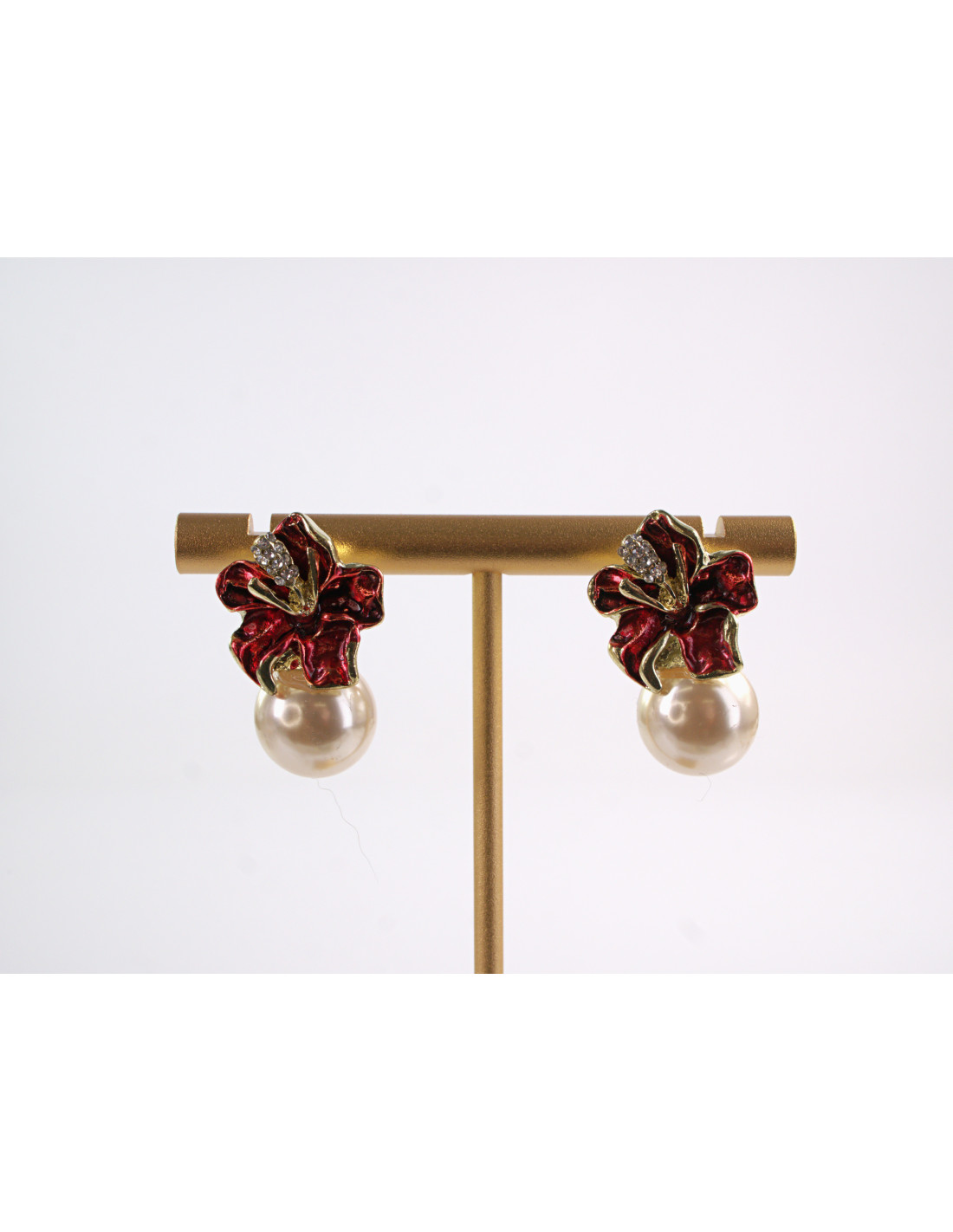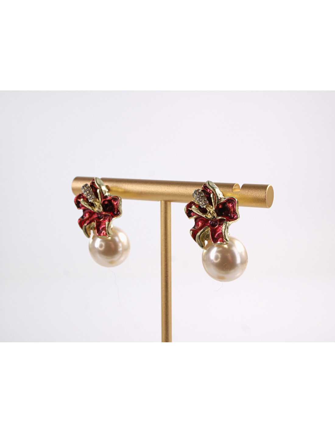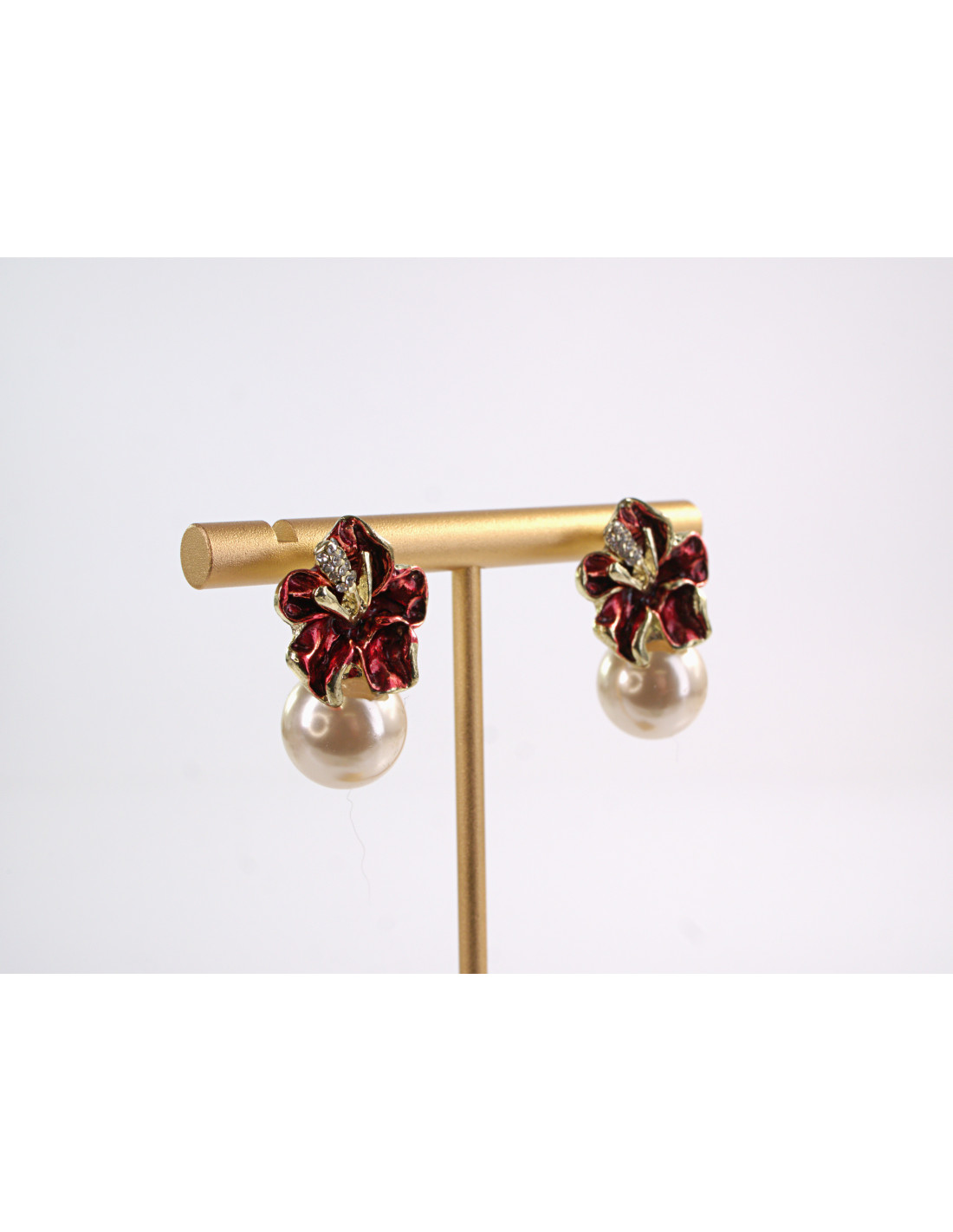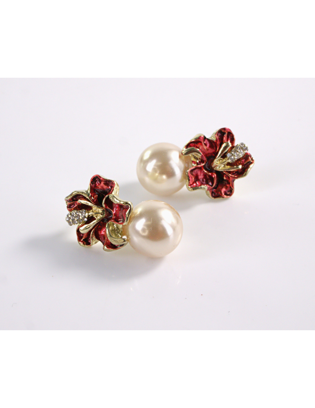 Kolczyki CZERWONE KWIATKI Z PERŁĄ LOLITA AKCESORIA srebrny sztyft 925