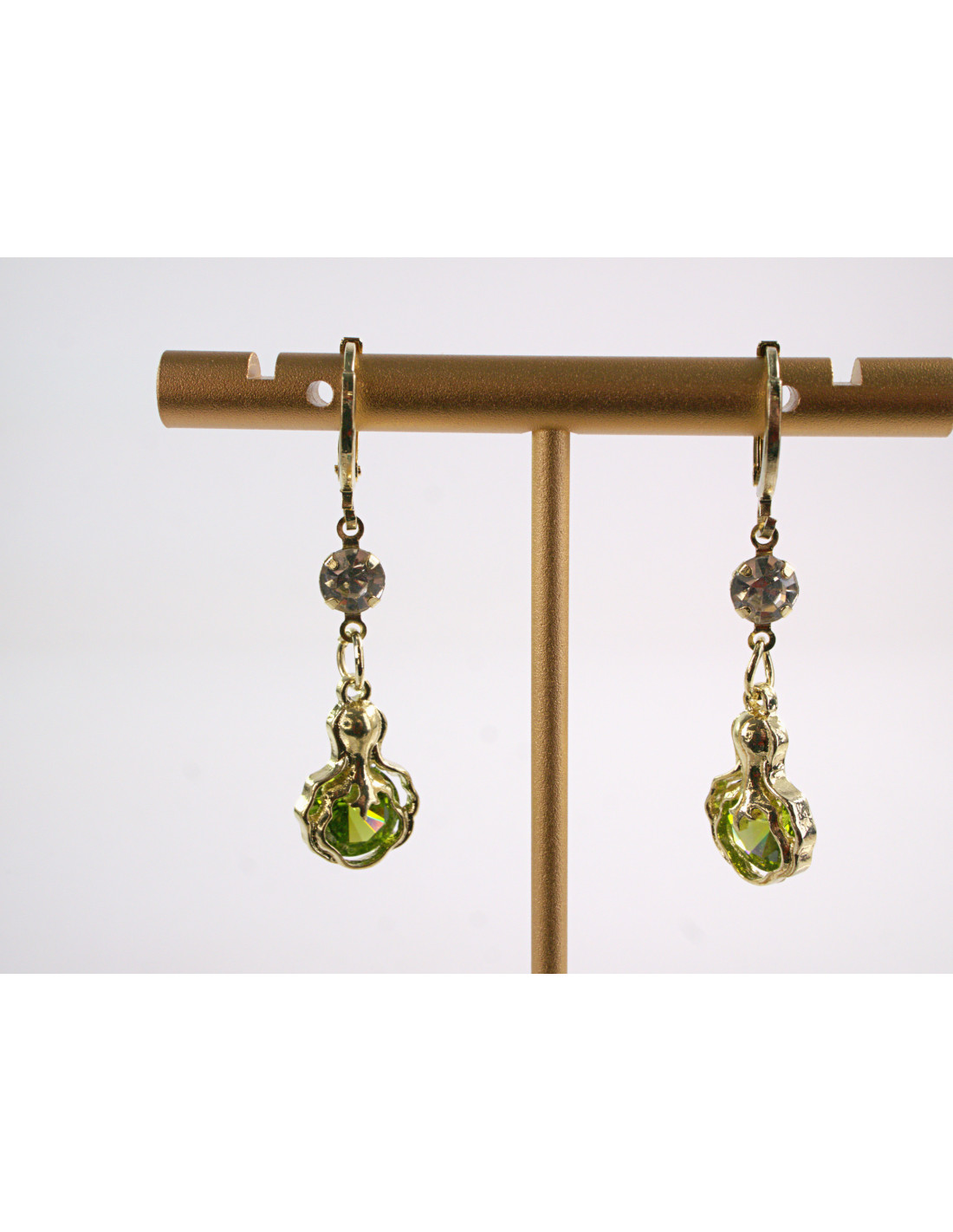 Kolczyki WISZĄCE ZIELONE OCZKO LOLITA AKCESORIA srebrny sztyft 925
