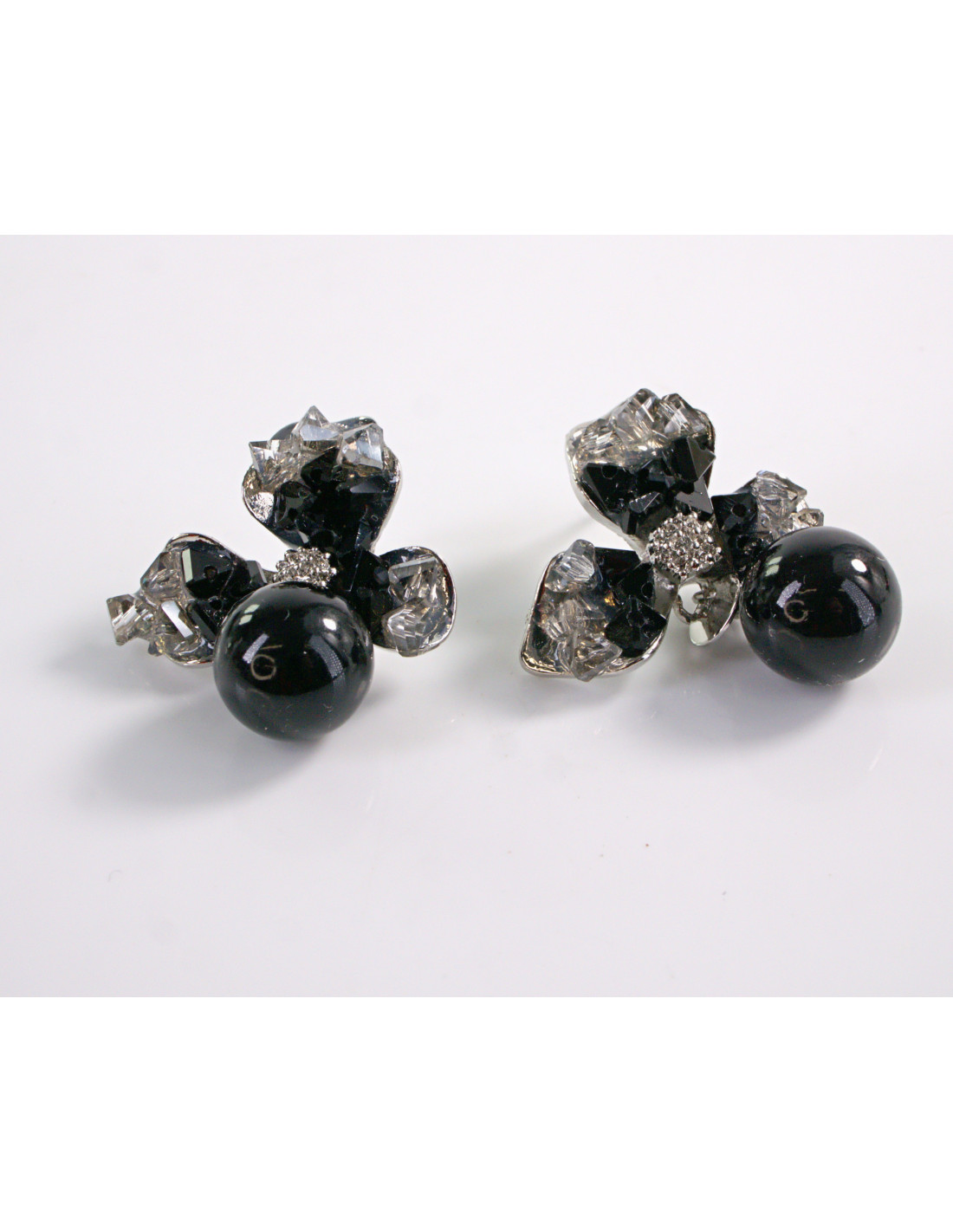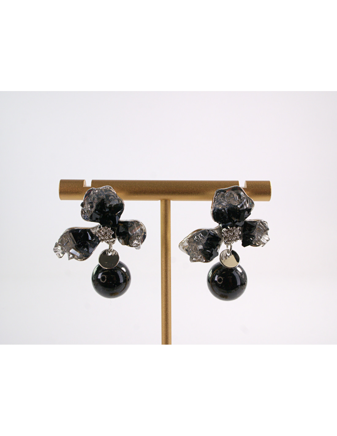 Kolczyki CZARNE KWIATY Z PERŁĄ LOLITA AKCESORIA srebrny sztyft 925