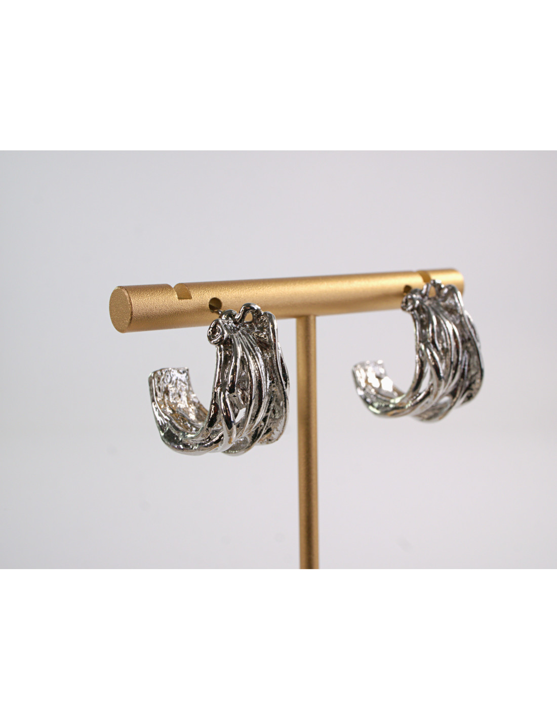 - Sztyft, czyli część kolczyka, która przechodzi przez ucho, jest wykonany ze srebra, co sprawia, że jest on bardziej wytrzymały i mniej podatny na reakcje alergiczne niż niektóre