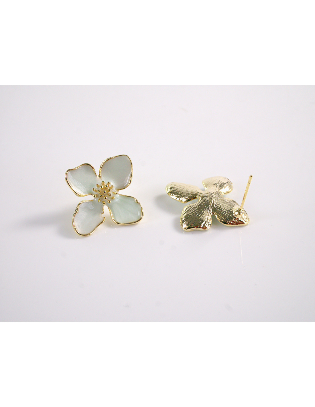 - Sztyft, czyli część kolczyka, która przechodzi przez ucho, jest wykonany ze srebra, co sprawia, że jest on bardziej wytrzymały i mniej podatny na reakcje alergiczne niż niektóre
