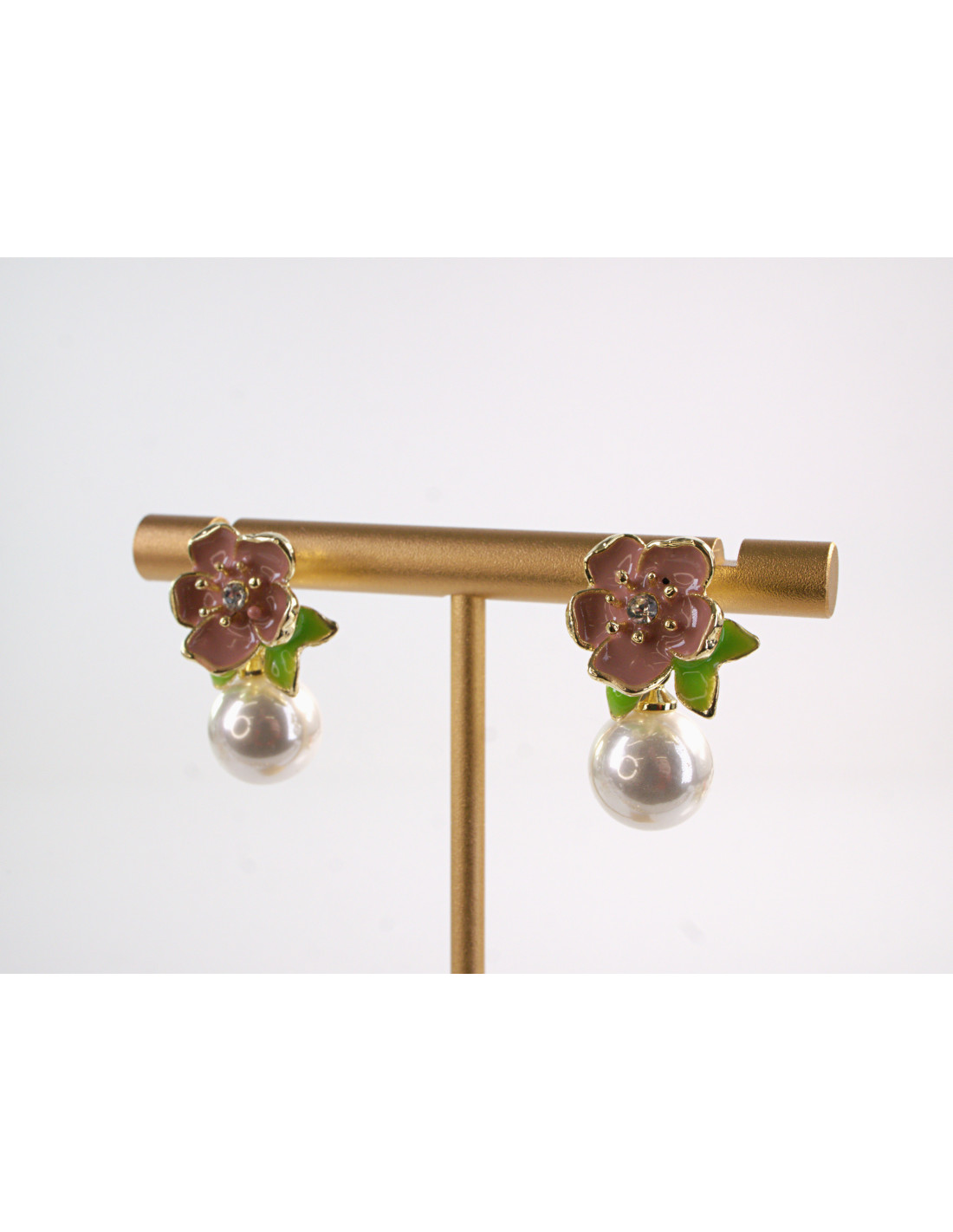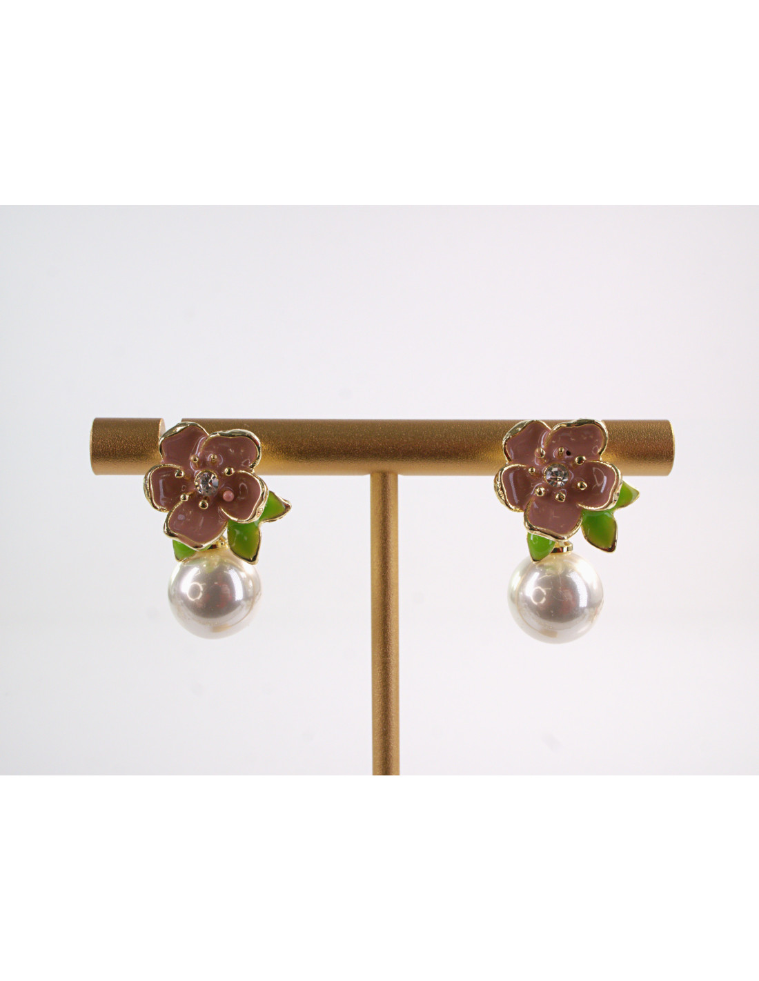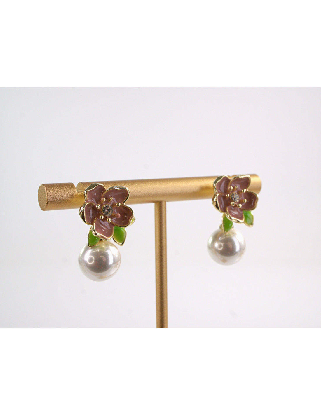 Kolczyki RÓŻOWE KWIATY KWIATKI Z PERŁĄ LOLITA AKCESORIA srebrny sztyft 925