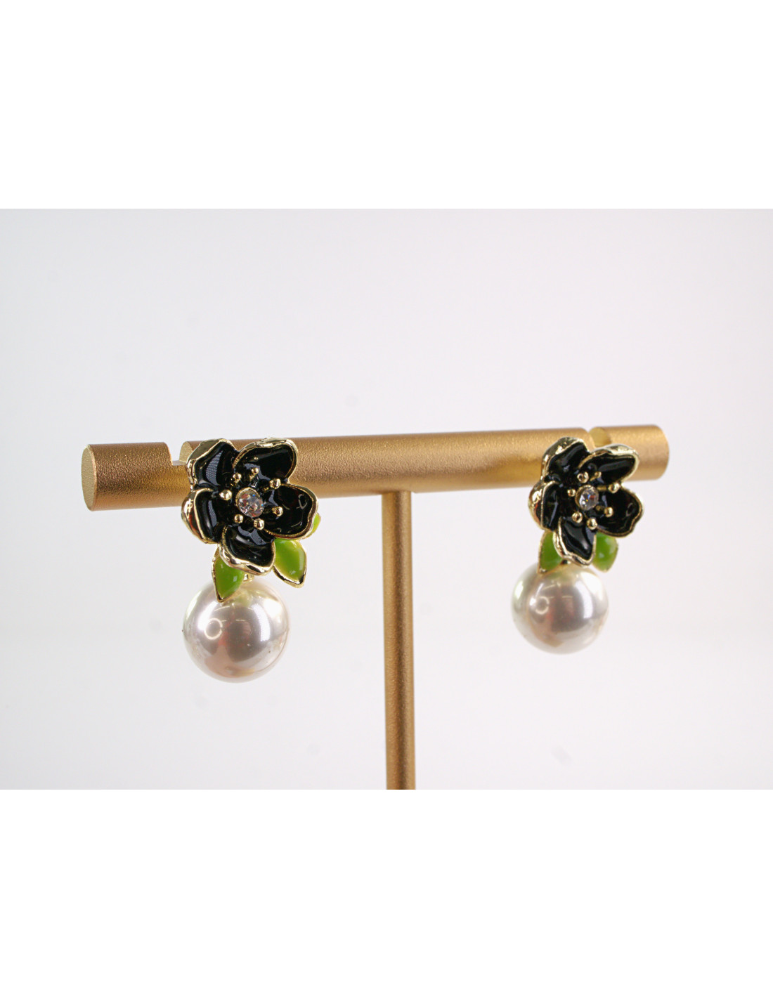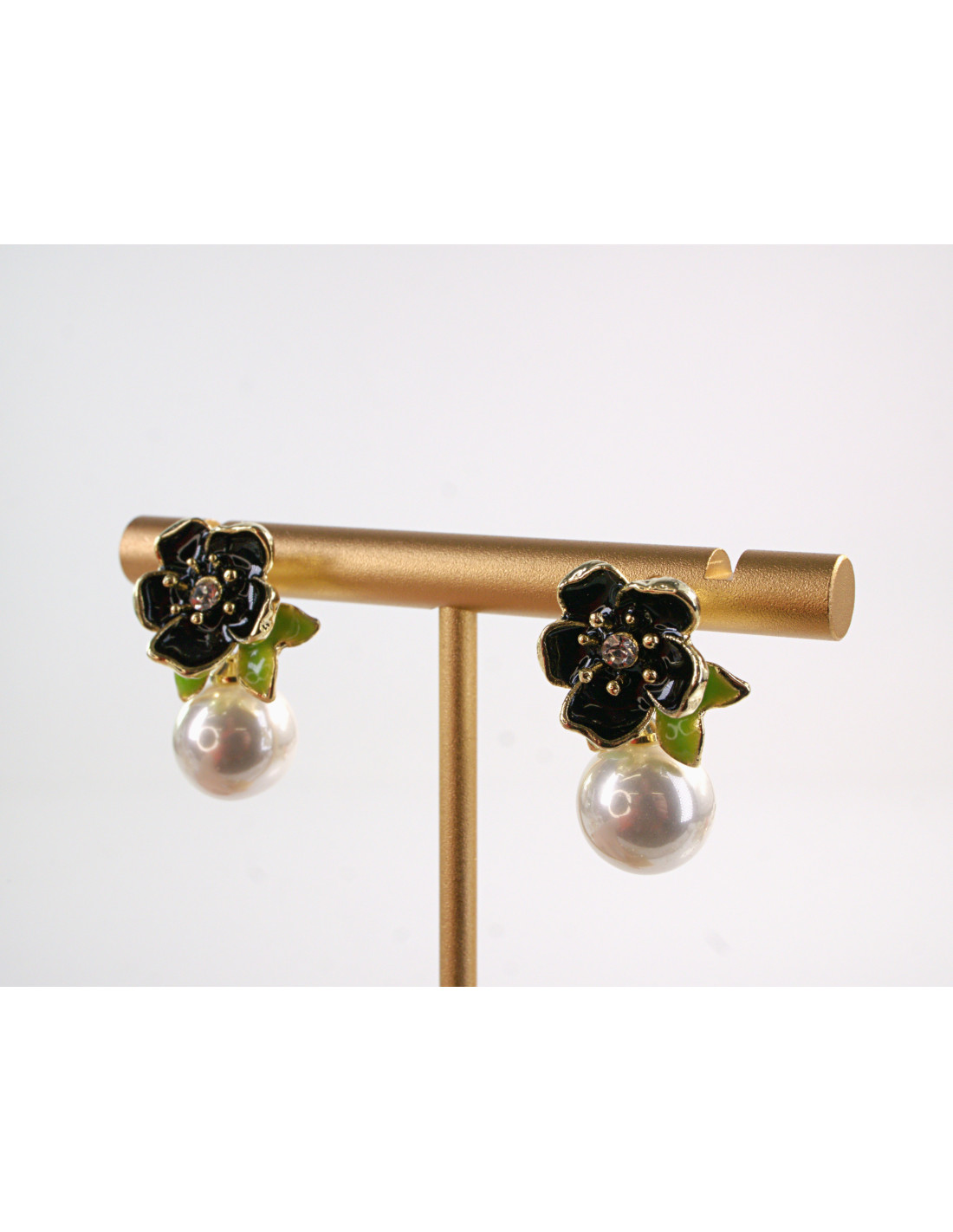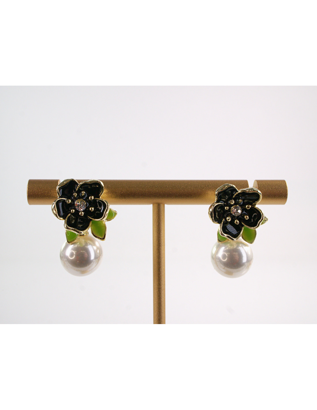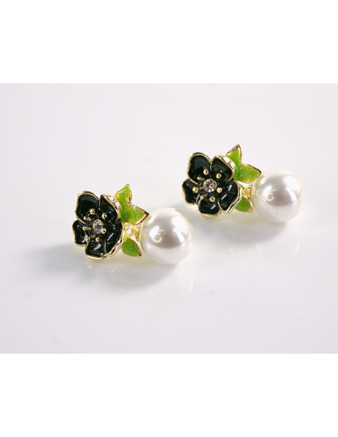 Kolczyki GRANATOWE KWIATY KWIATKI Z PERŁĄ LOLITA AKCESORIA srebrny sztyft 925