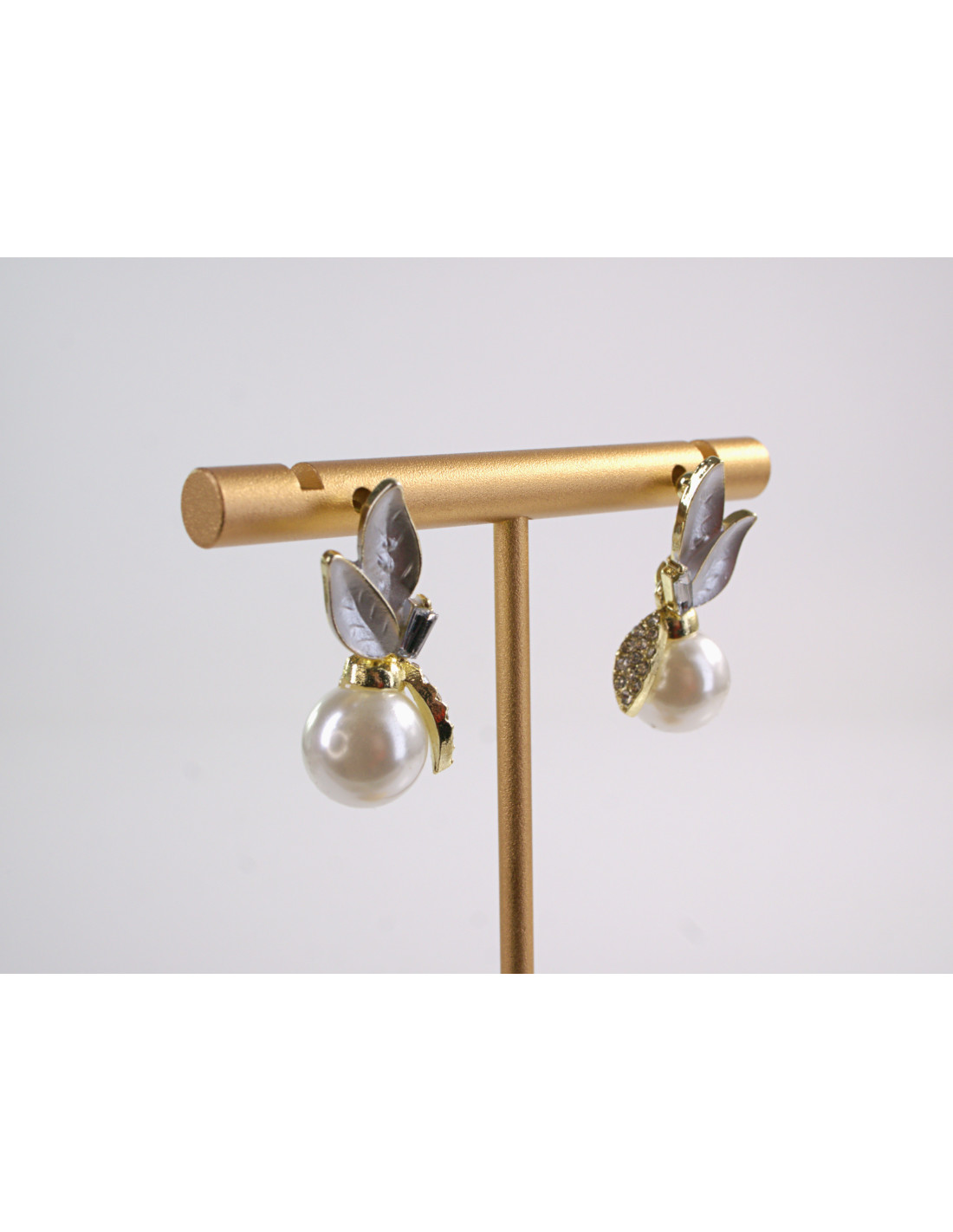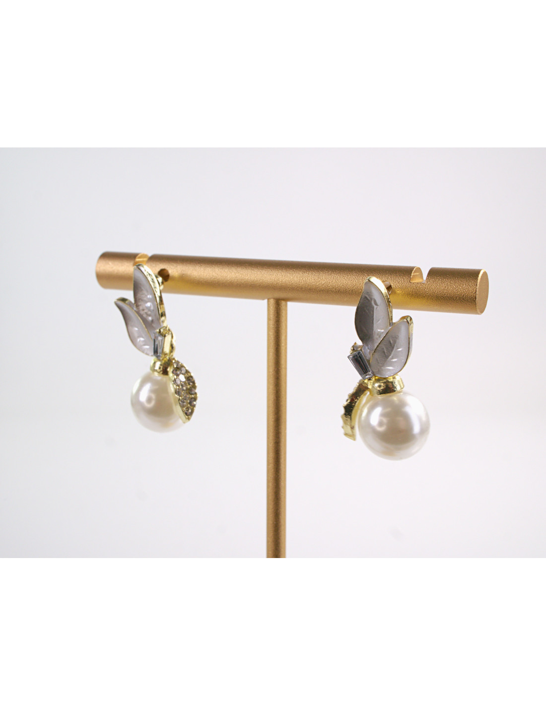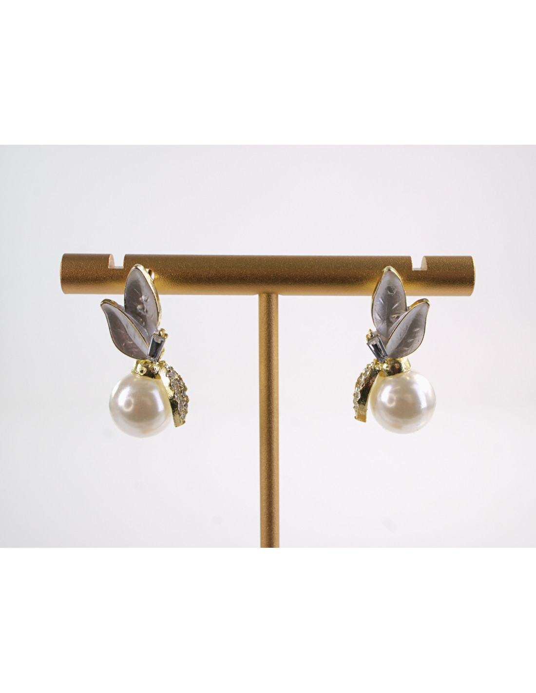 Kolczyki LIŚCIE LISTKI Z PERŁĄ LOLITA AKCESORIA srebrny sztyft 925